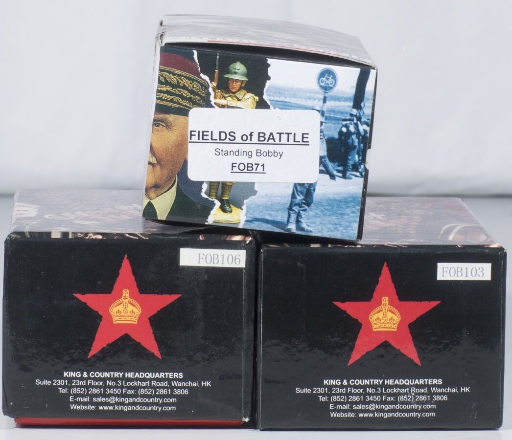 King & Country. Second World War. 1941. British firemen and policeman. References sold out. Ref. FOB071, FOB103 and FOB106. 3 new boxes.