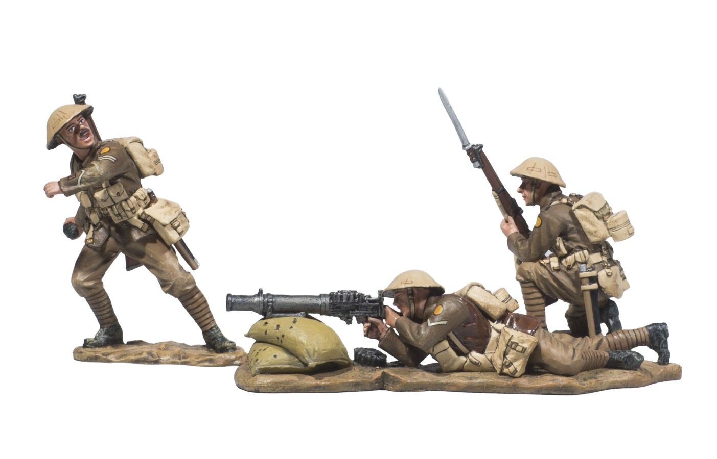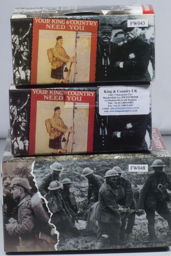 King & Country. First World War. English Infantry /3. Soldiers in action with machine gun. References sold out. Ref. FW043, FW047 and FW048. 3 new boxes.
