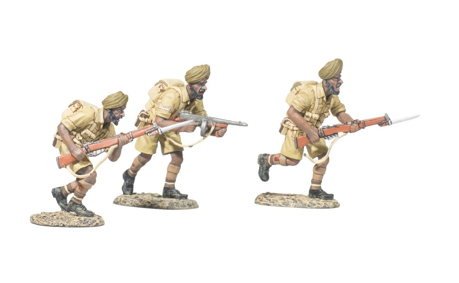 King & Country. Second World War. British 8th Army. 3 Indian soldiers in action. References sold out. Ref. EA104 and EA105. 2 new boxes.