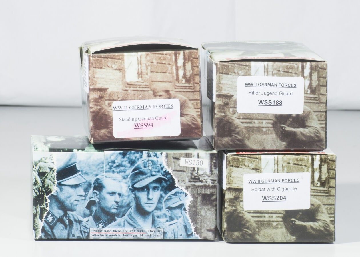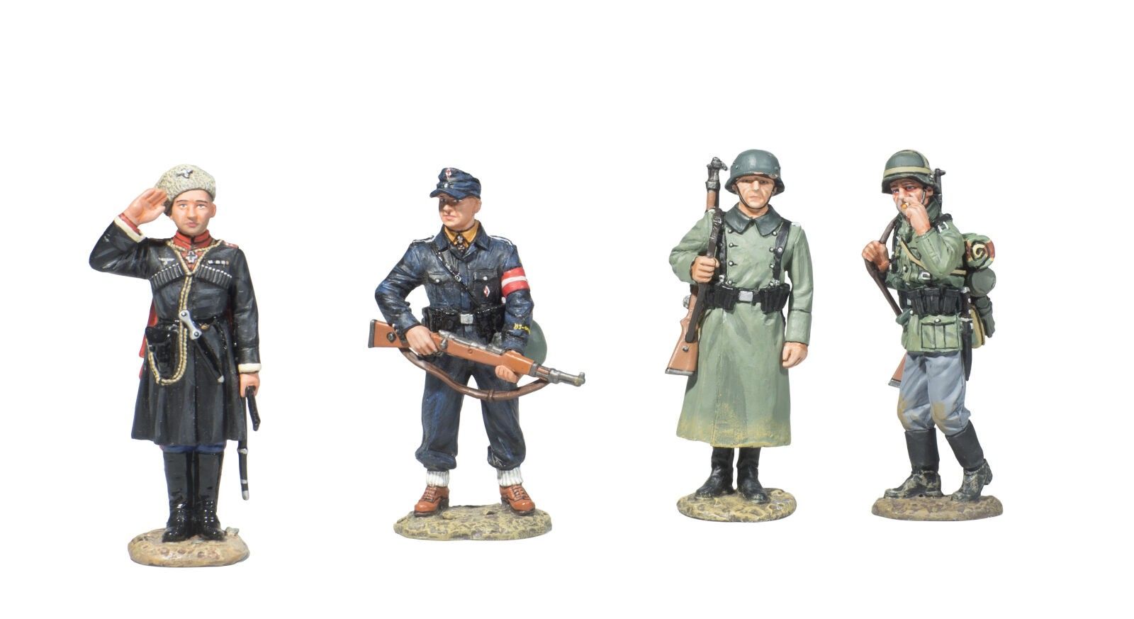 King & Country. Second World War. German Army /1. 3 soldiers at rest and a Cossack. References sold out. Ref. WS094, WS150, WS188 and WS204. 4 new boxes.