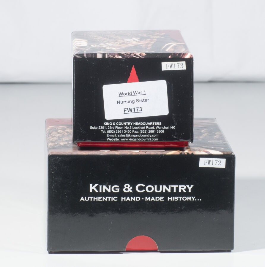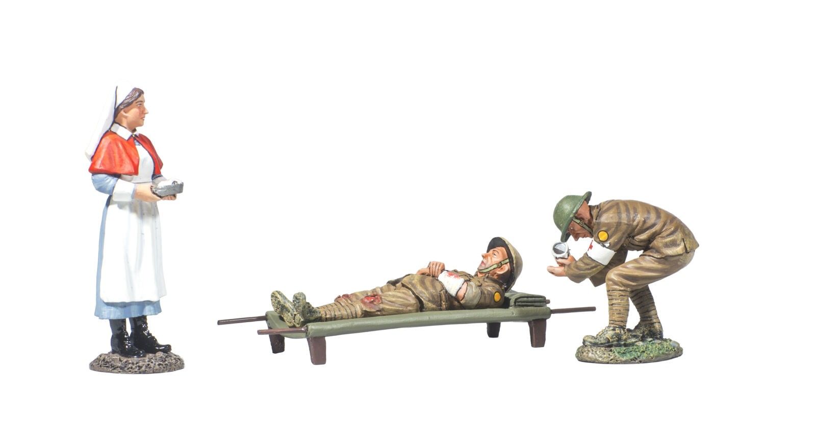 King & Country. First World War. British Medical Service /1 Nurse and 2 Soldiers with stretcher. References sold out. Ref. FW172 and FW173. 2 new boxes.