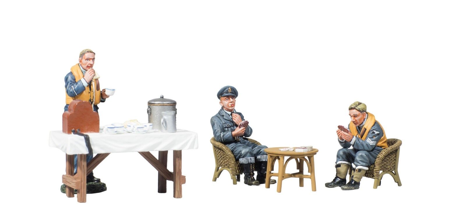King & Country. Second World War. Royal Air Force /3. 3 Pilots at rest with galley. References sold out. Ref RAF057, RAF063 and RAF064. 3 new boxes.