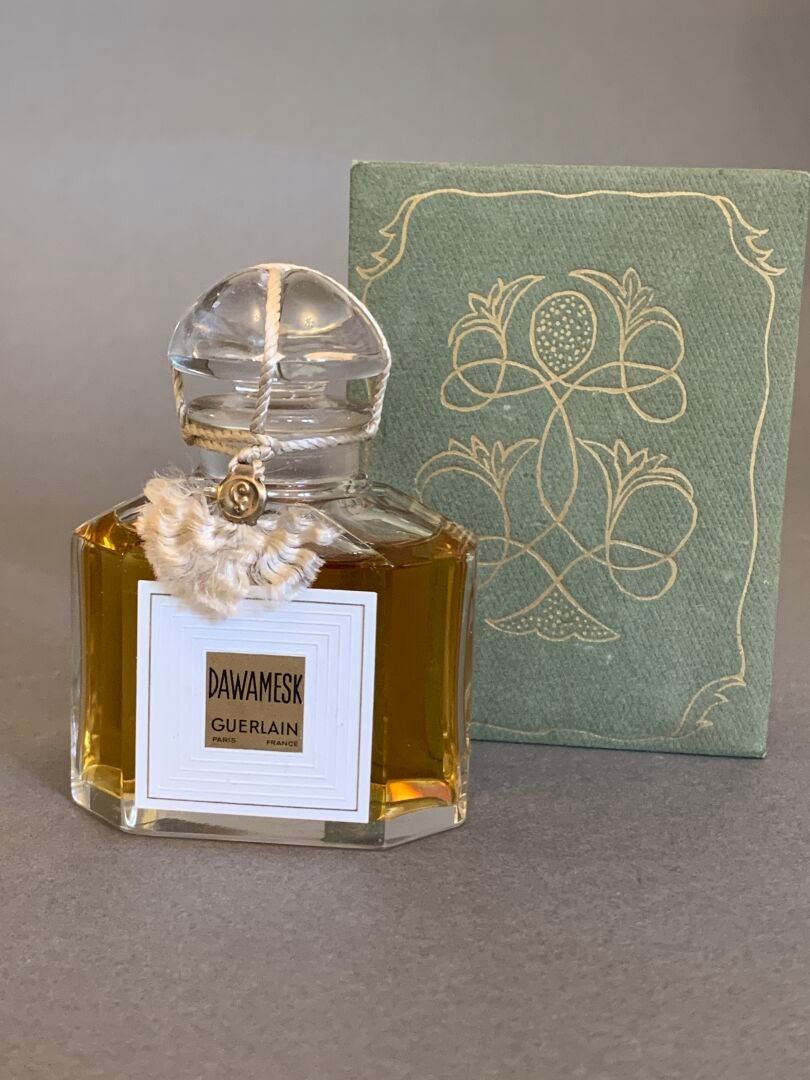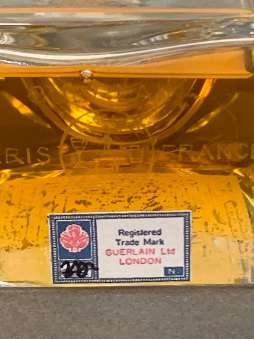 Presented in its cardboard box covered with illustrated felt paper, white satin interior by Draeger frères, solid colourless blown crystal bottle from Baccarat, model with "quadrilobed stopper" containing 80ml of extract, decorated with its gold and white label, numbered and sealed. provenance: Guerlain limited London.