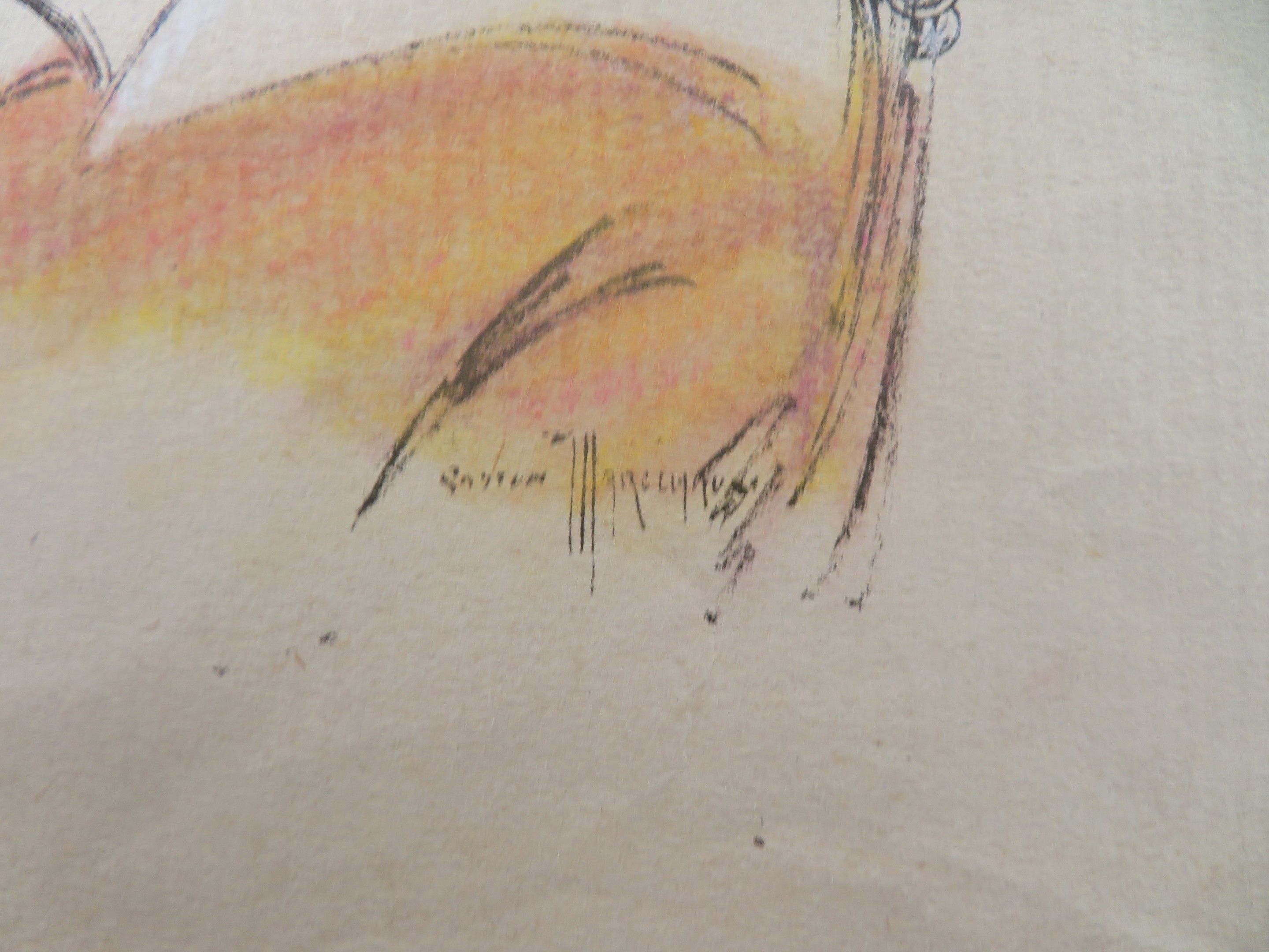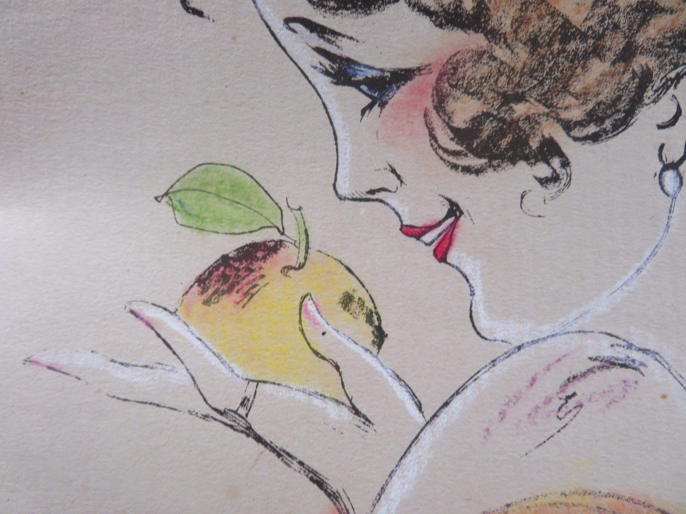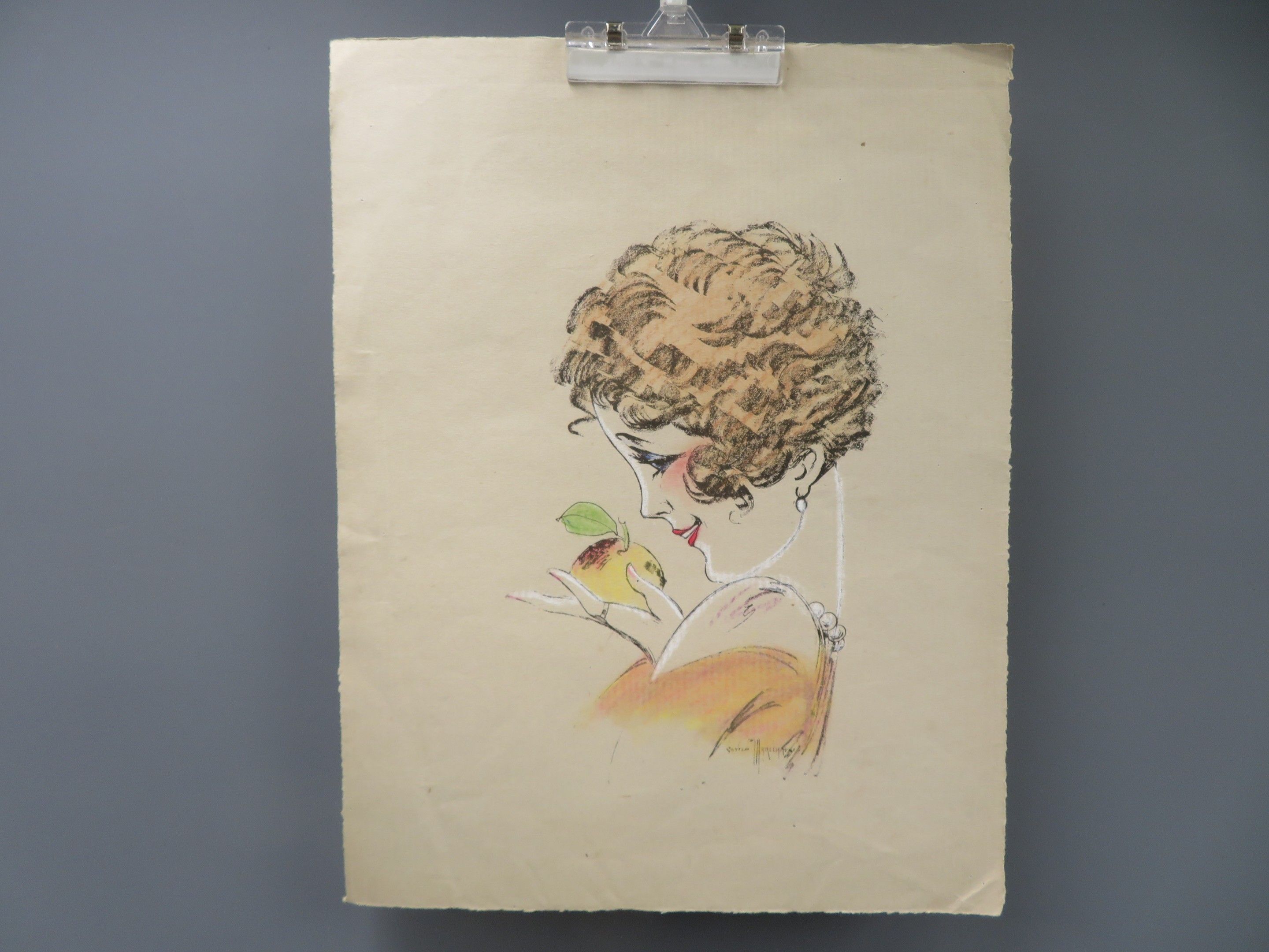 Gaston MARECHAUX (1872-1936). Elegant Woman with an Apple. Mixed media on paper, signed lower right. Size 32 x 25 cm (as is)