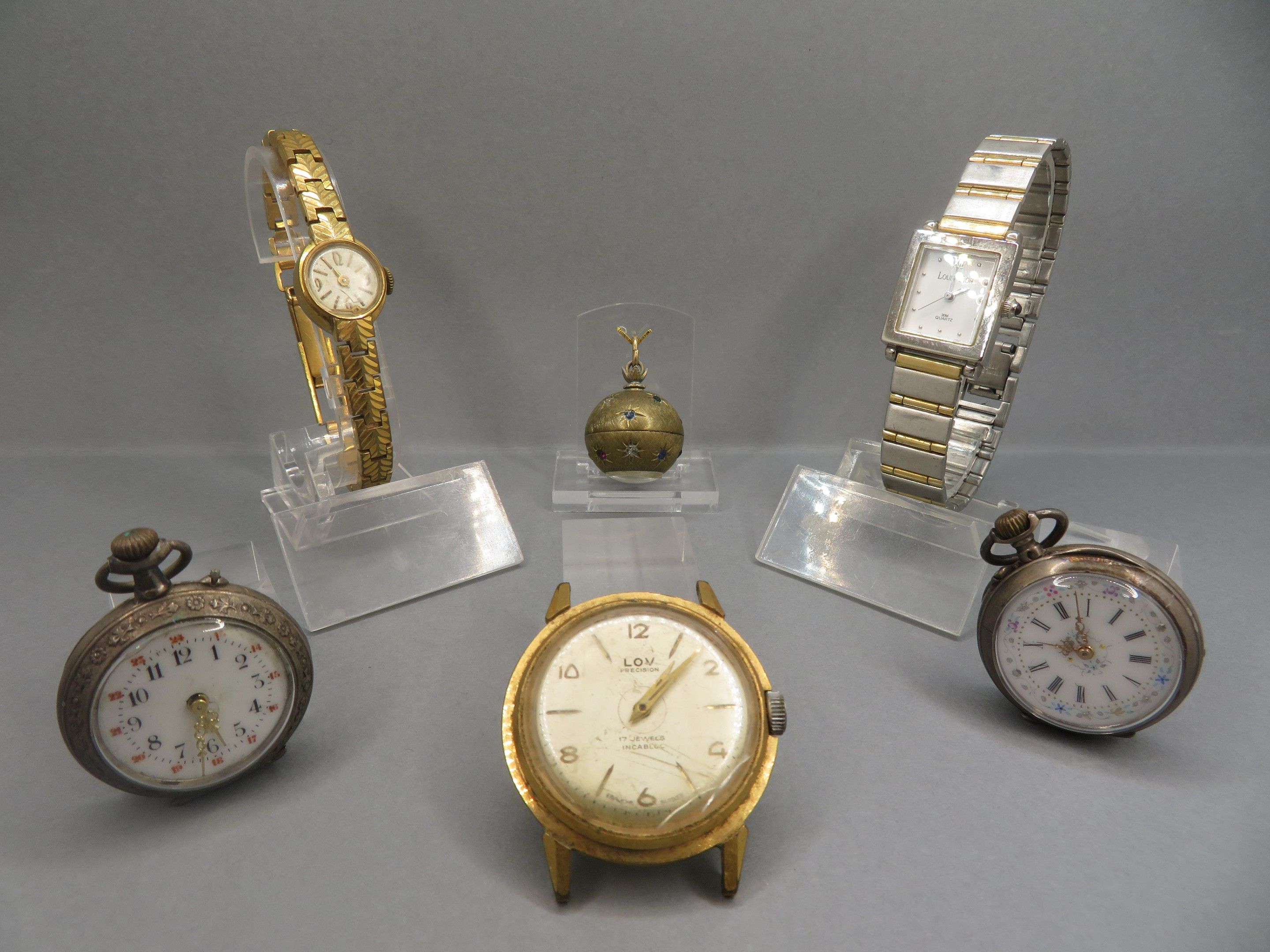 Set of wristwatches, Lov watch case, ball watch, two silver collar watches various models and various states.