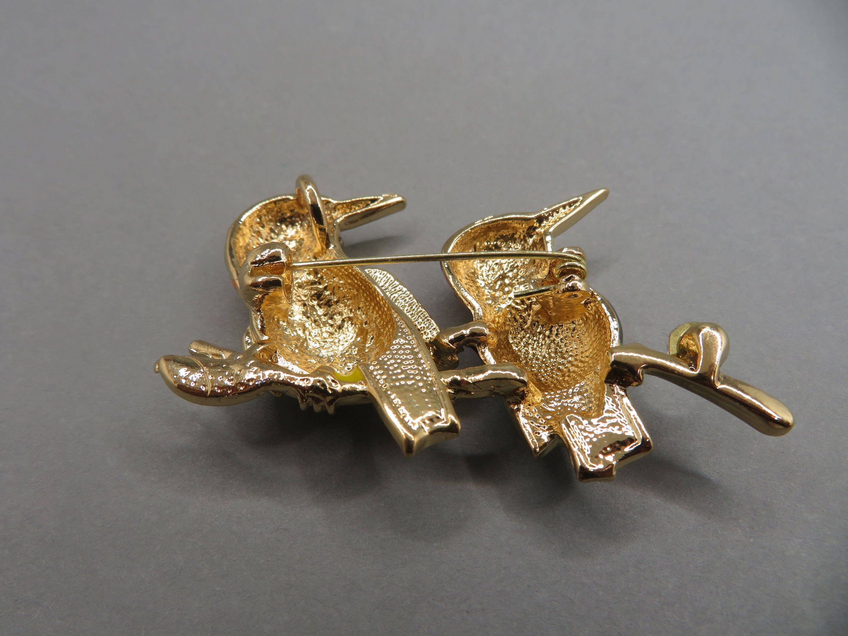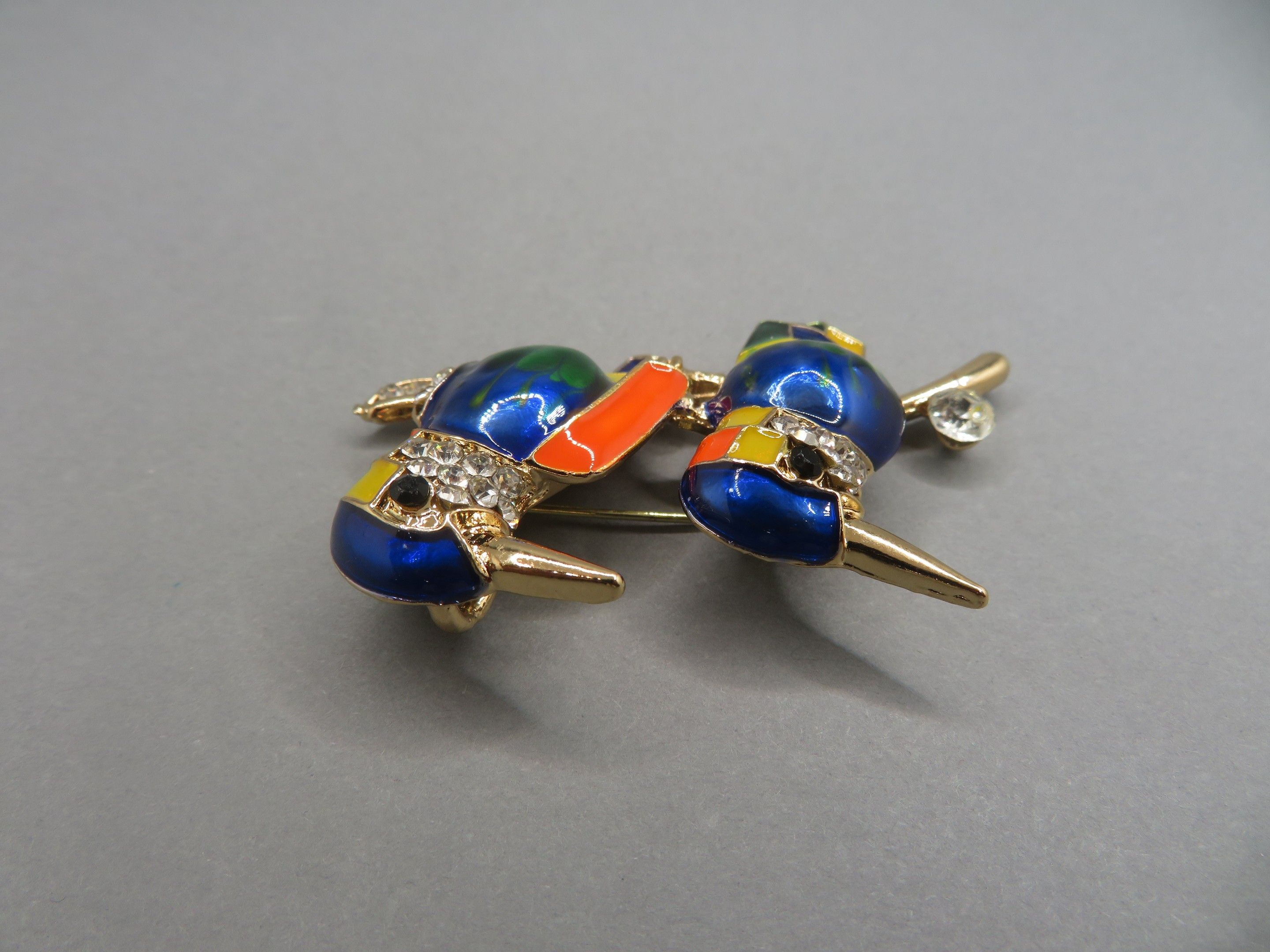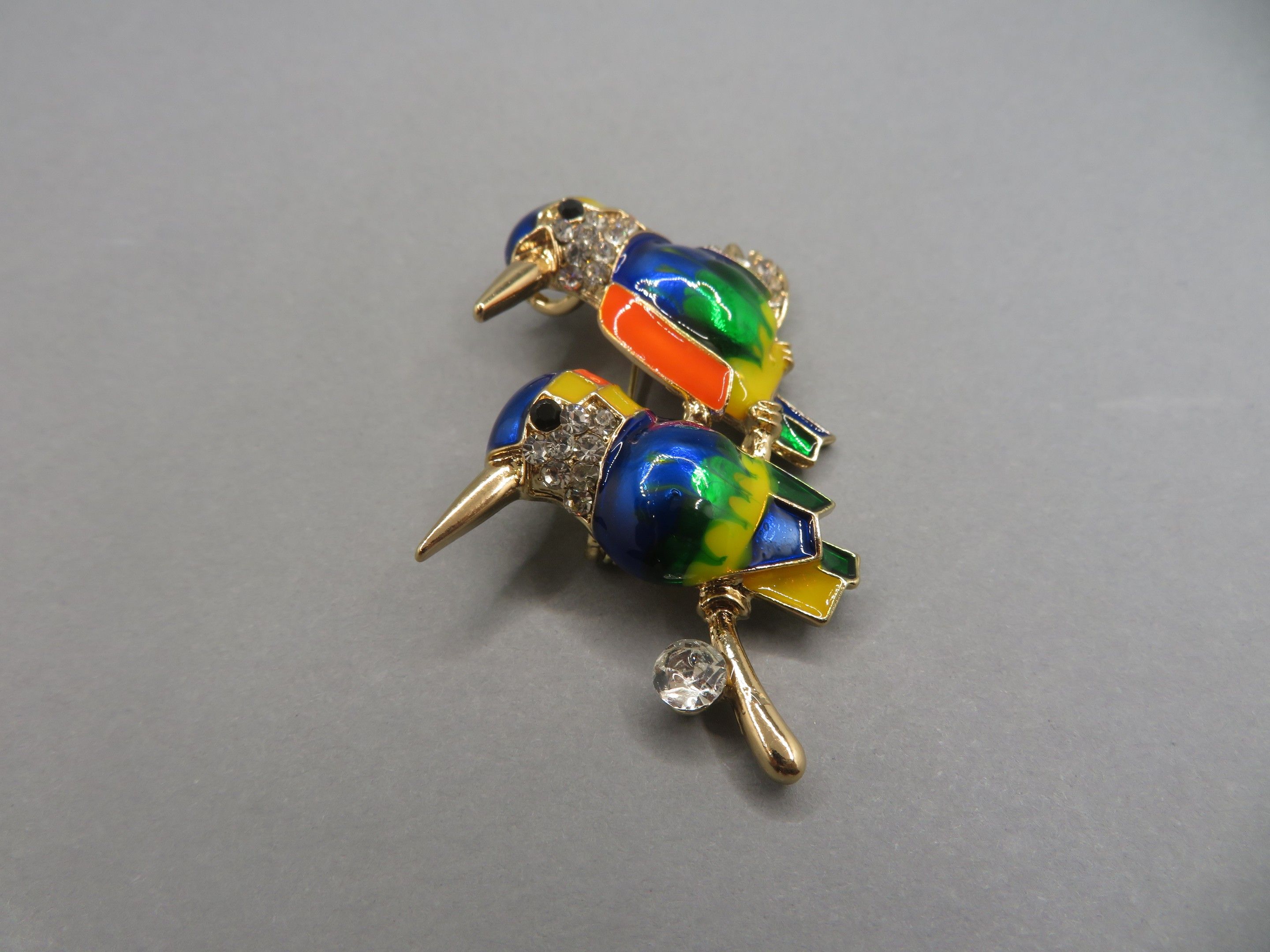 Birds in flight" brooch with enamel and rhinestones. Height 3.50 cm and width 6 cm As new