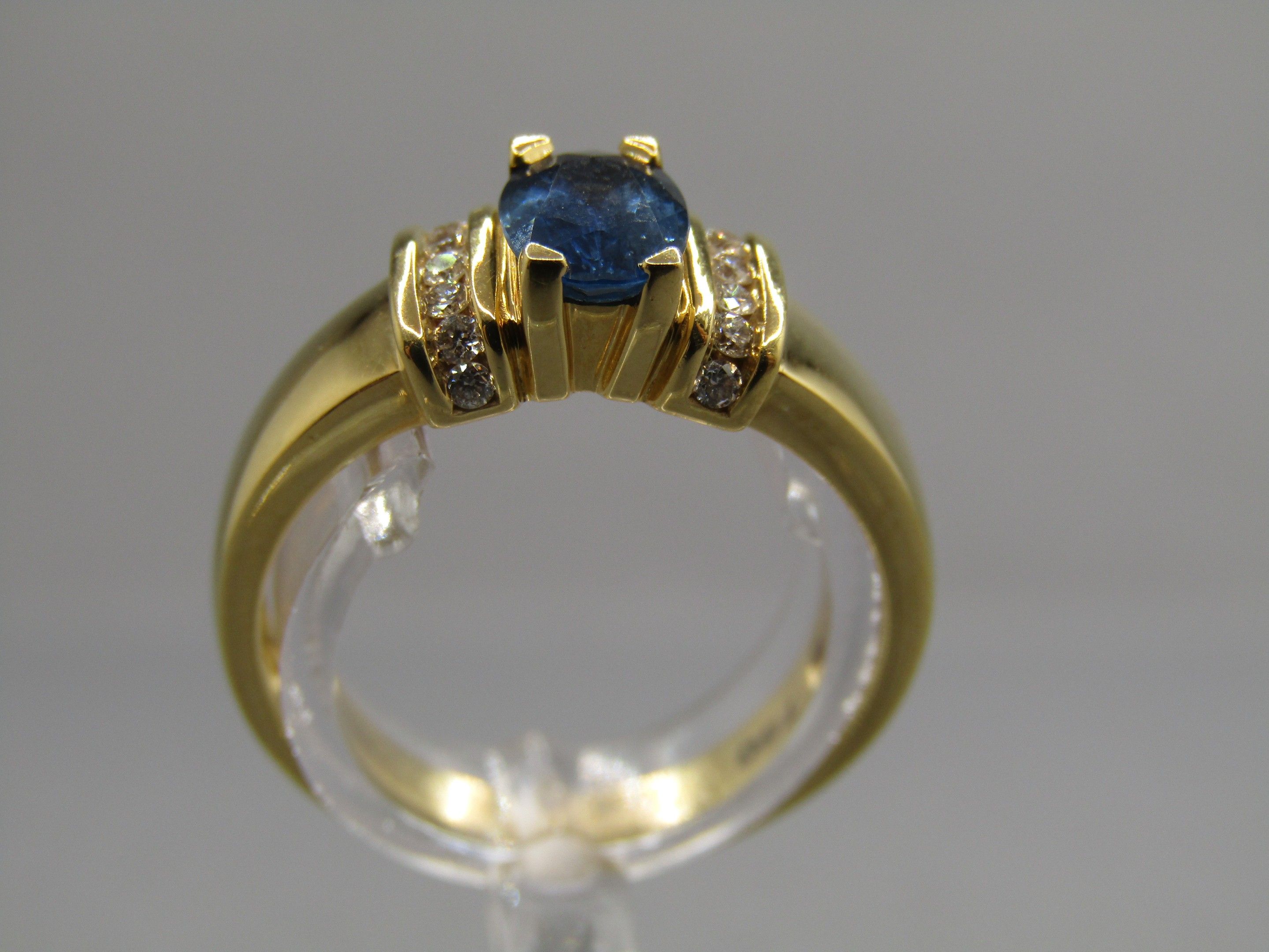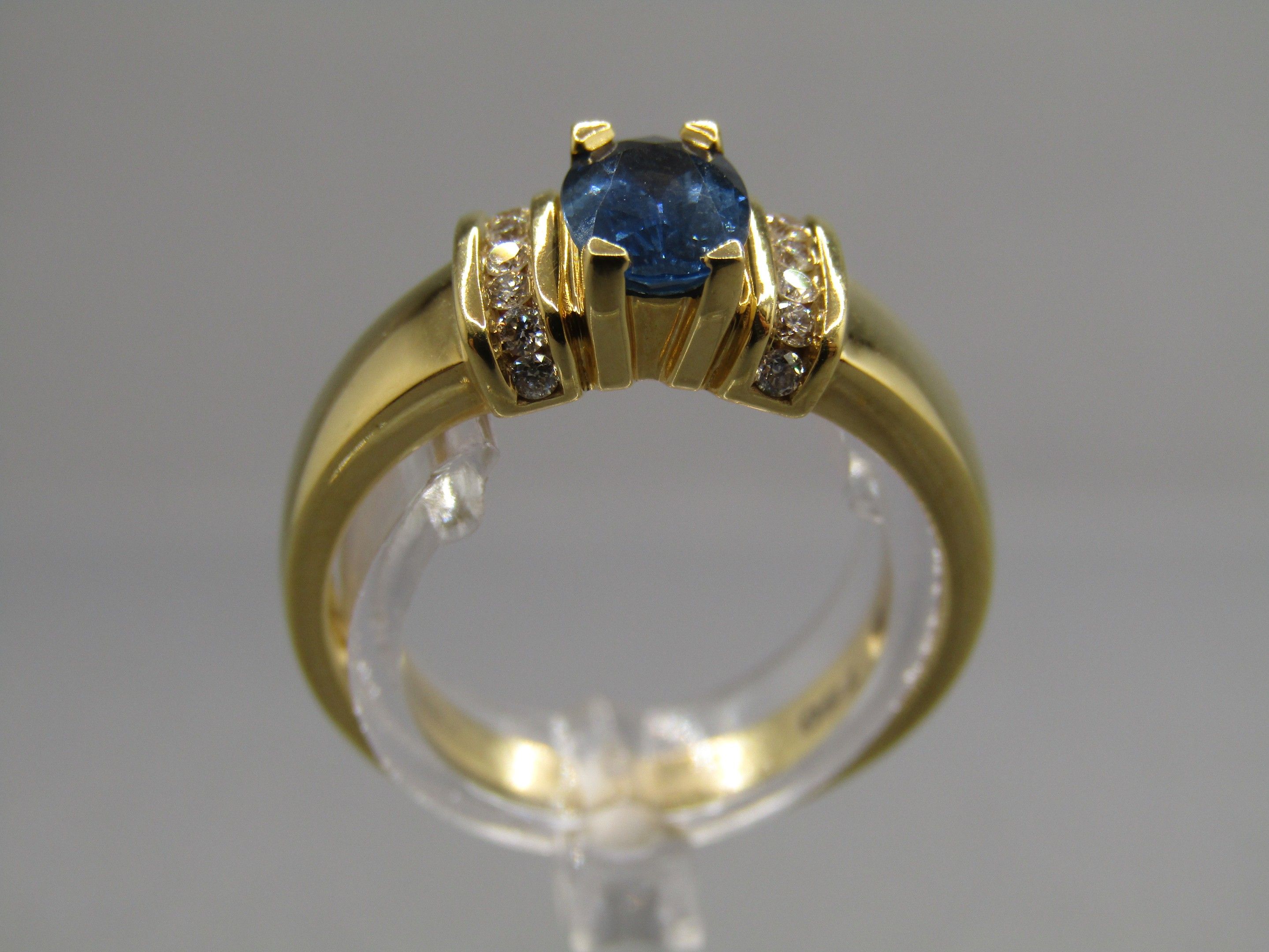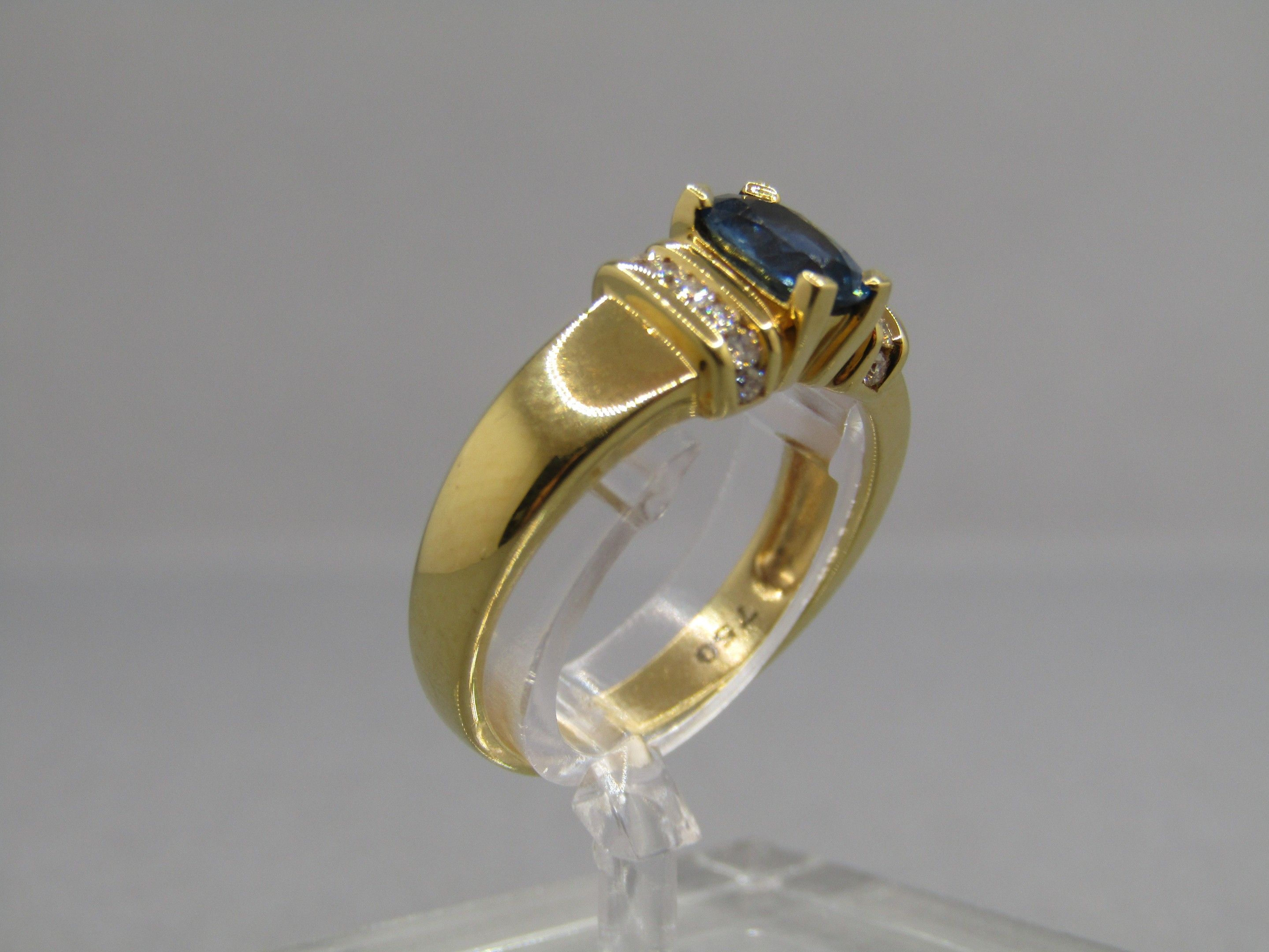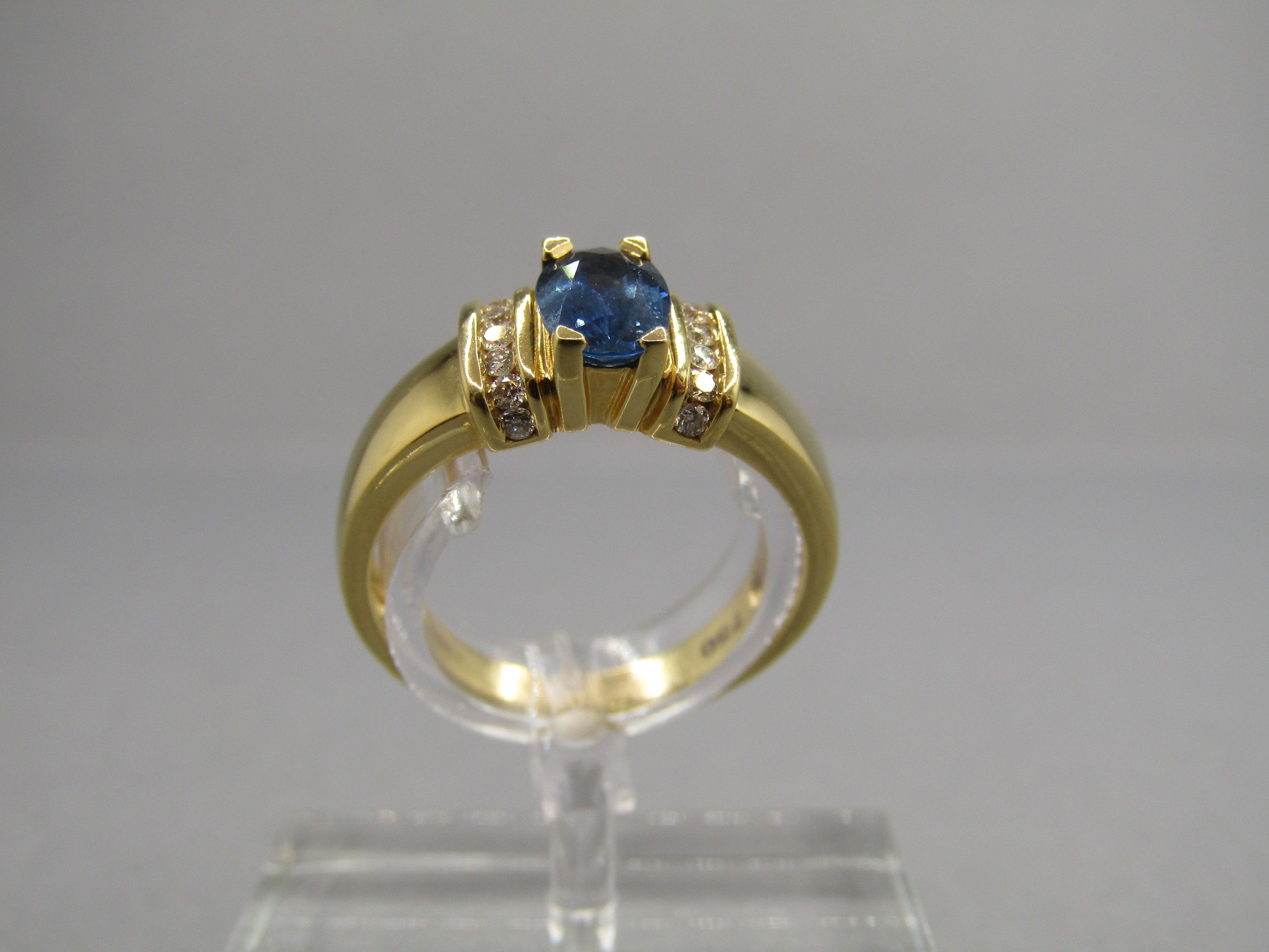 Ring in 18K gold 750/1000, hallmarked eagle head, set with a sapphire and small diamonds. TDD 54, Gross weight 4.18g