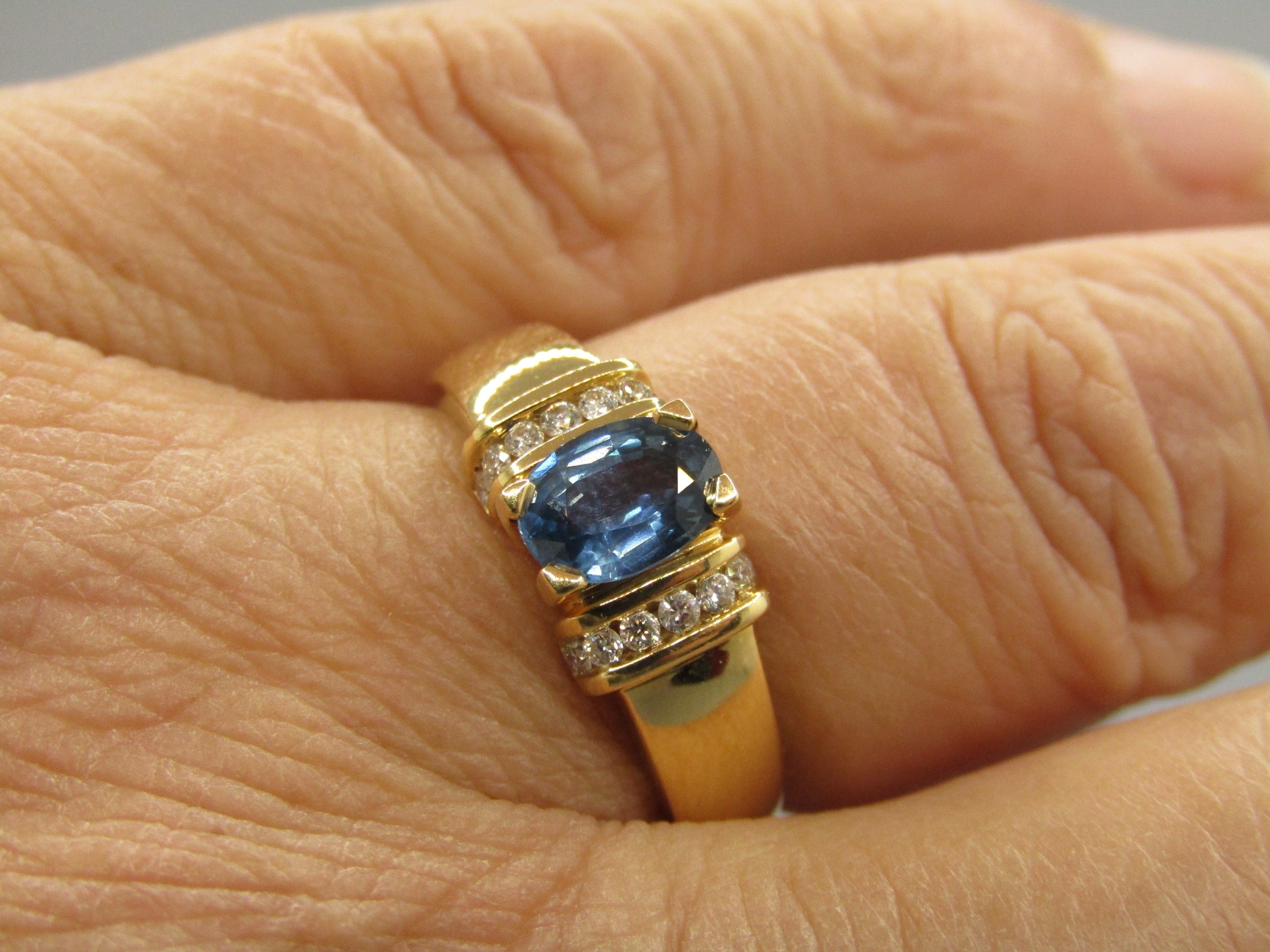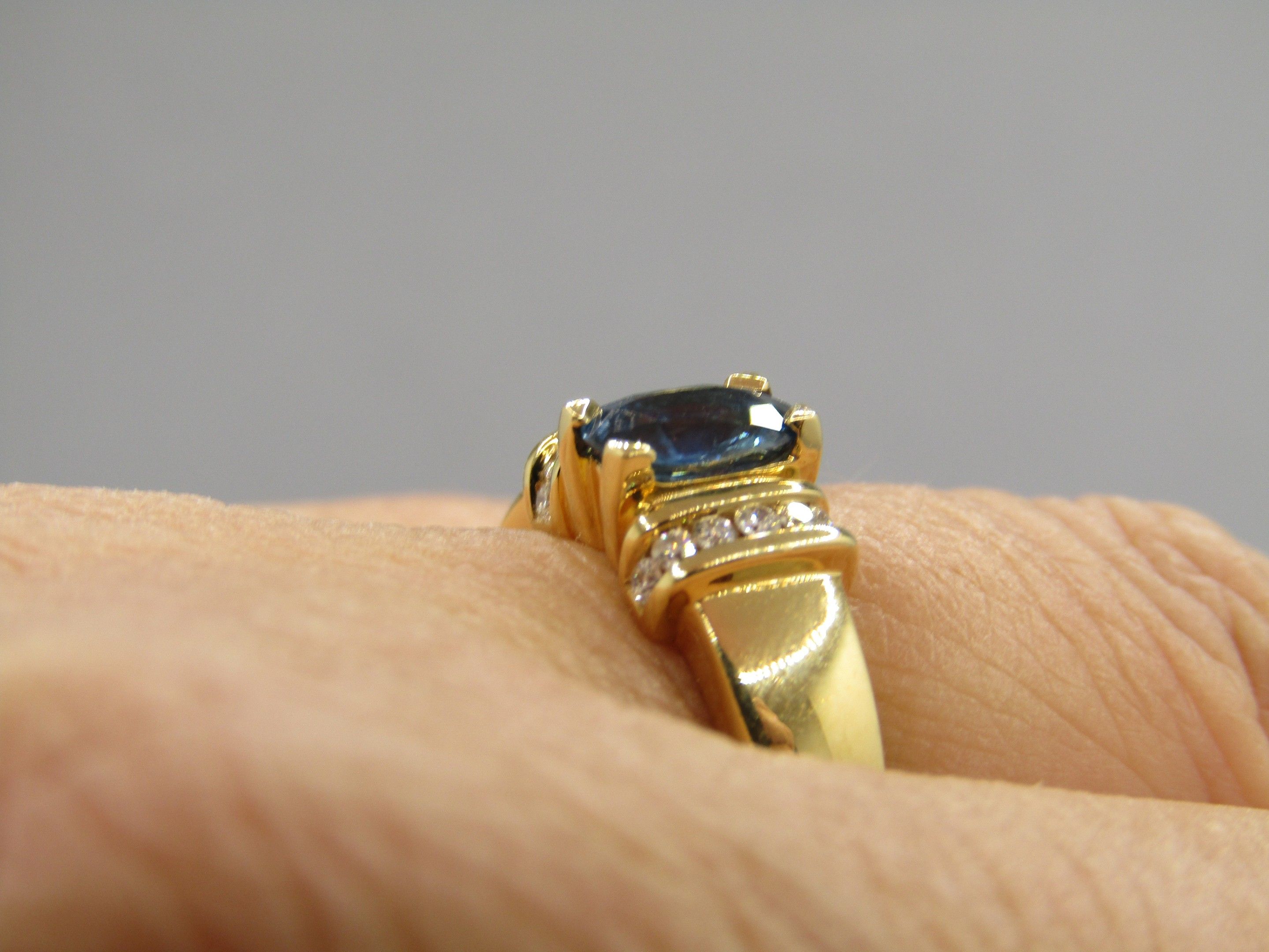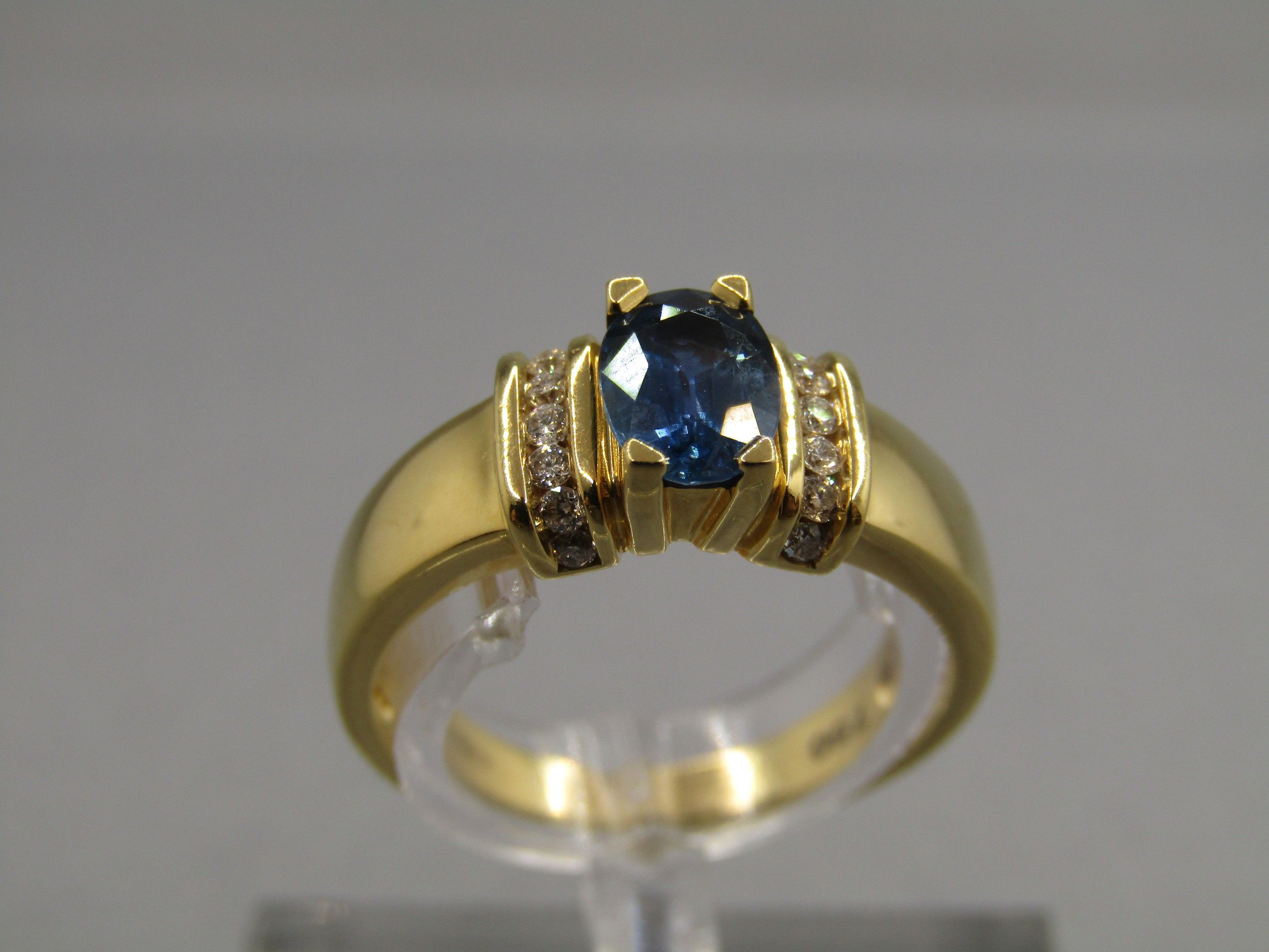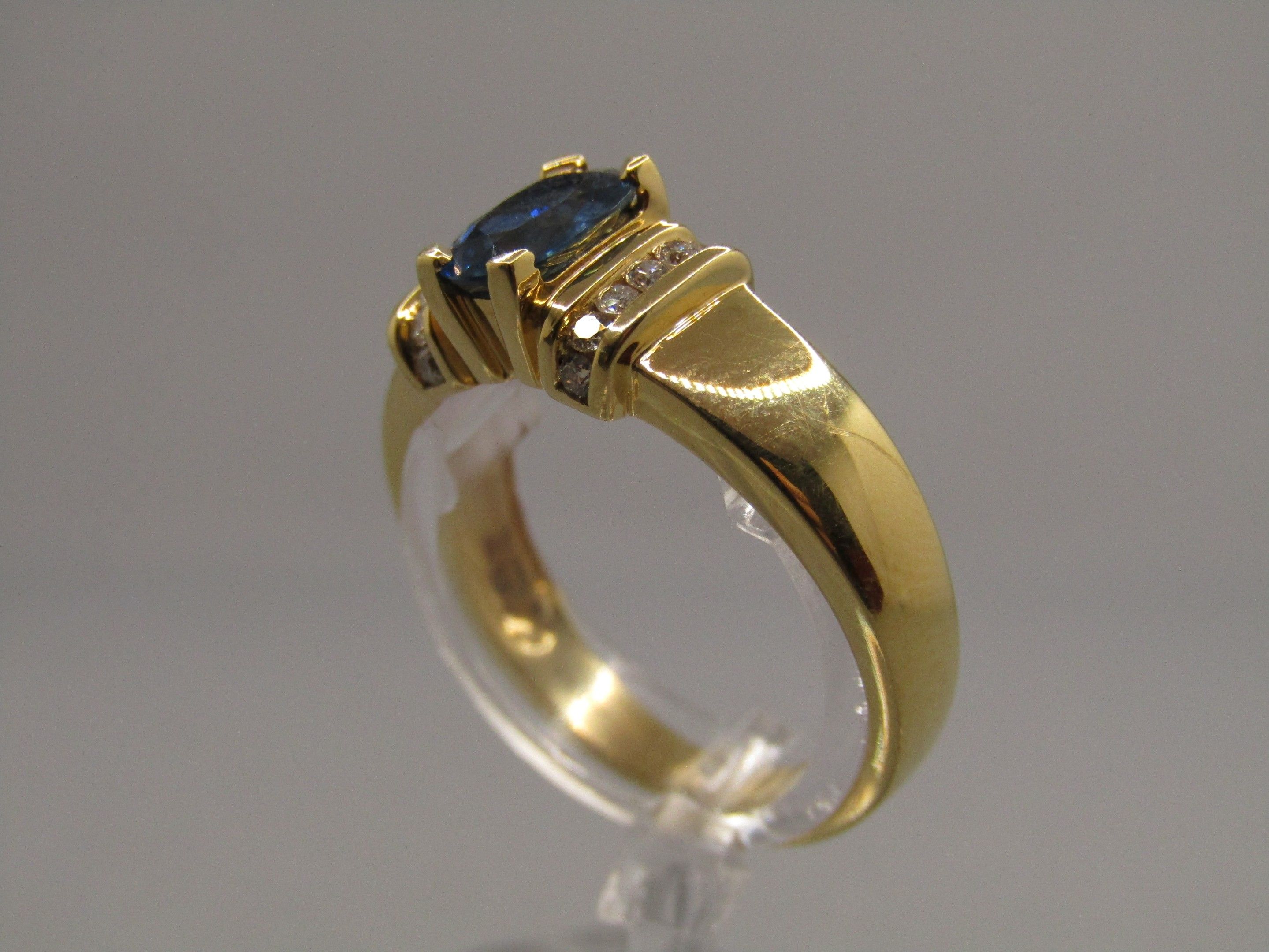 Ring in 18K gold 750/1000, hallmarked eagle head, set with a sapphire and small diamonds. TDD 54, Gross weight 4.18g