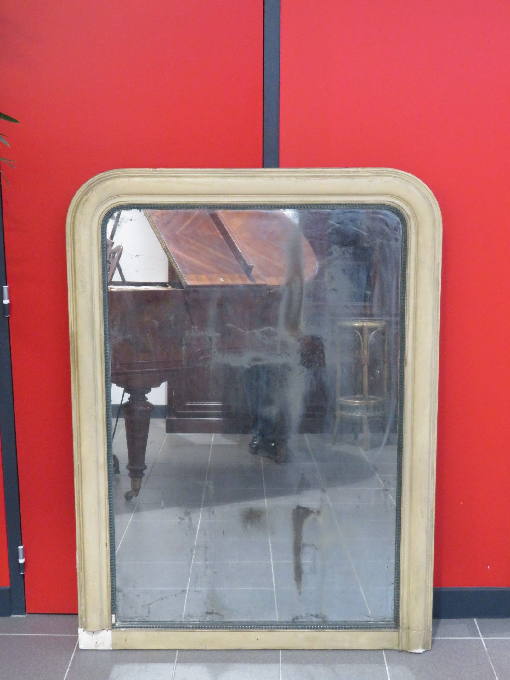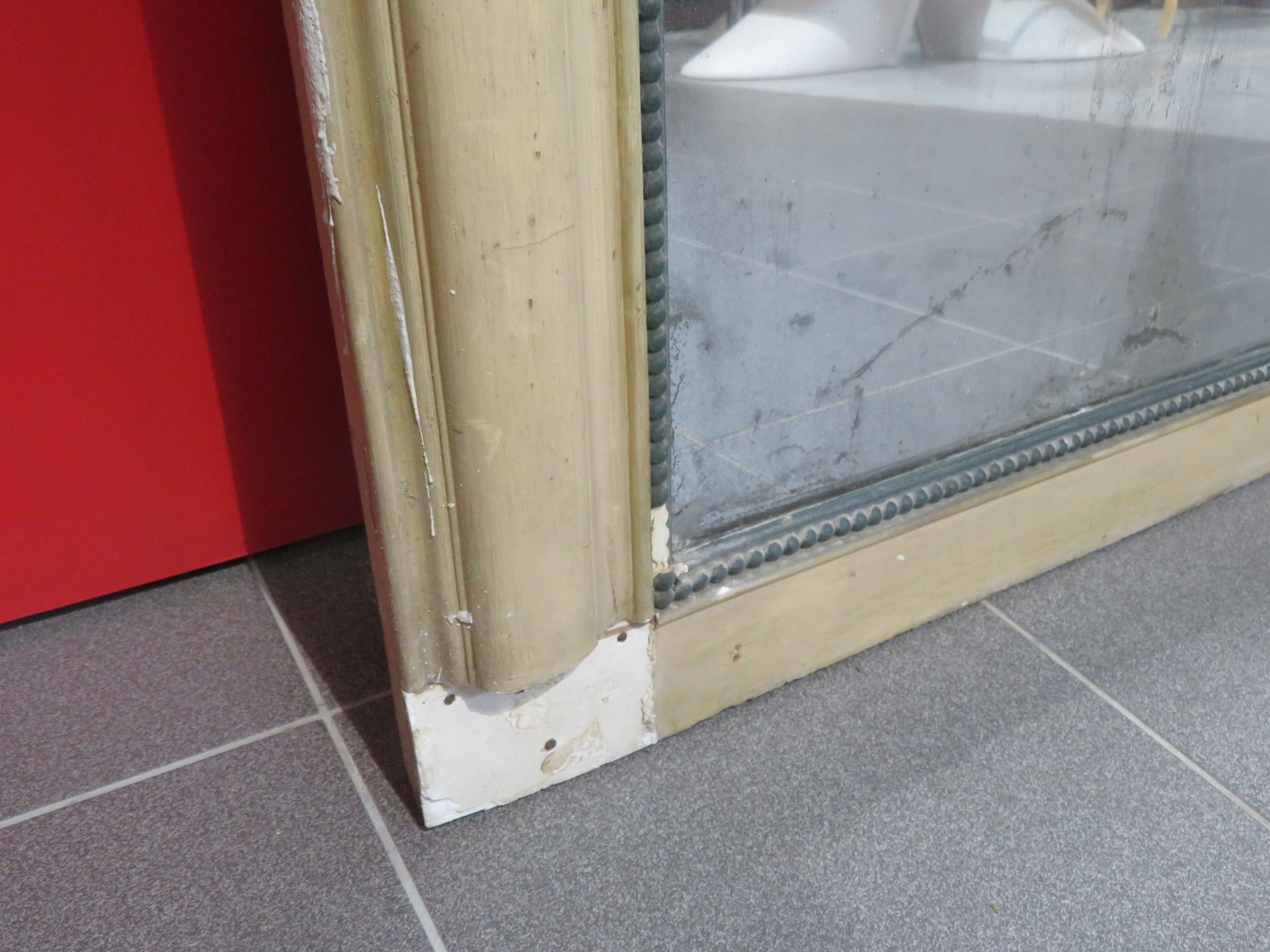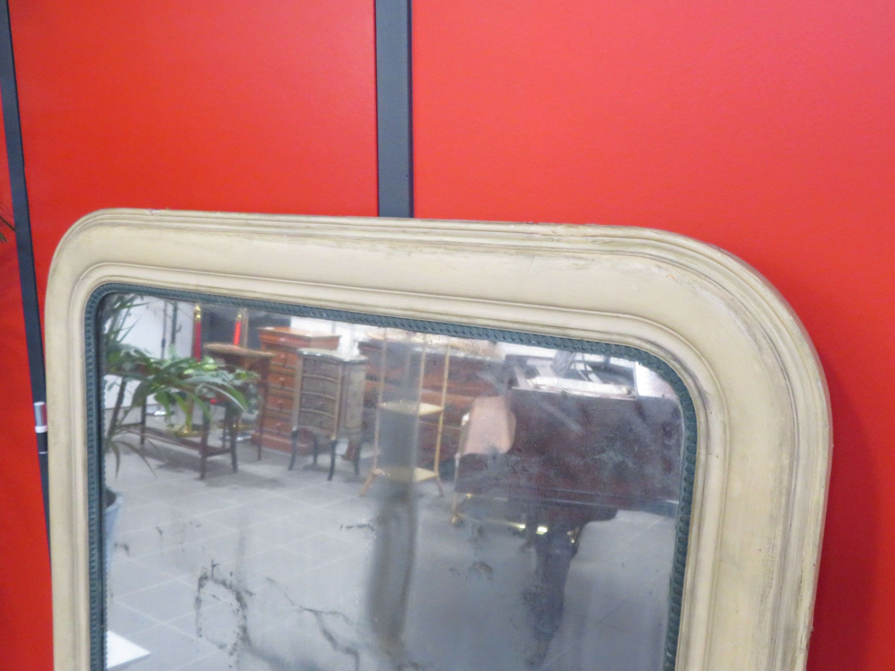 Large mirror, Louis Philippe wood and white stucco frame.