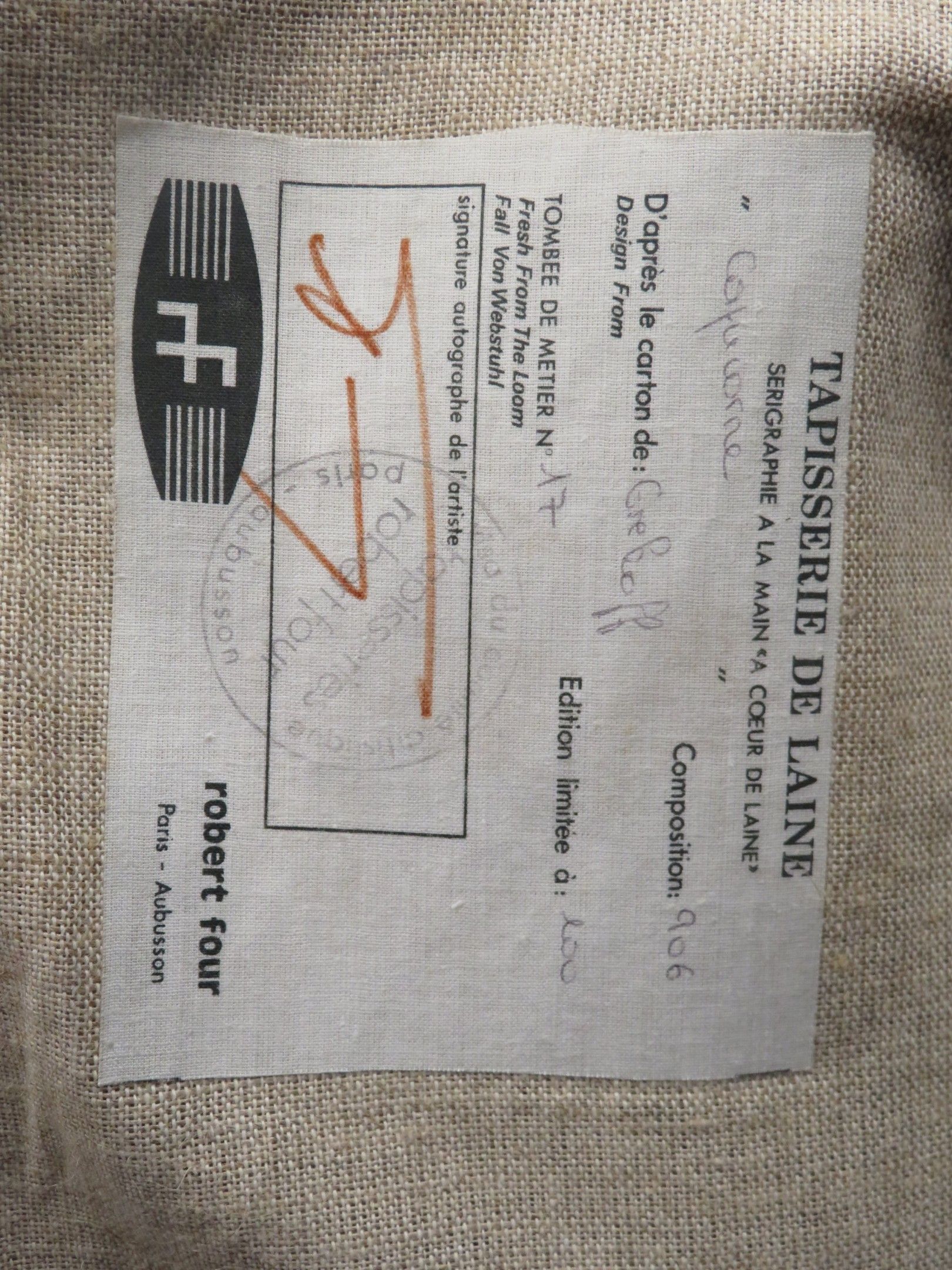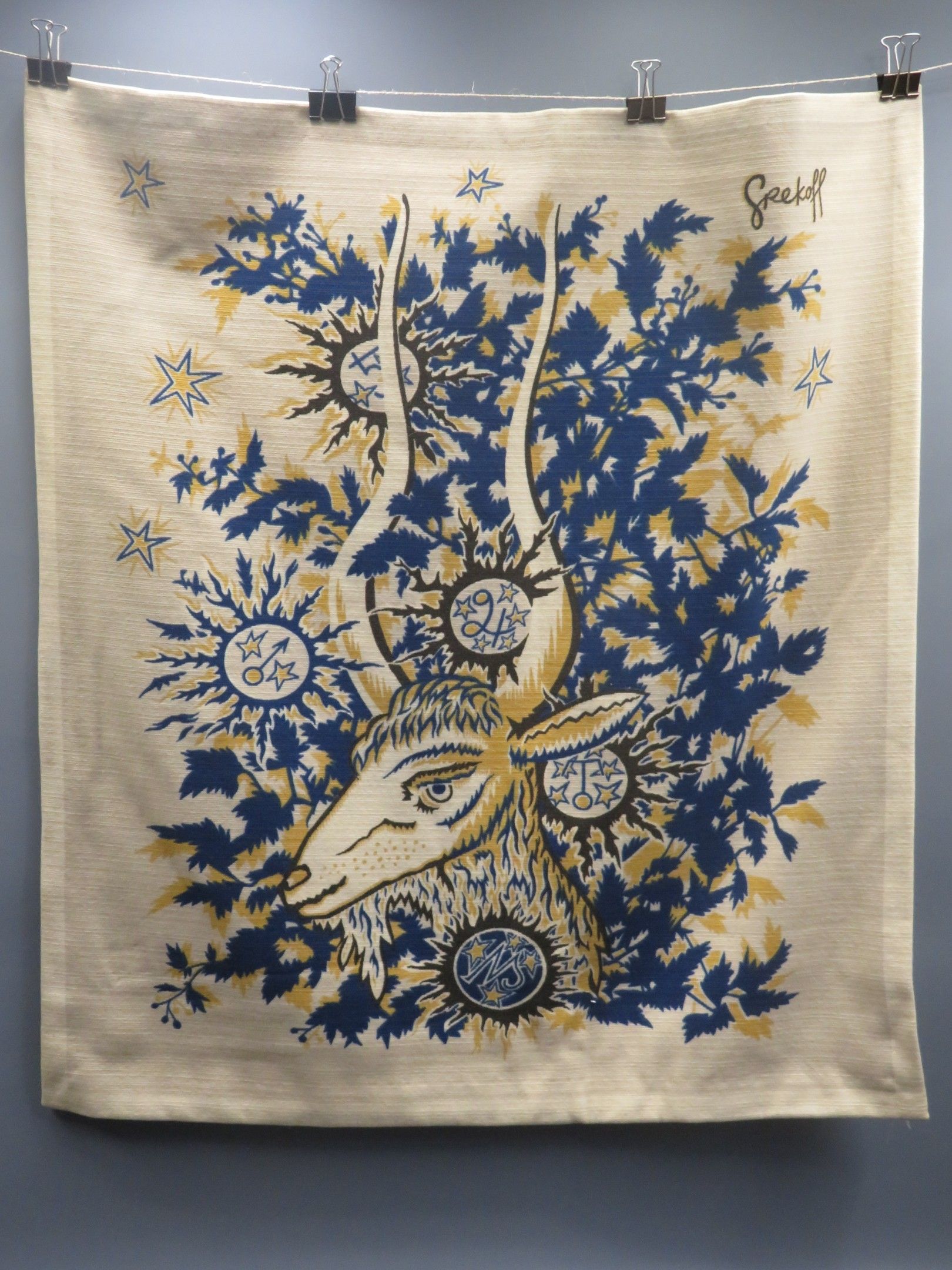Elie GREKOFF (1914-1985). "Capricorn" sign of the zodiac, wool tapestry, numbered 17/100, signed top right, label on back with artist's autograph signature, limited edition of 100, Robert Four Paris - Aubusson manufacture. Dimensions 110 x 102 cm