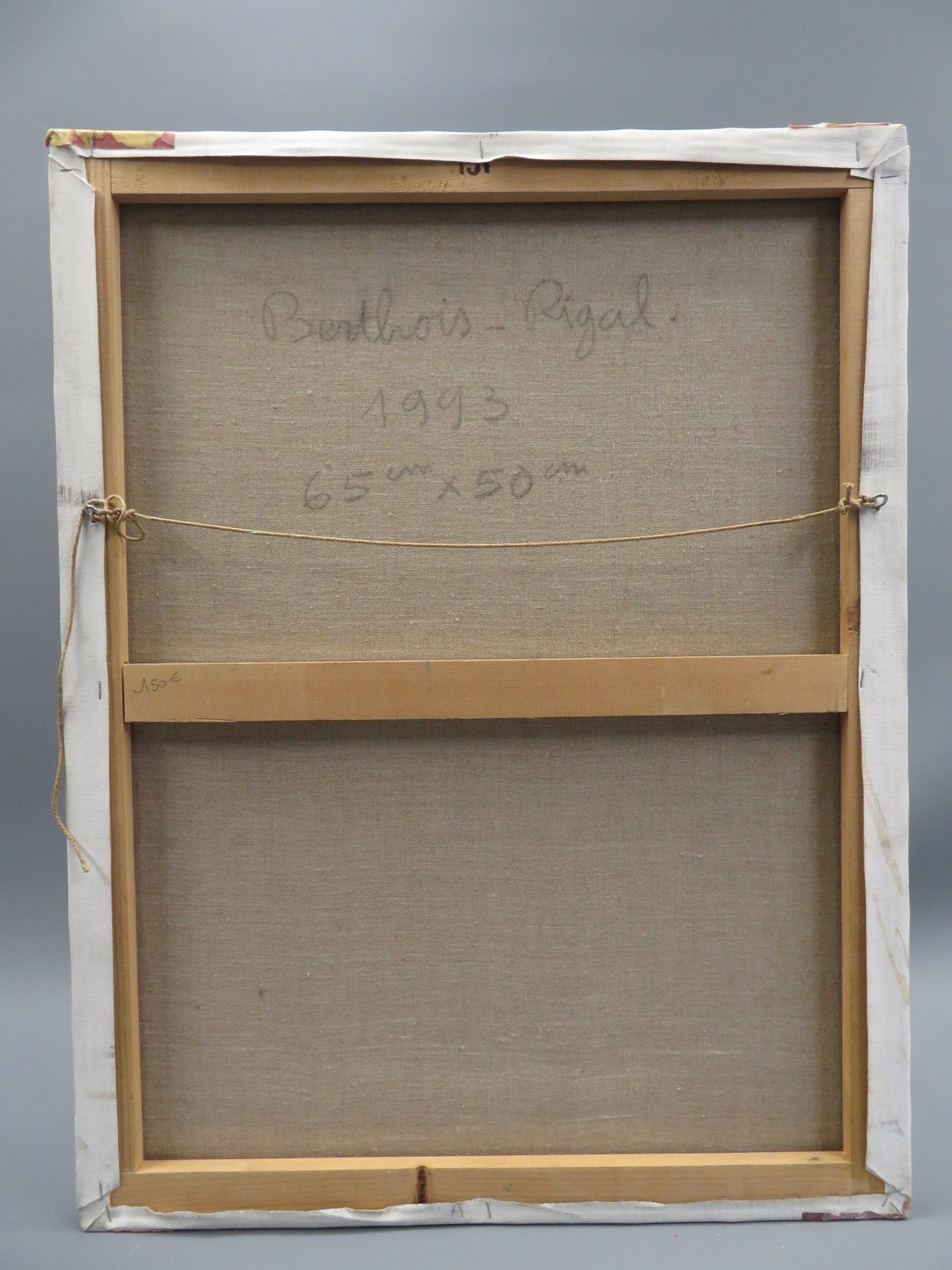 Bernard BERTHOIS-RIGAL (1927-2018). Mixed media on canvas, signed lower right, titled in the centre (?) and dated lower left 1993. Countersigned and dated on the back. Dimensions 65 x 50 cm.