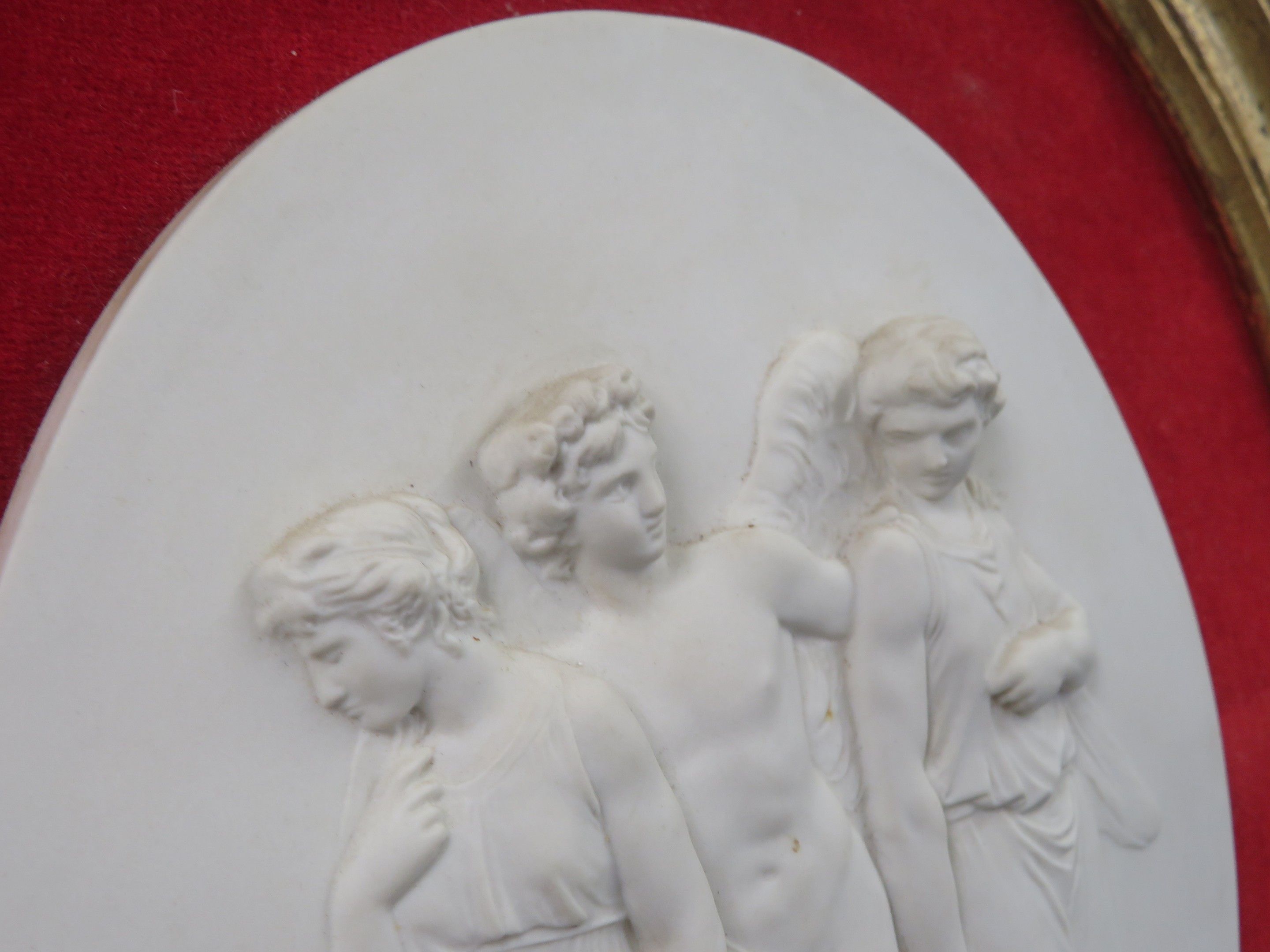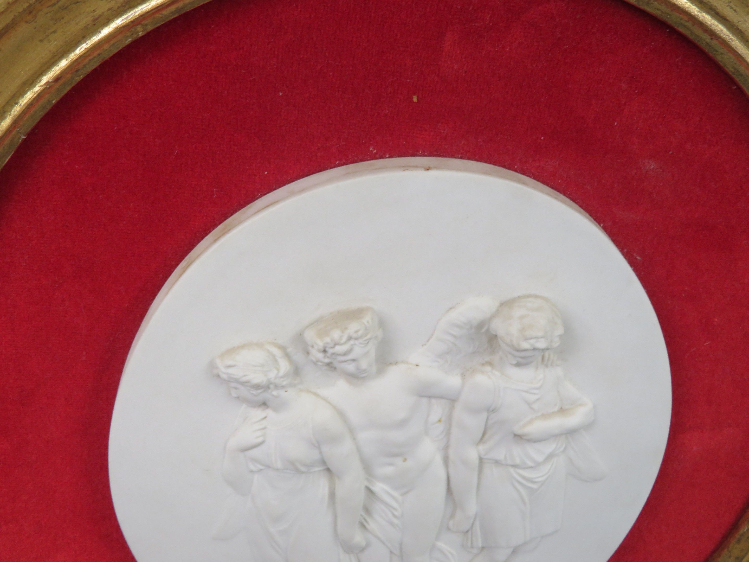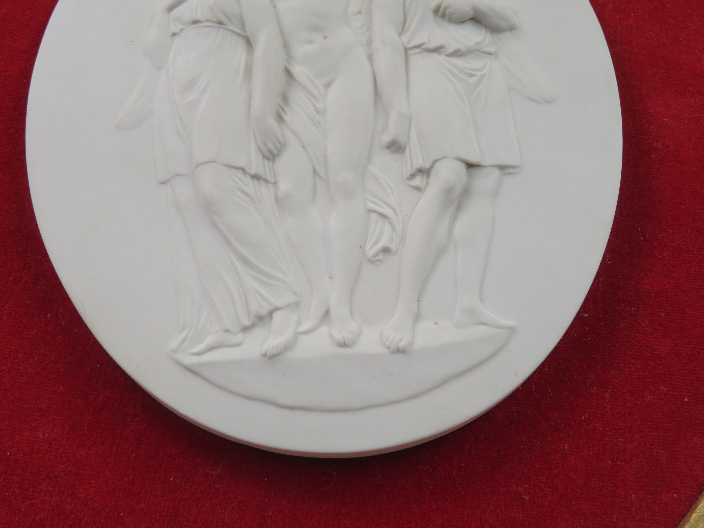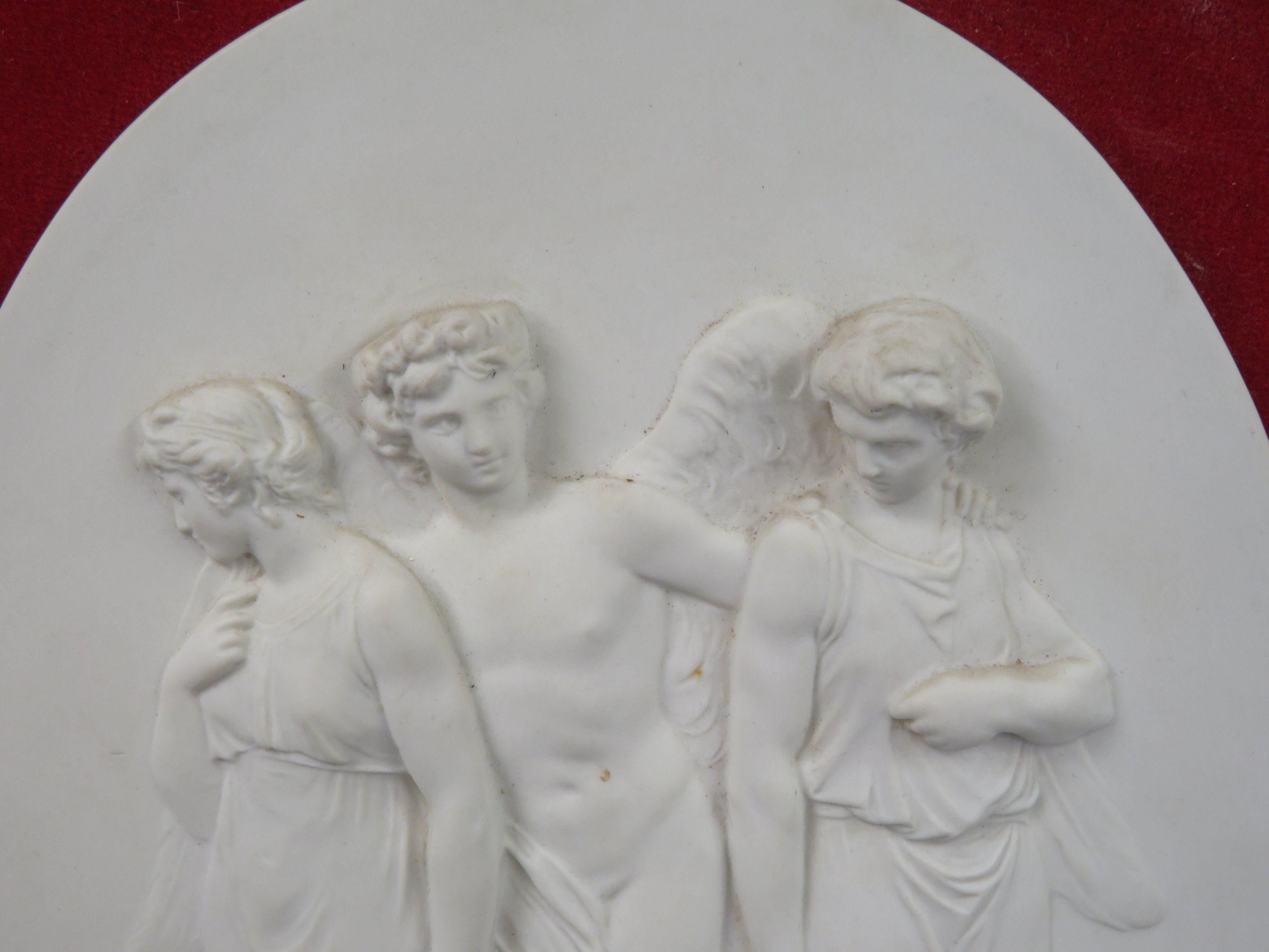 The Three Graces. Bisque medallion on a red velvet backgroun…