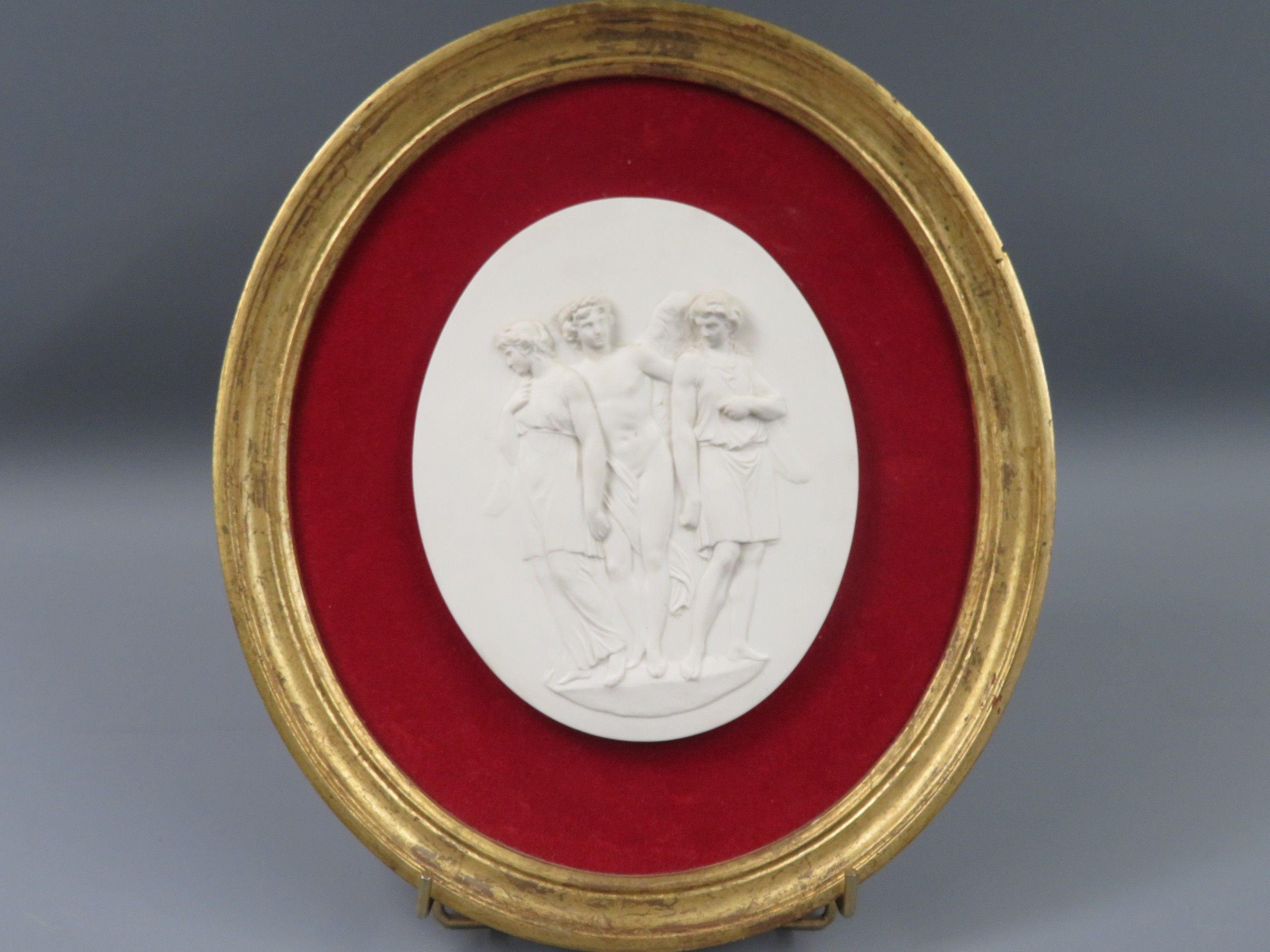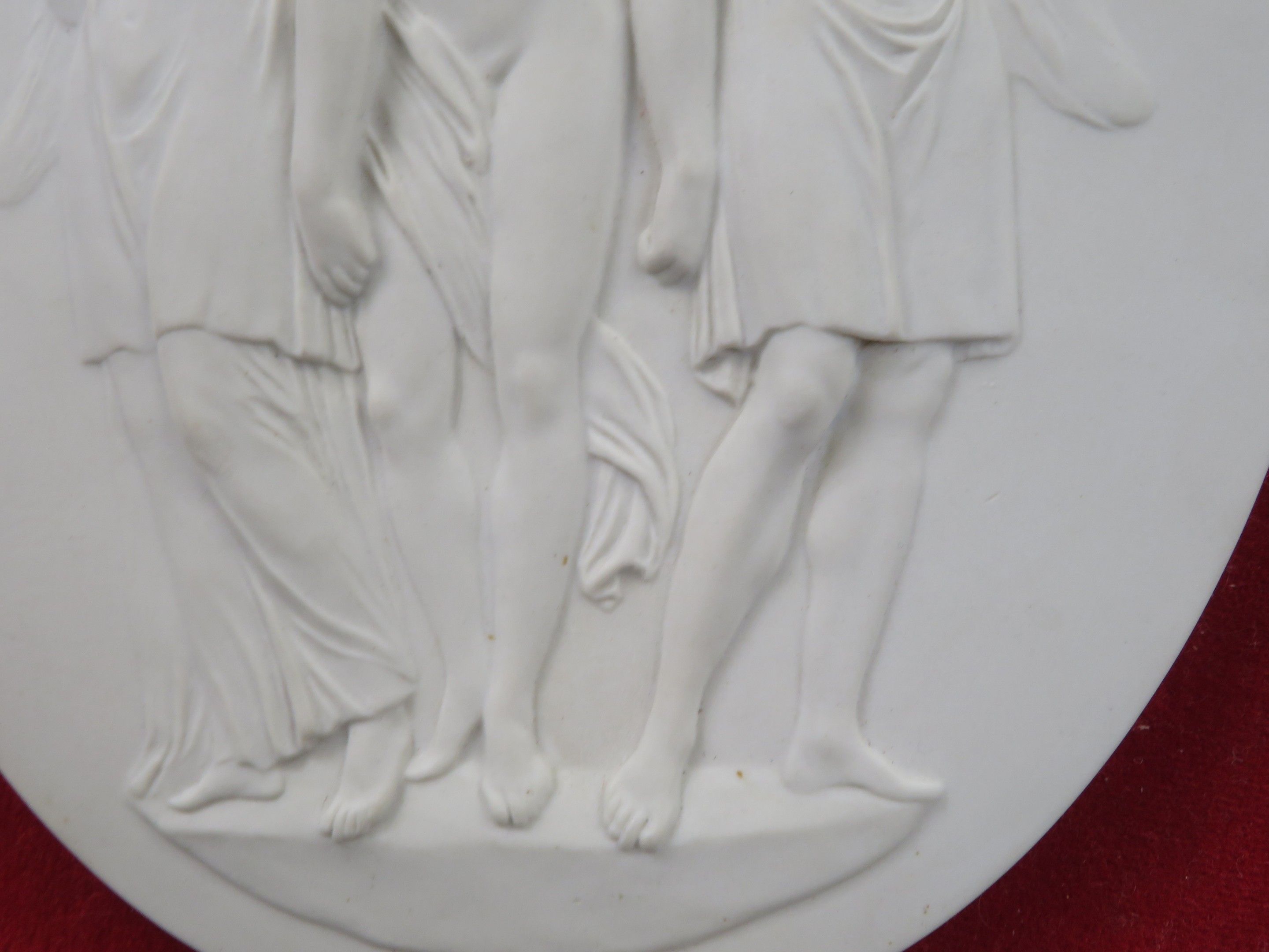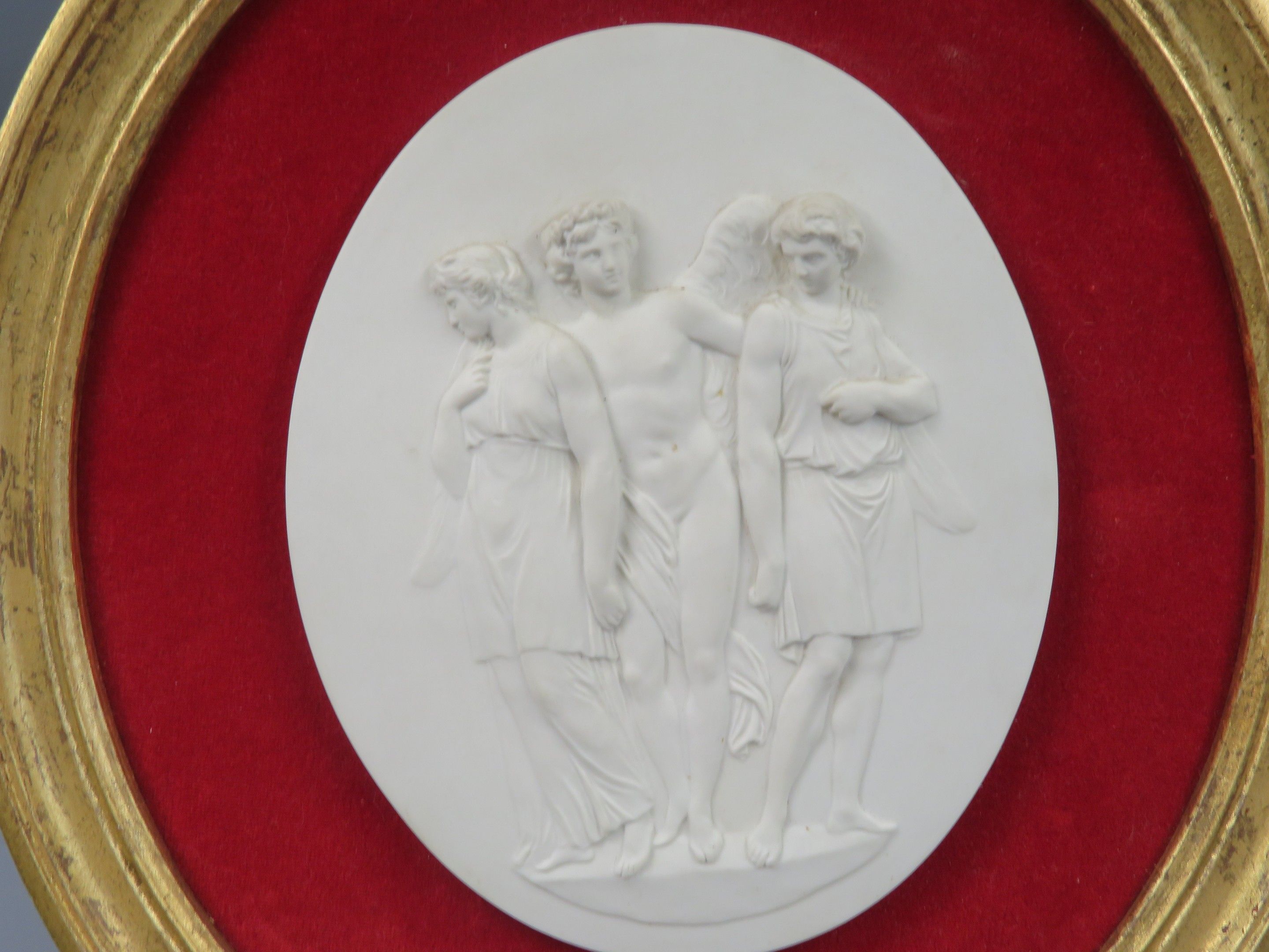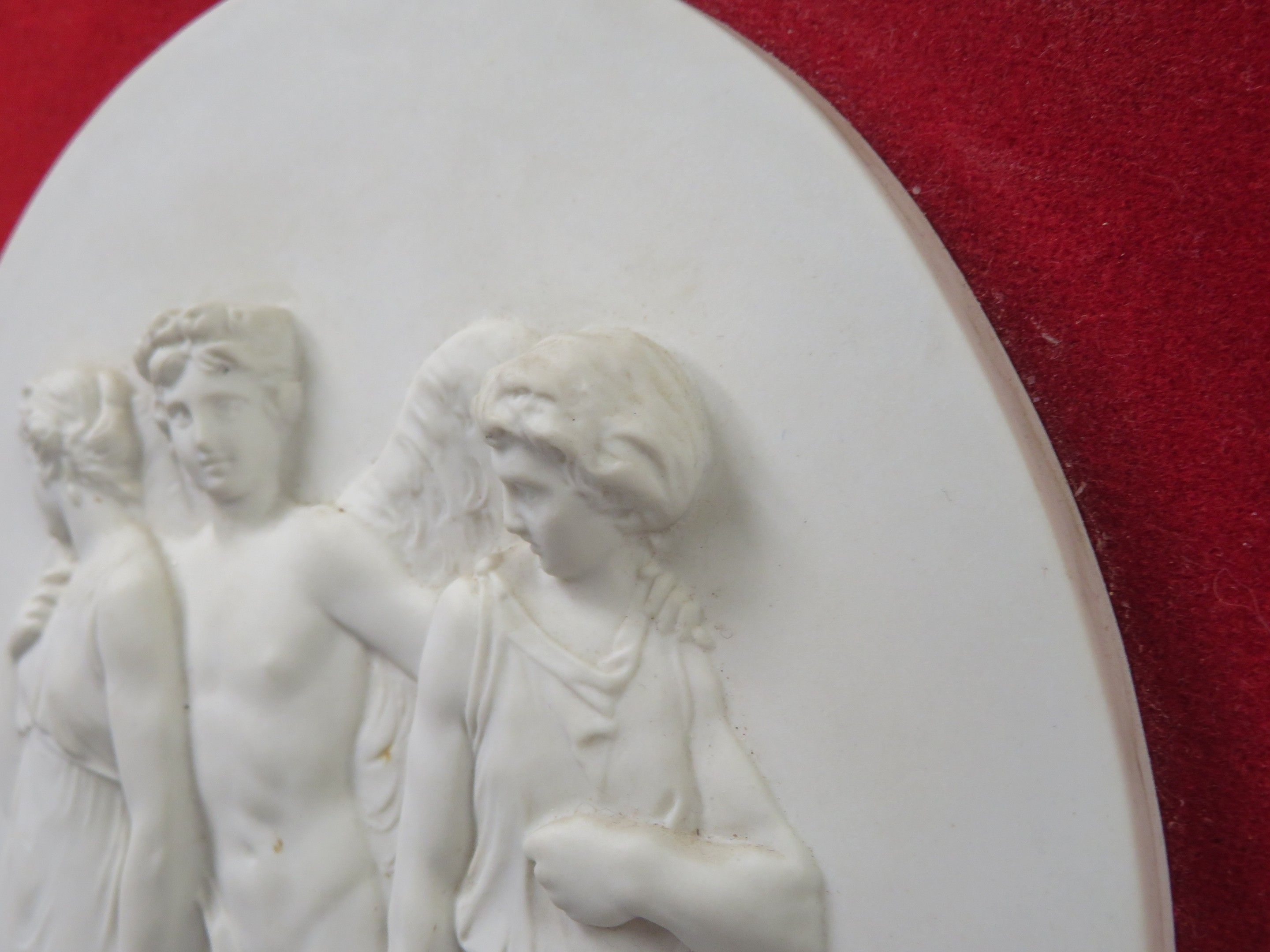 The Three Graces. Bisque medallion on a red velvet backgroun…