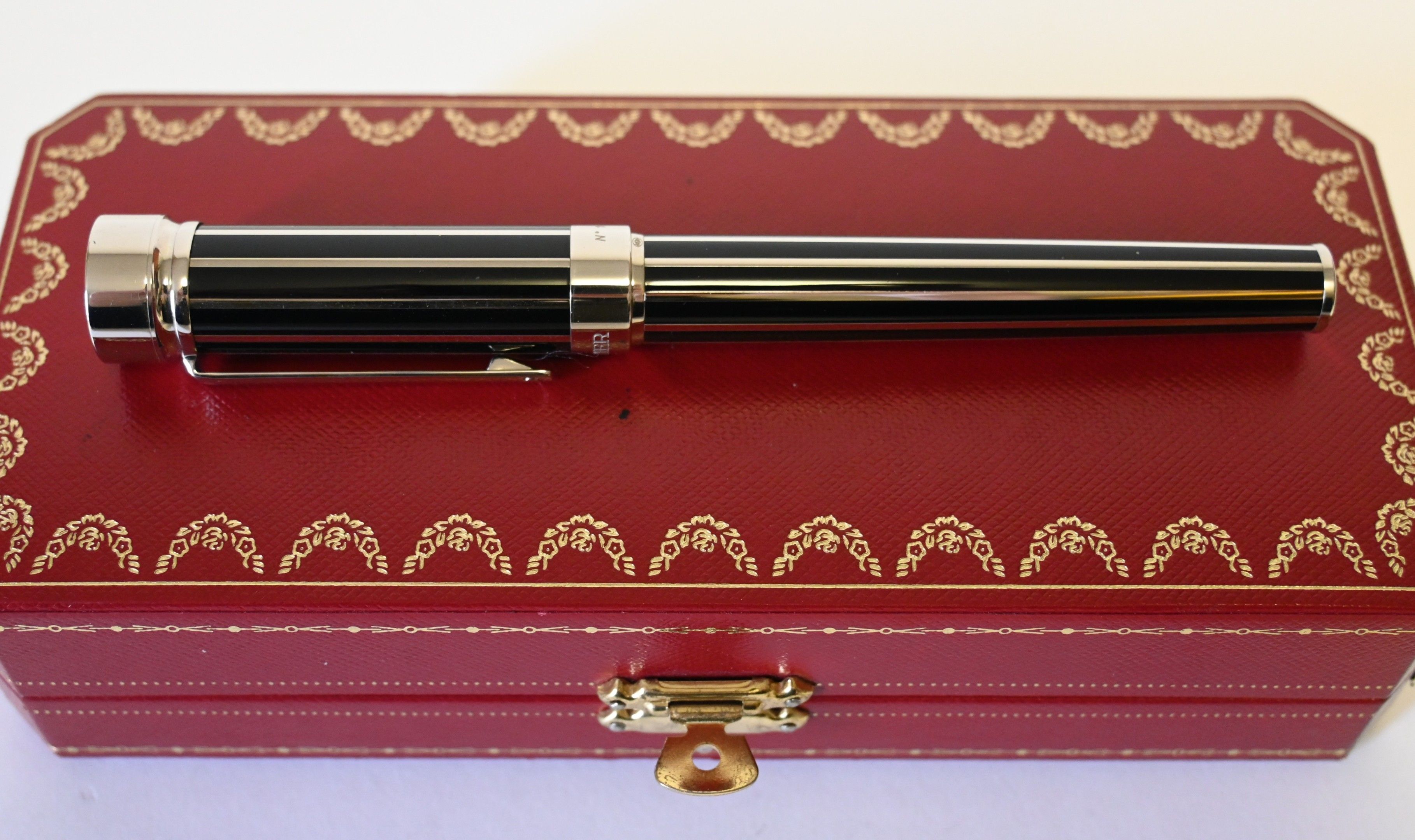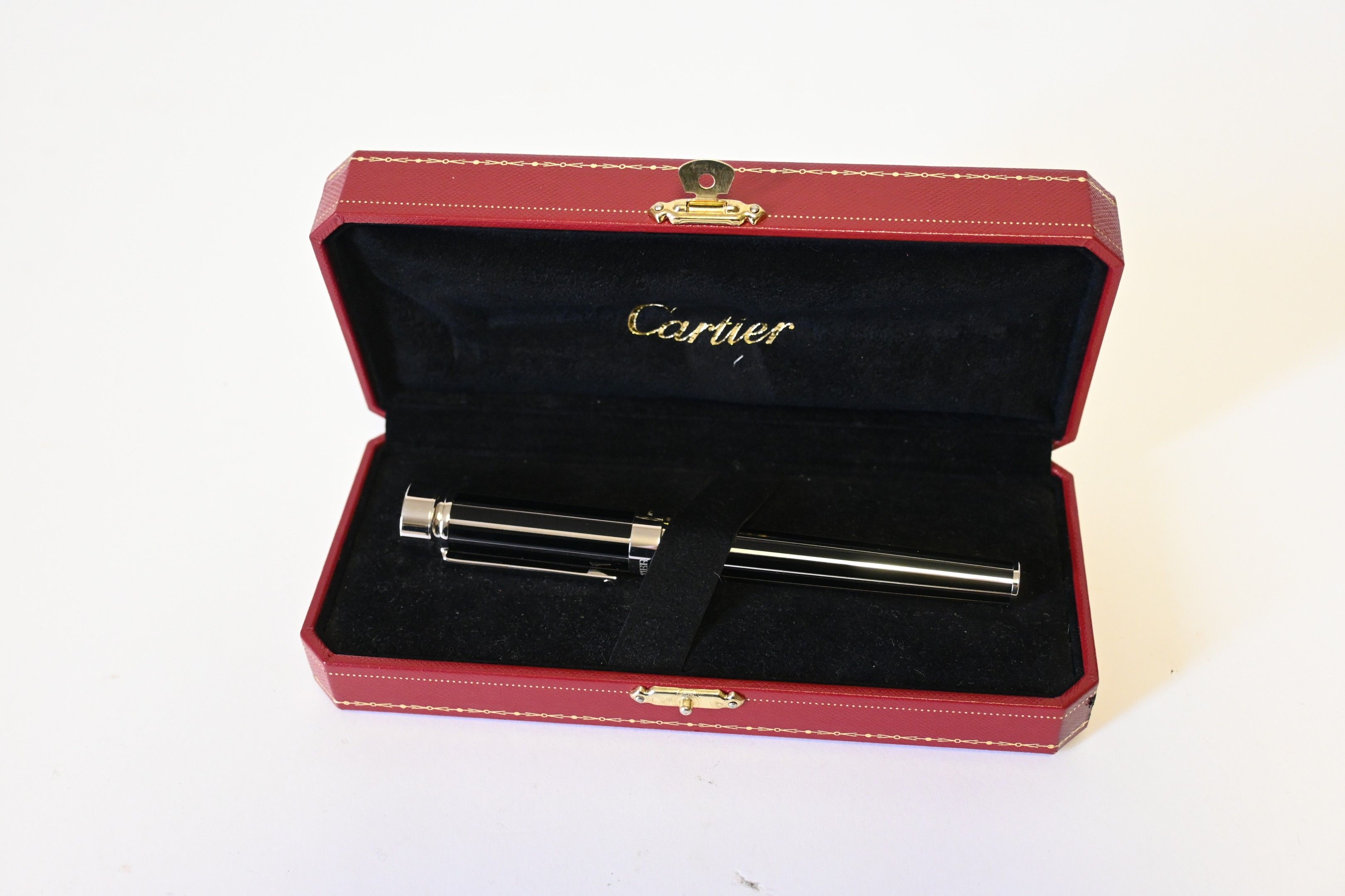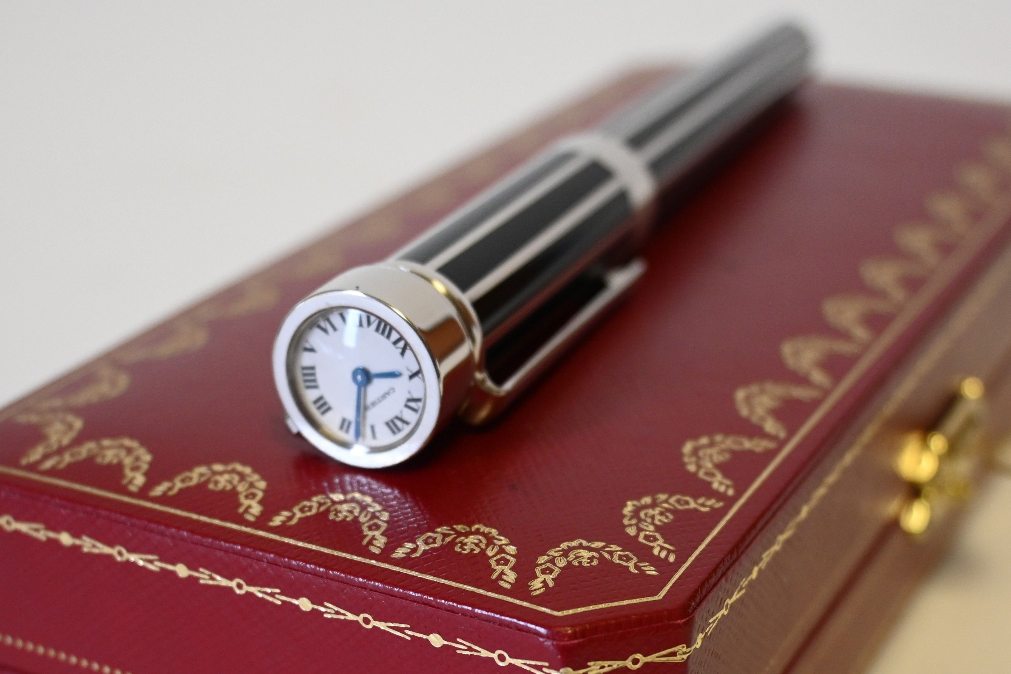 Premium CARTIER. A black plate and palladium fountain pen watch with…