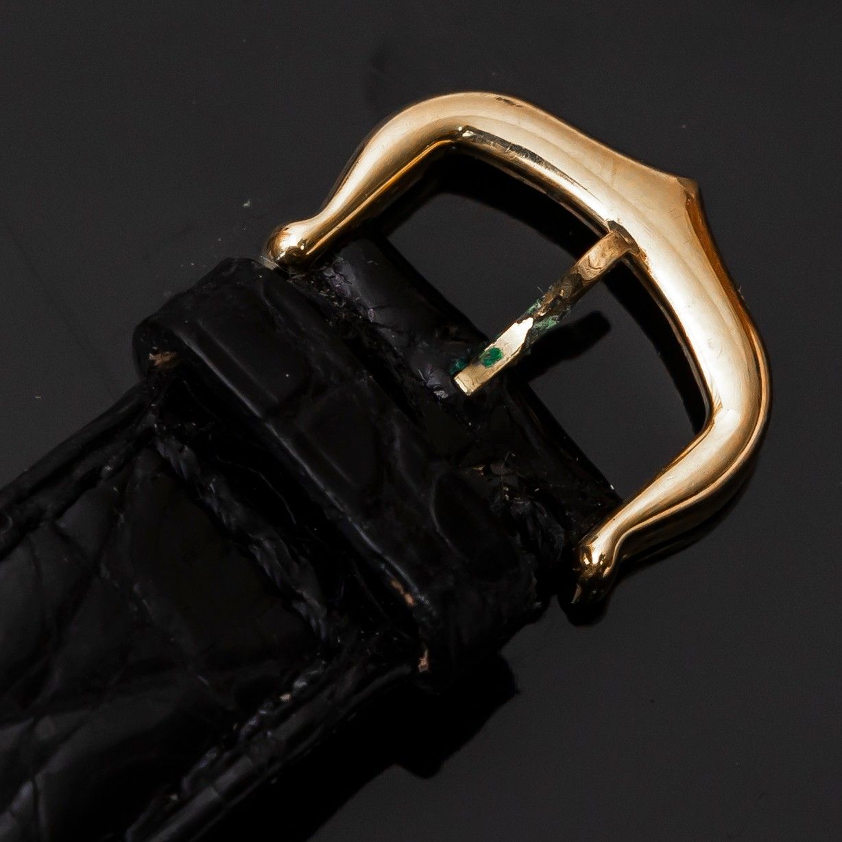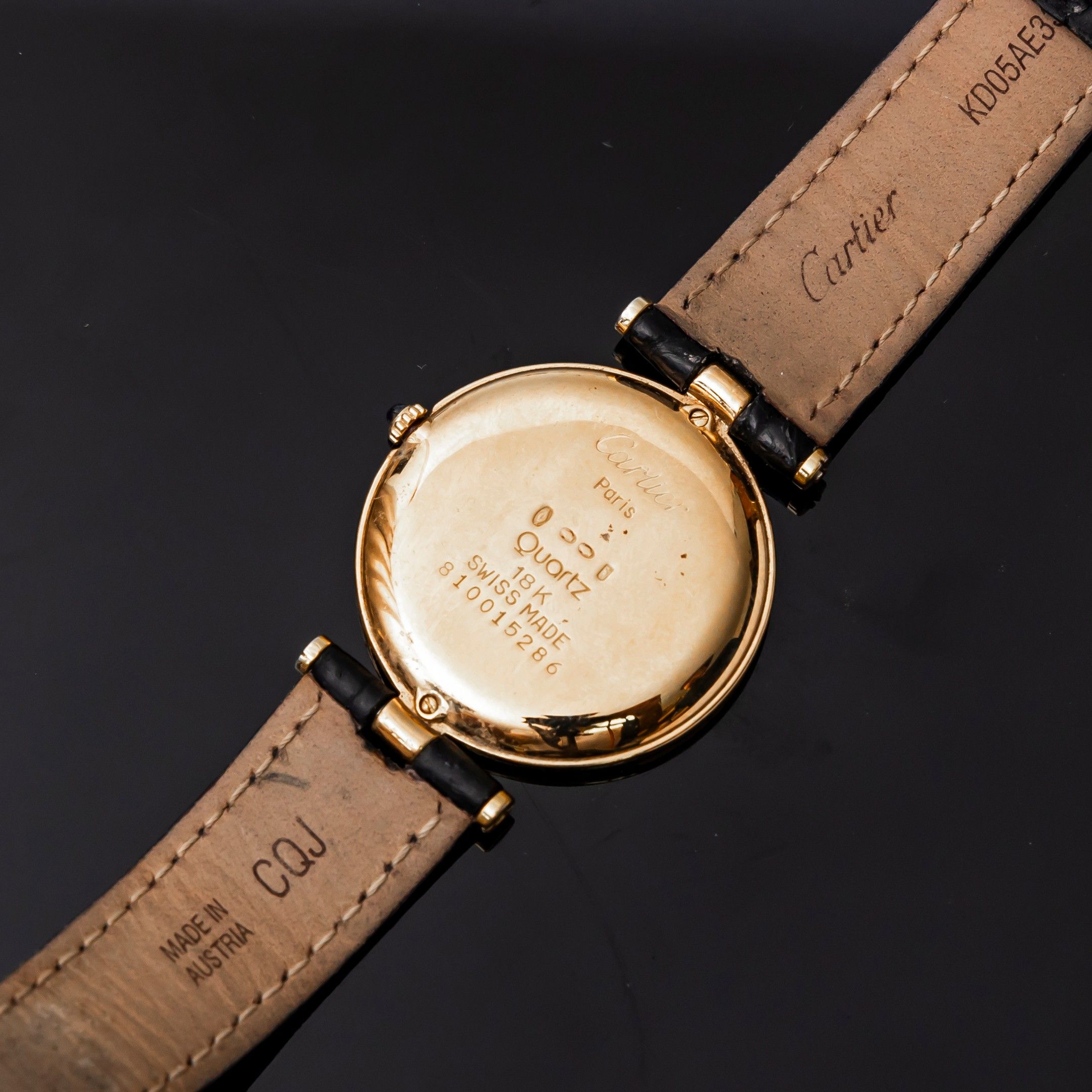 CARTIER. A 750‰ gold round case men's watch, Vendôme model, quartz movement. Original gilt metal buckle. Gross weight: 25.65g.