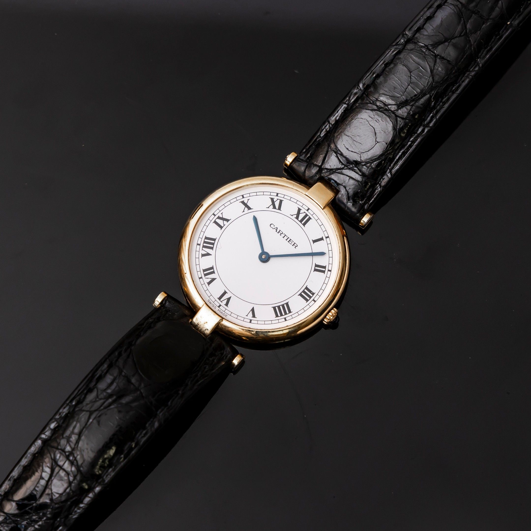 CARTIER. A 750‰ gold round case men's watch, Vendôme model, …
