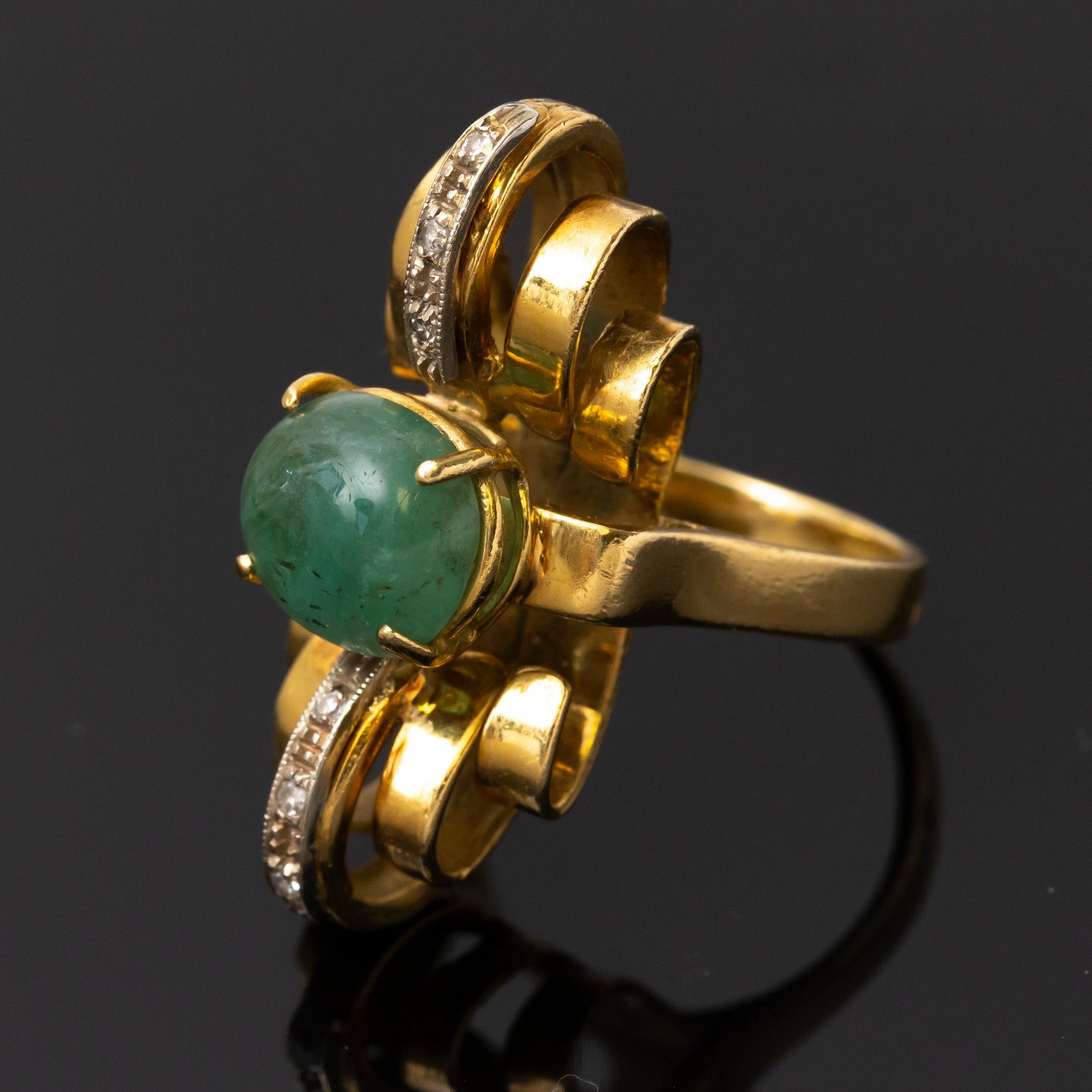 A yellow gold 750‰ ring set with a cabochon of jarde surmoun…