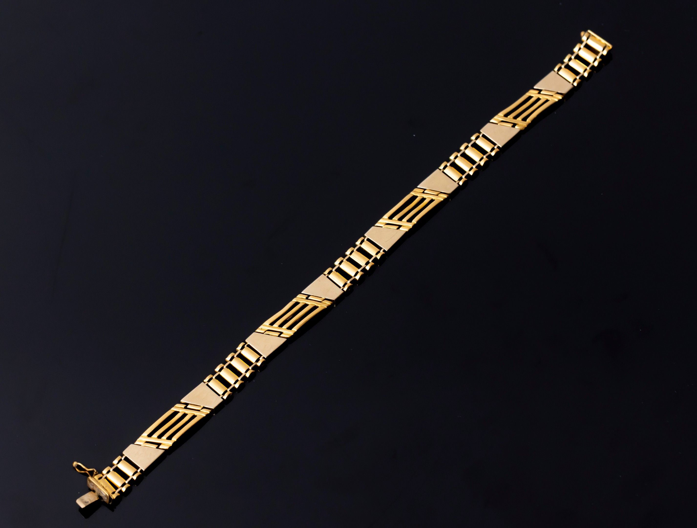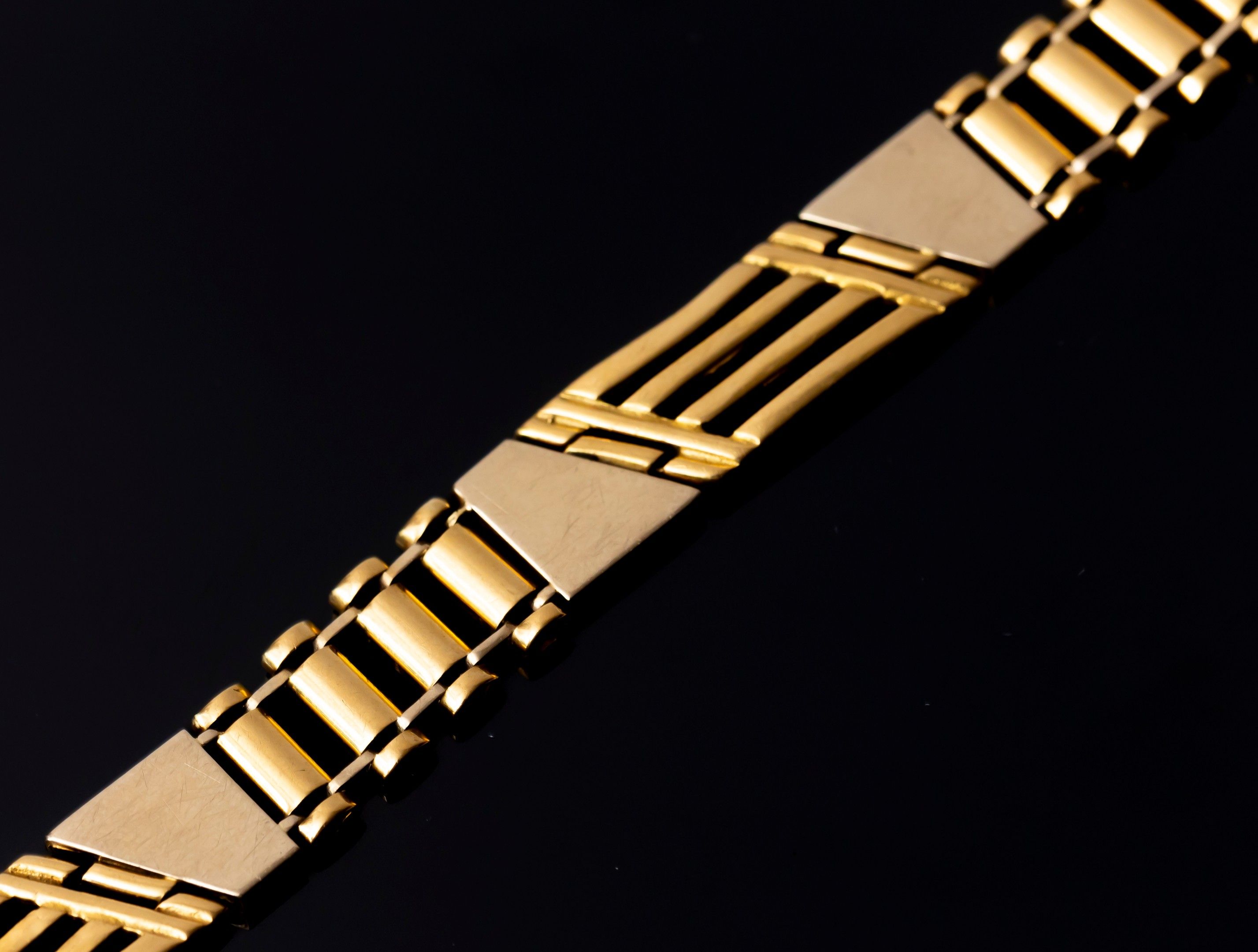 A bracelet in 750‰ gold. Length : 23,5 cm. Weight: 37.47 g. (Shocks and deformations).