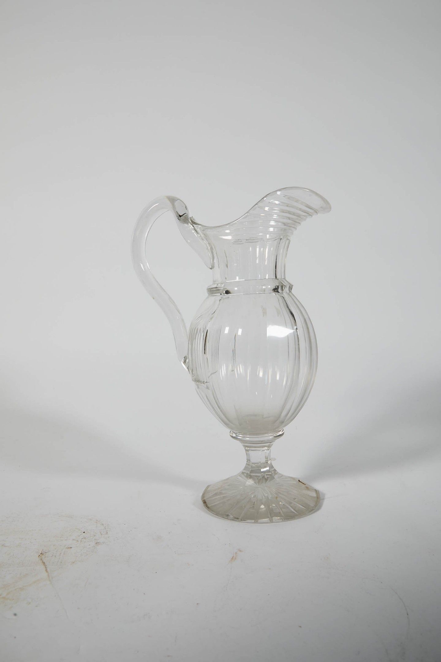 25 19th century crystal ewer on a pedestal. Height: 31 cm.