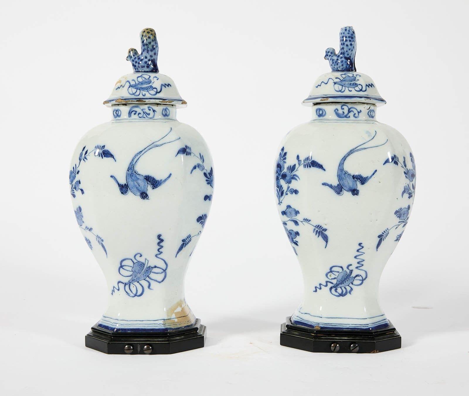 32 Delft : A pair of tin-glazed earthenware covered vases de…