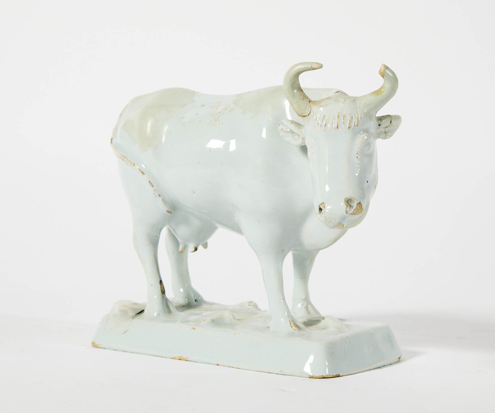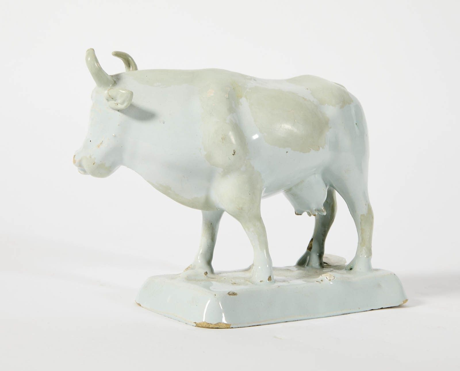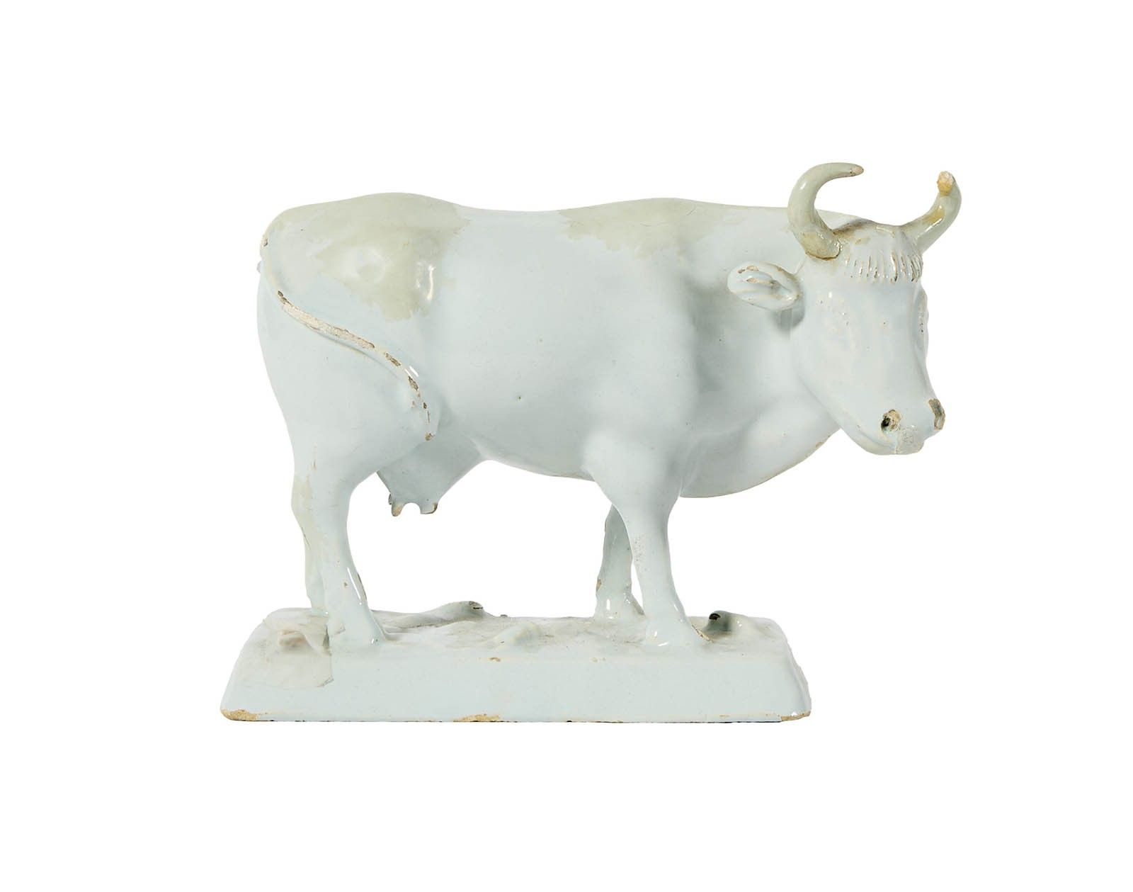 45 Delft: white tin-glazed earthenware cow.