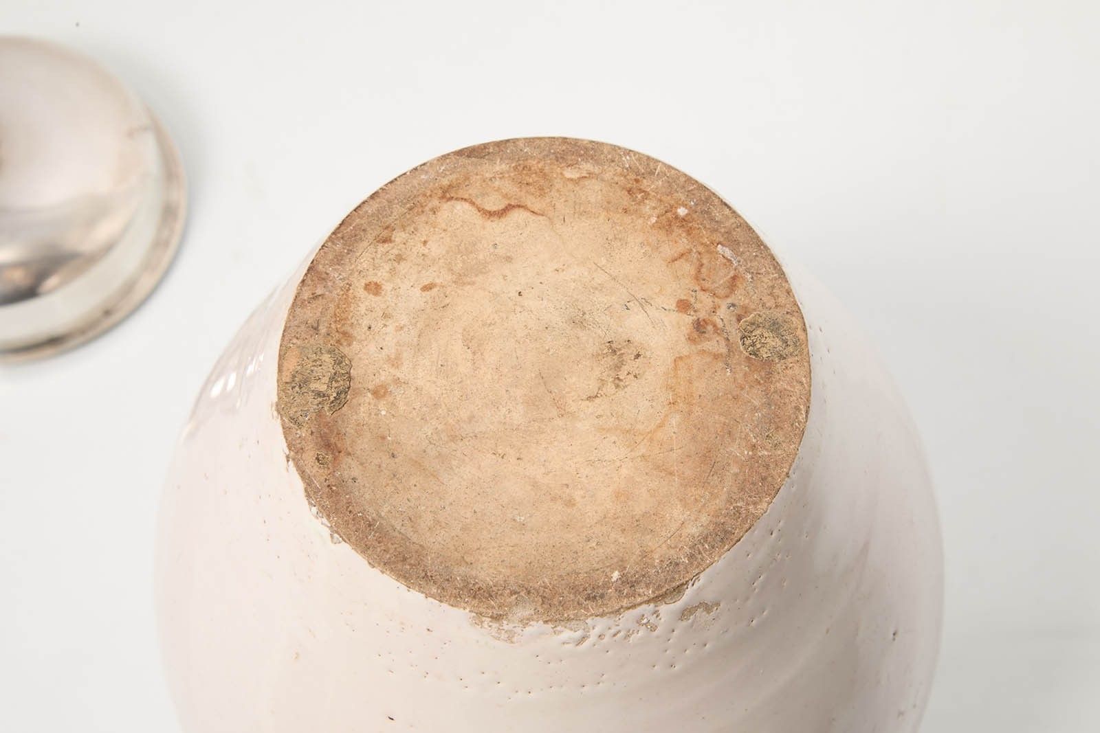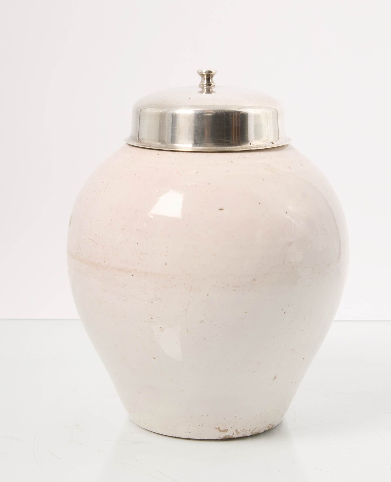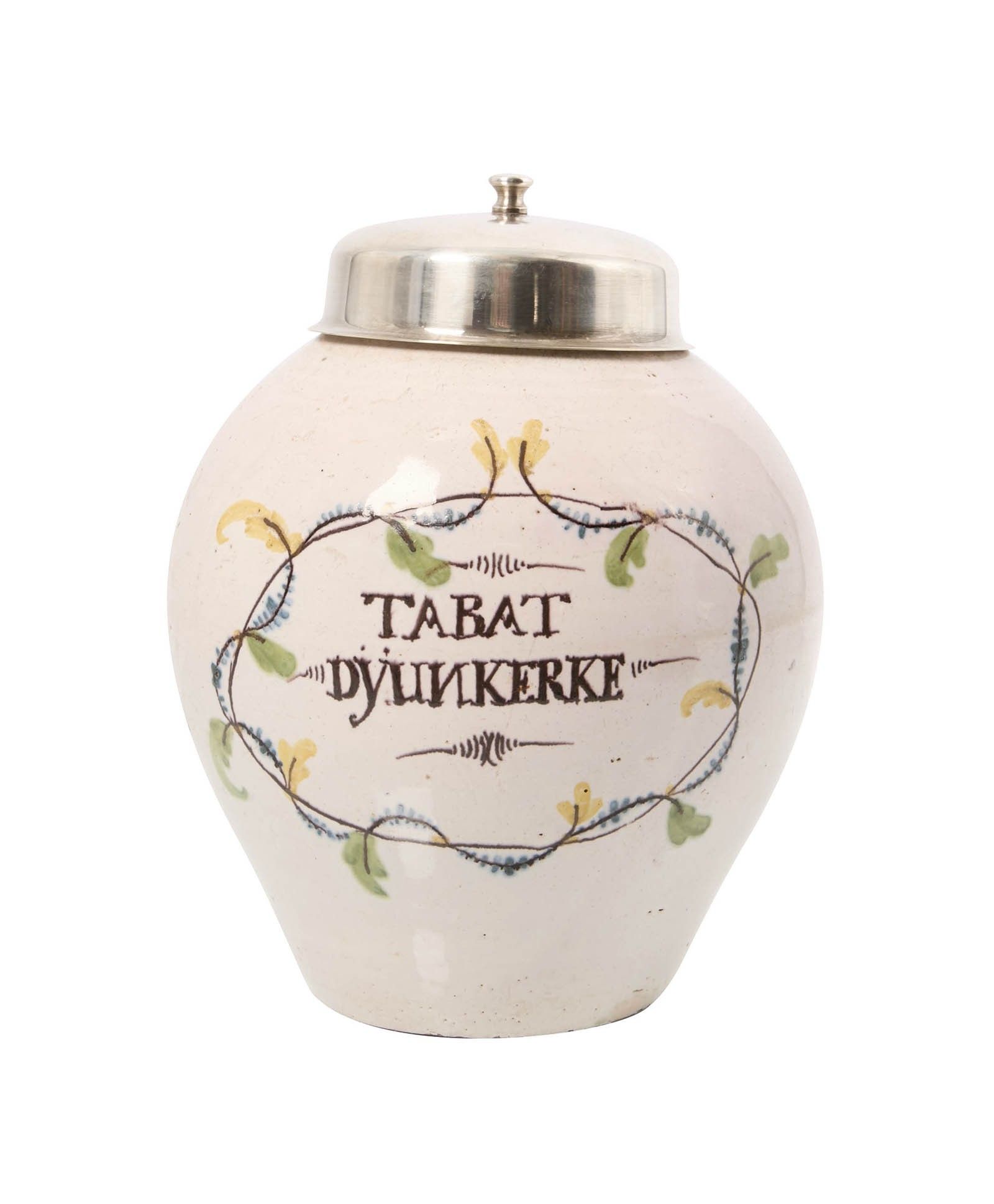 Polychrome tin-glazed earthenware tobacco pot marked "TABAT DYUNKERKE".