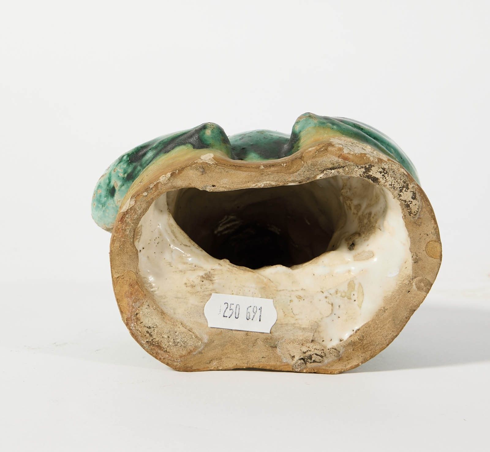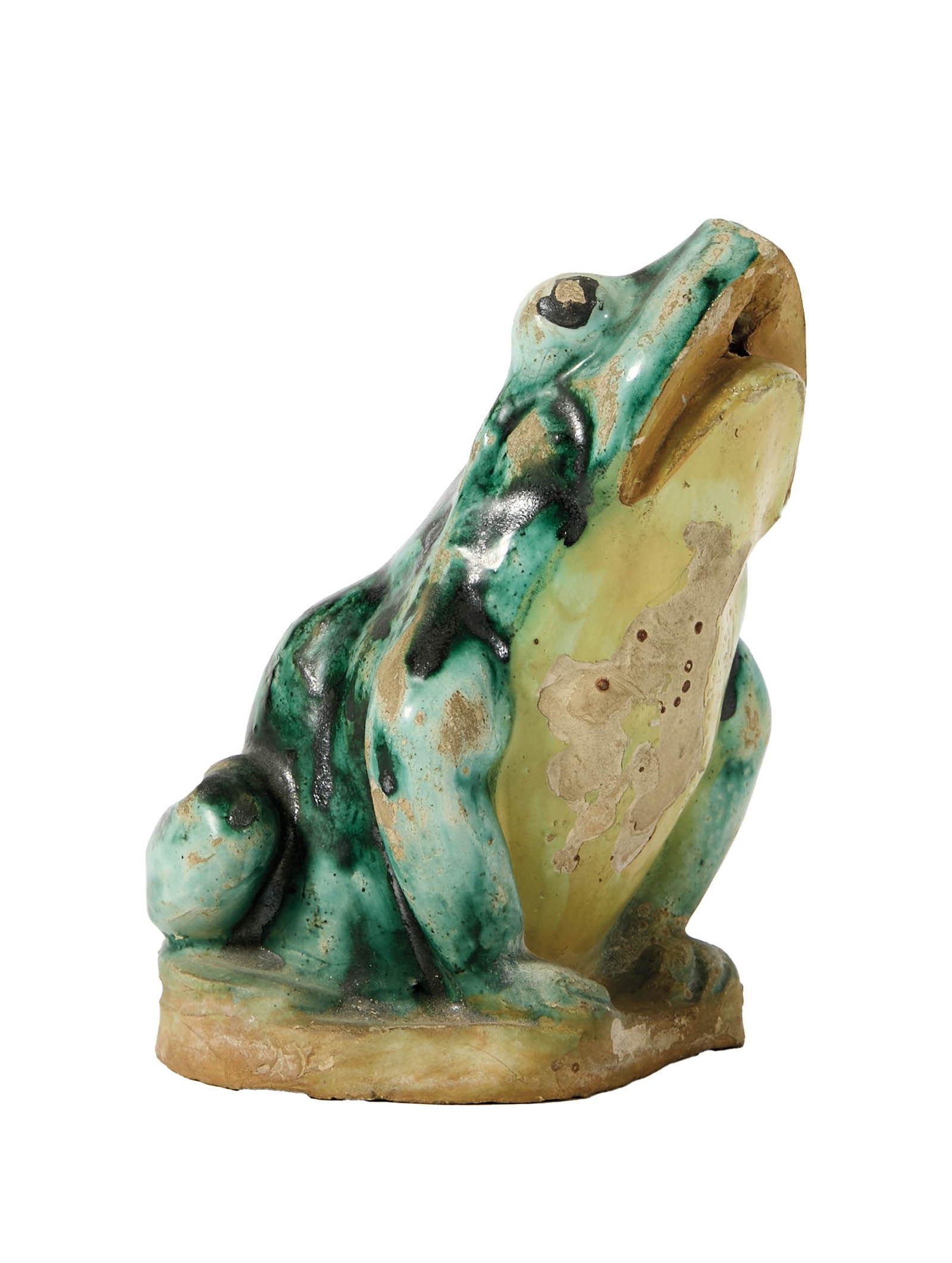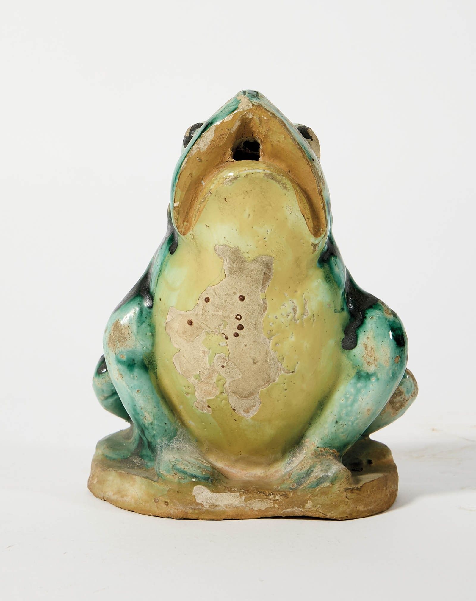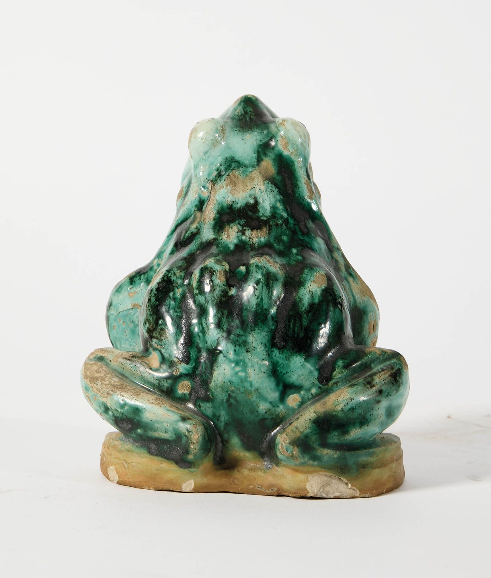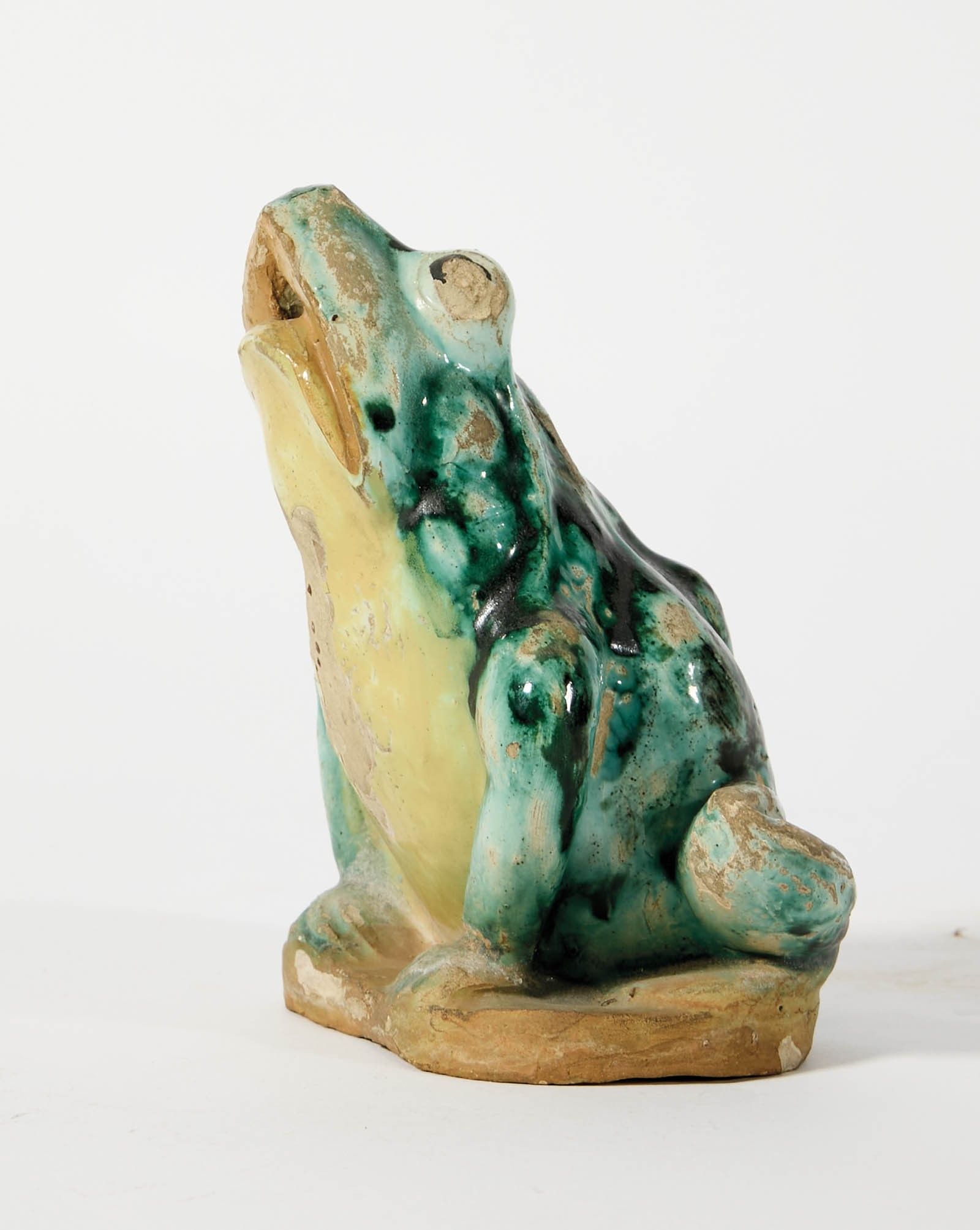 Green frog in stanniferous earthenware painted au naturel. Germany 18th century. Height: 15 cm