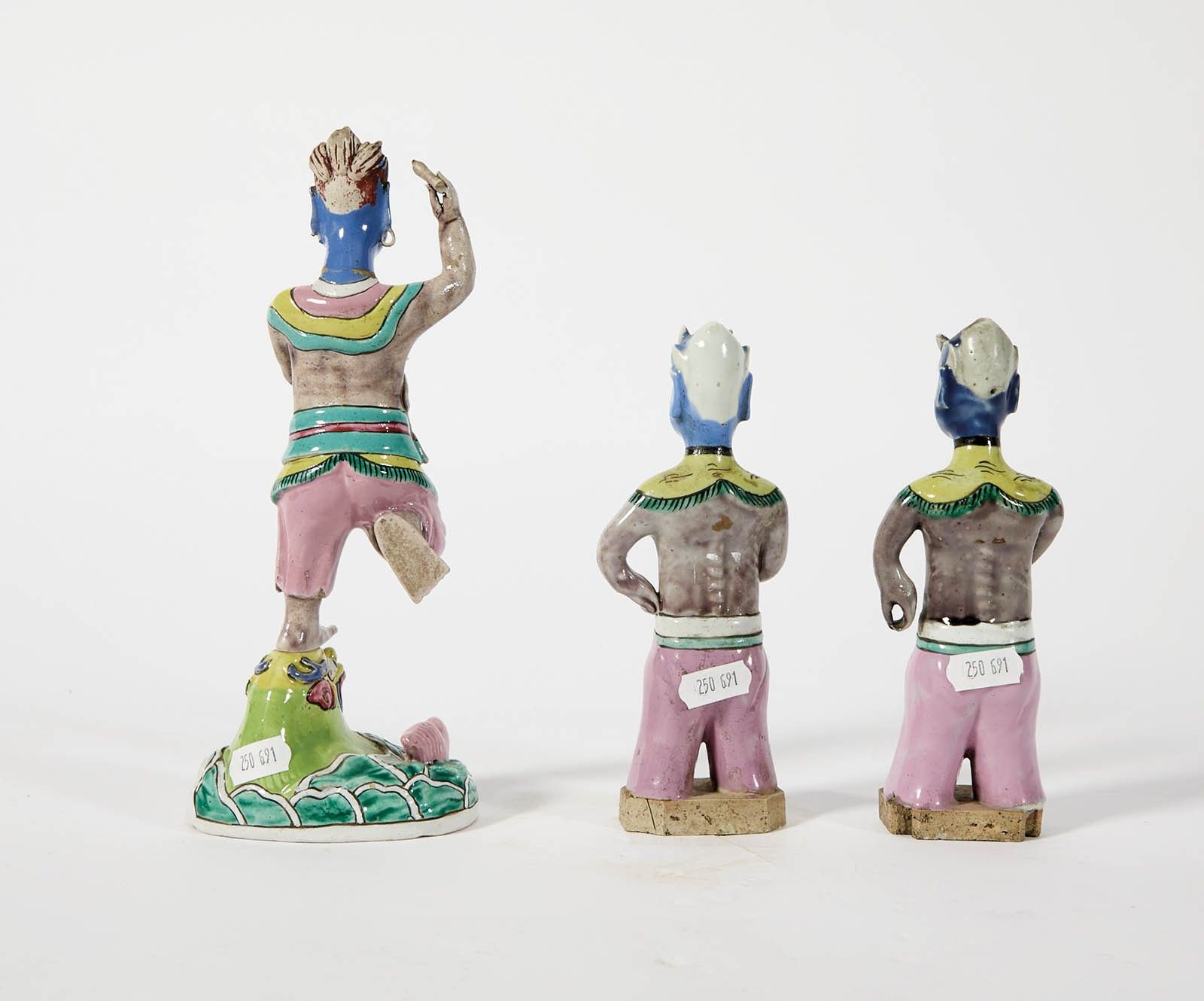 101 China: Three Koe t'Sing in kaolin porcelain. Genius of literature often invoked to have intelligent children. Period: late 19th century and early 20th century. Height: 18.5 to 24.5 cm.