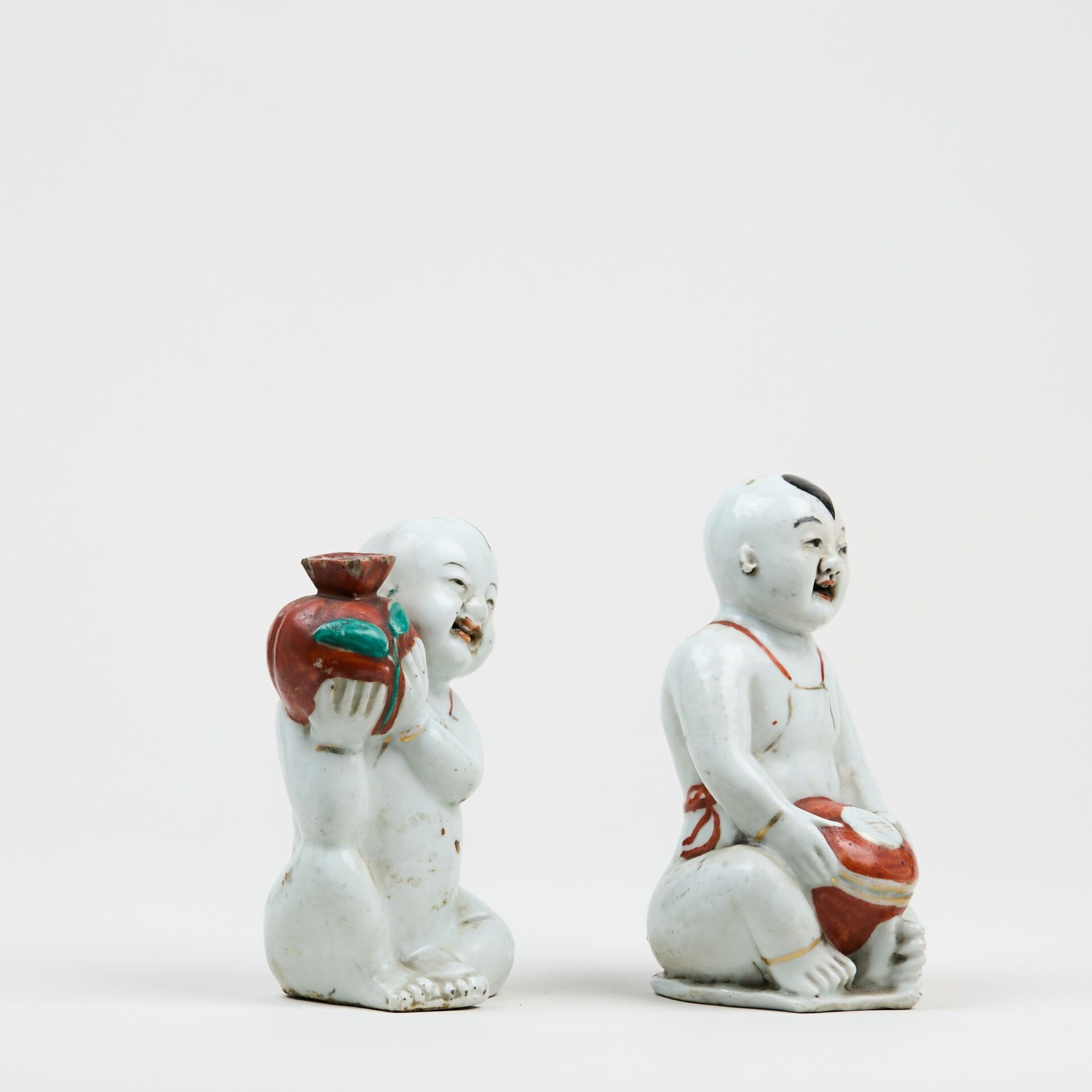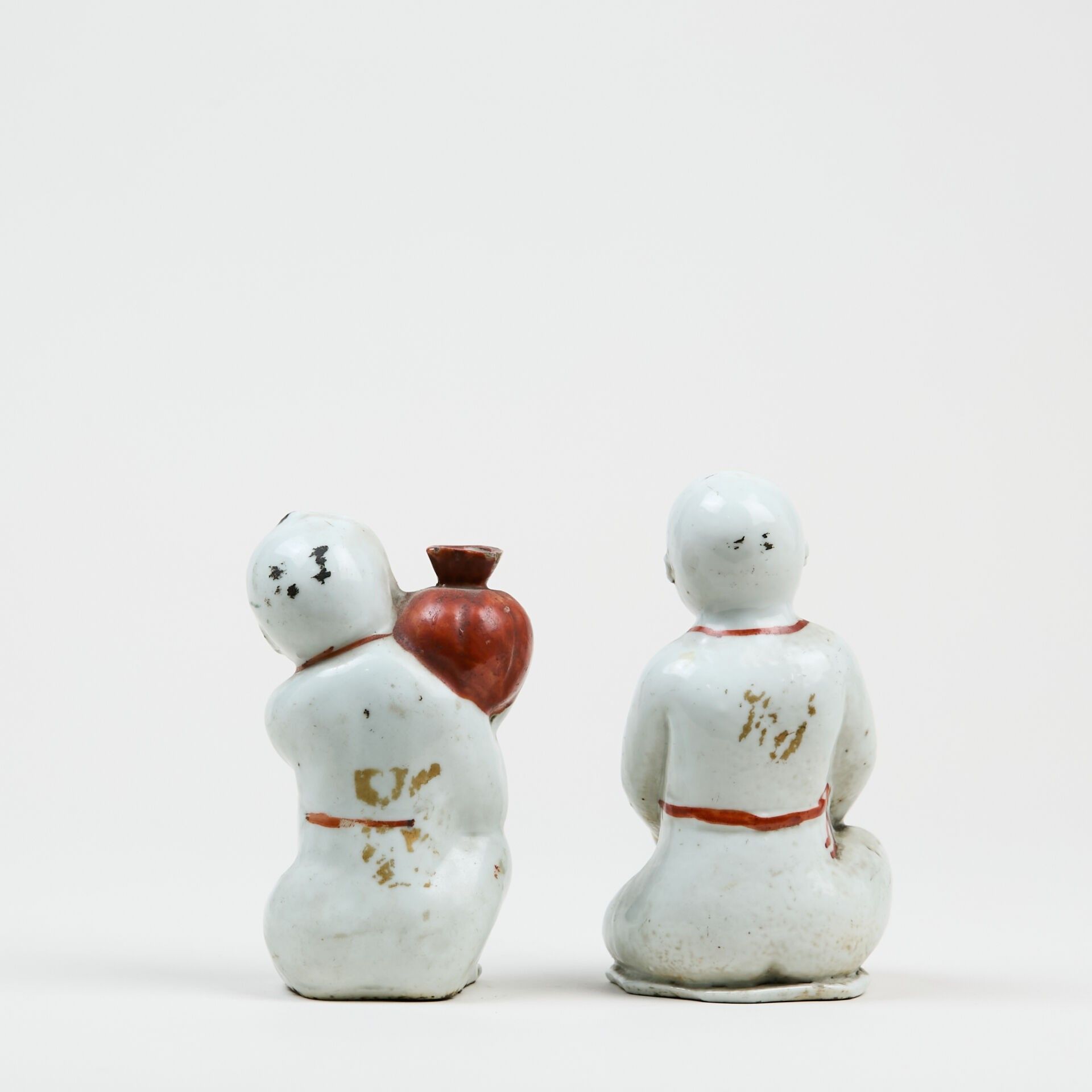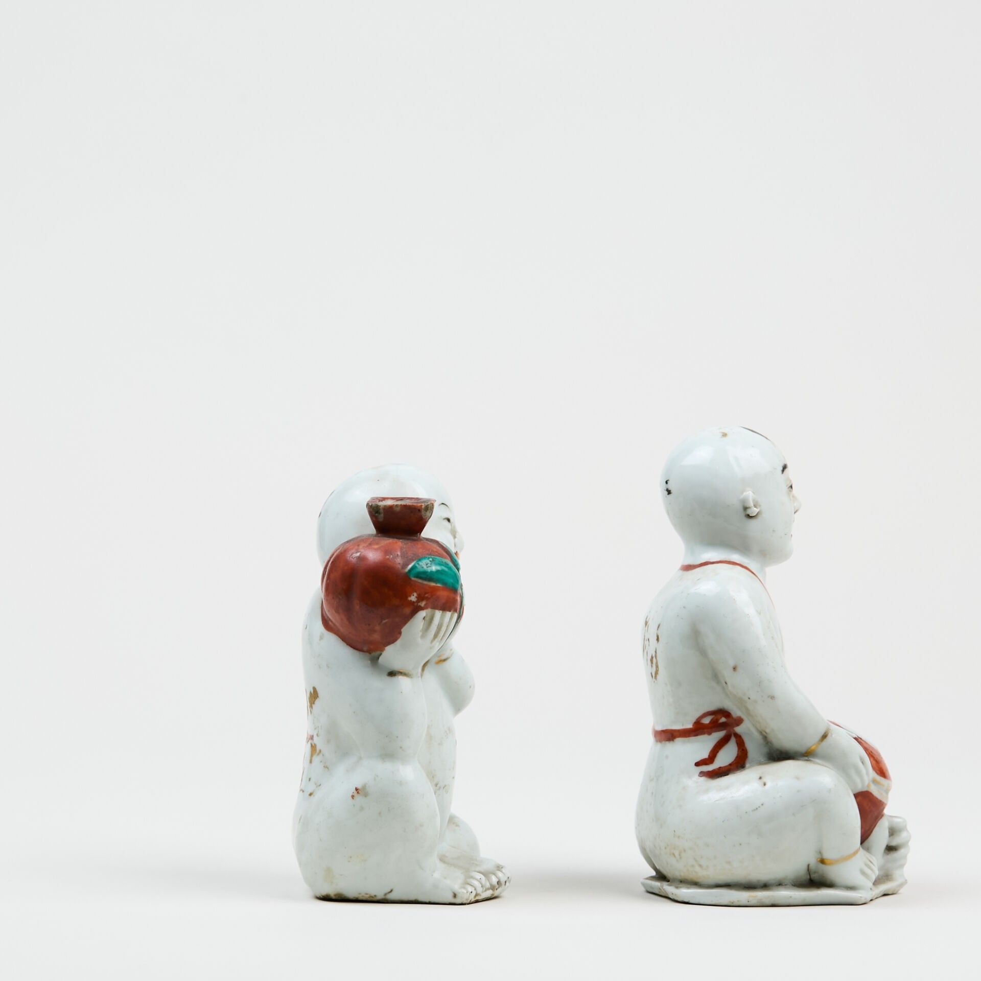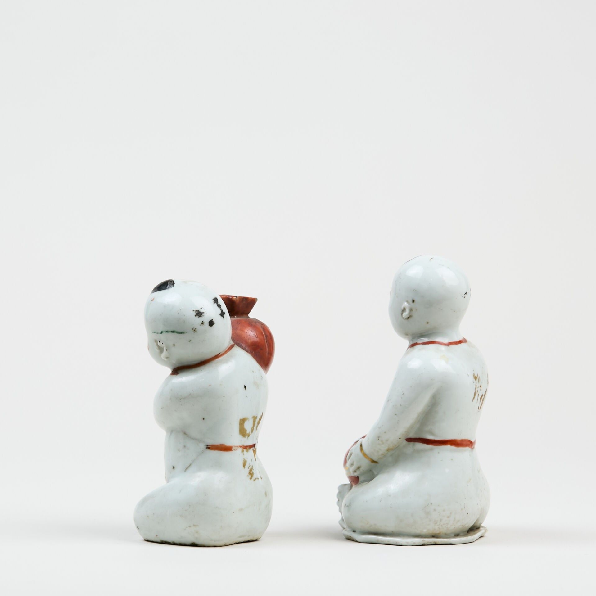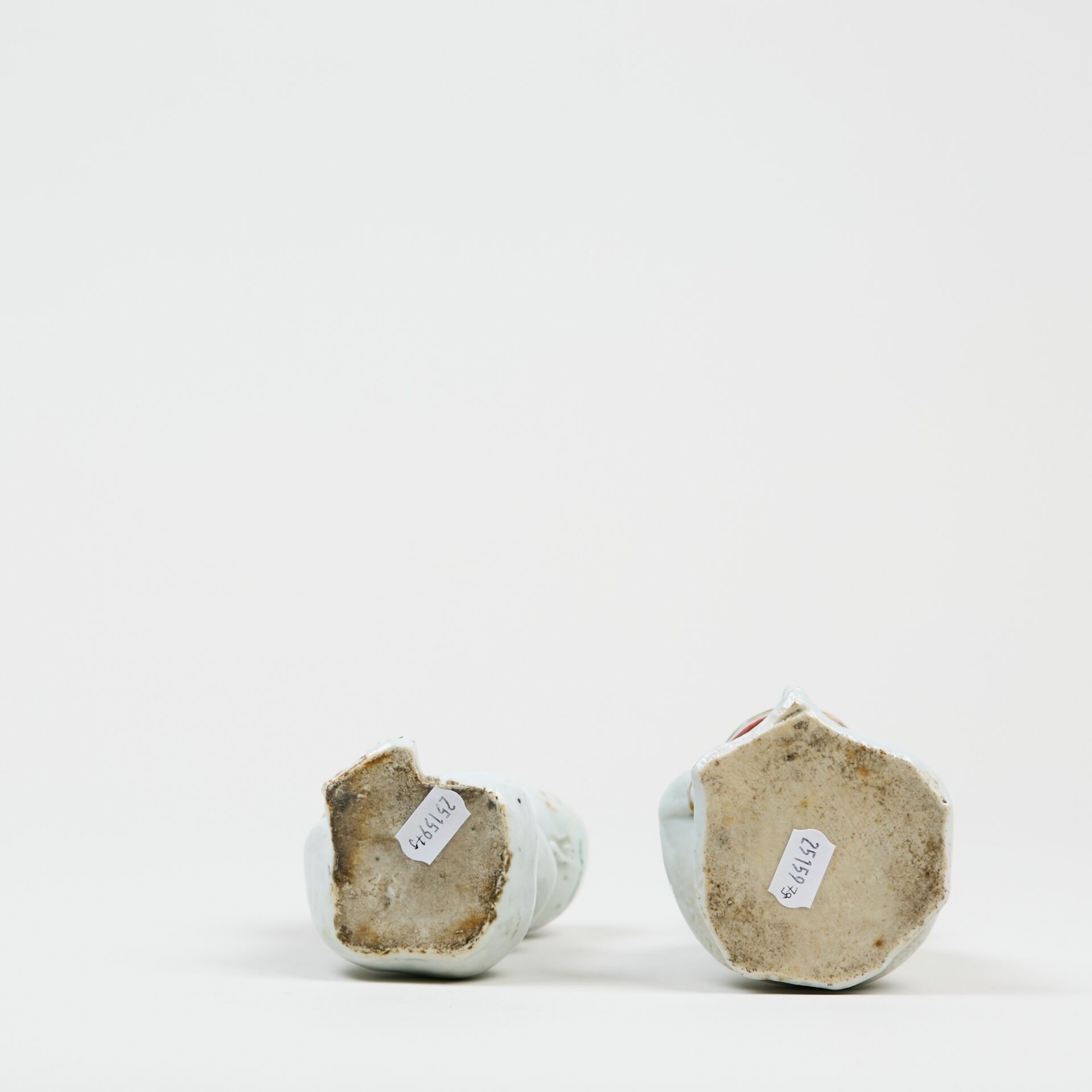 Two porcelain and polychrome enamel statuettes representing the hoho brothers.