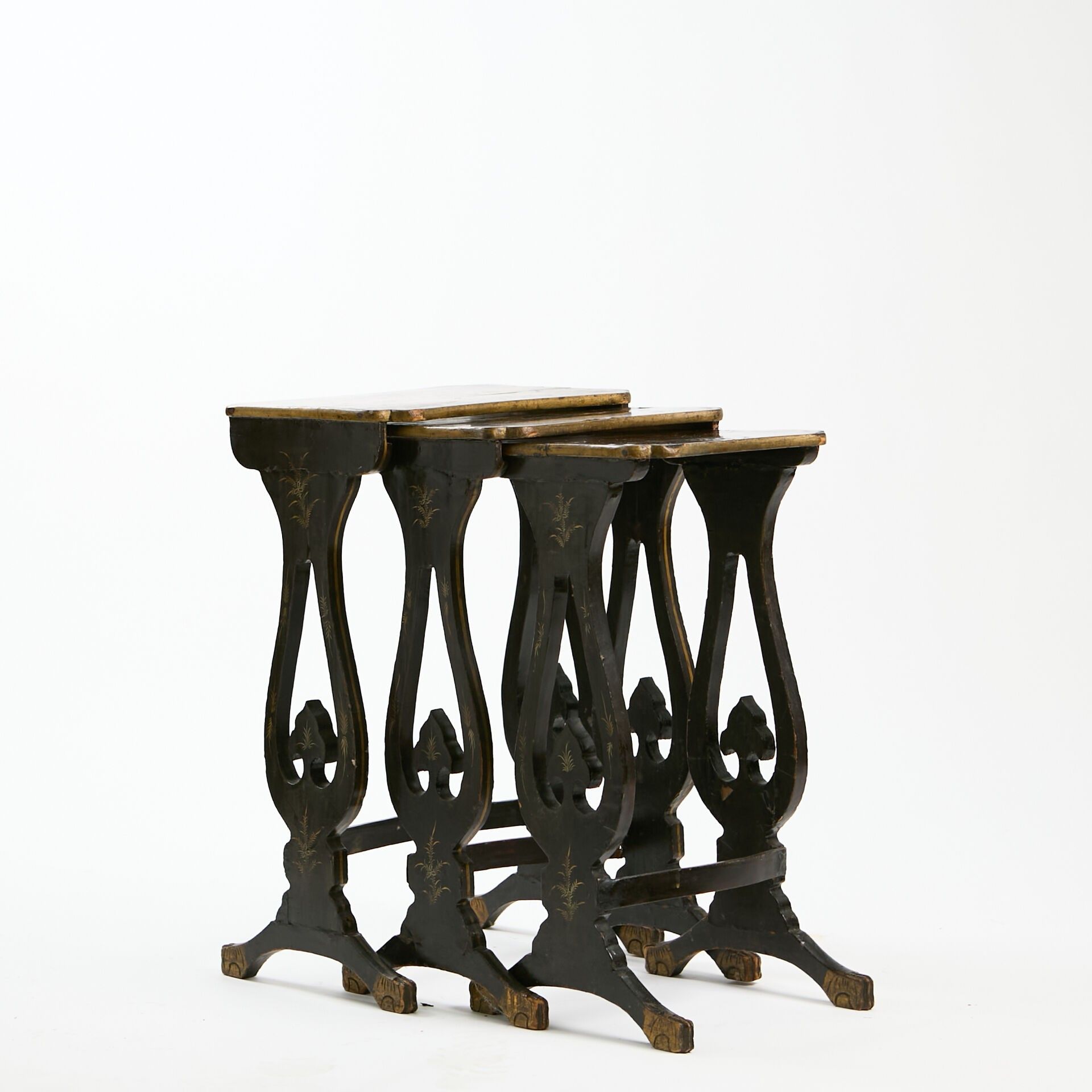 Anglo-Chinese work, circa 1880 Three nesting tables in gold …