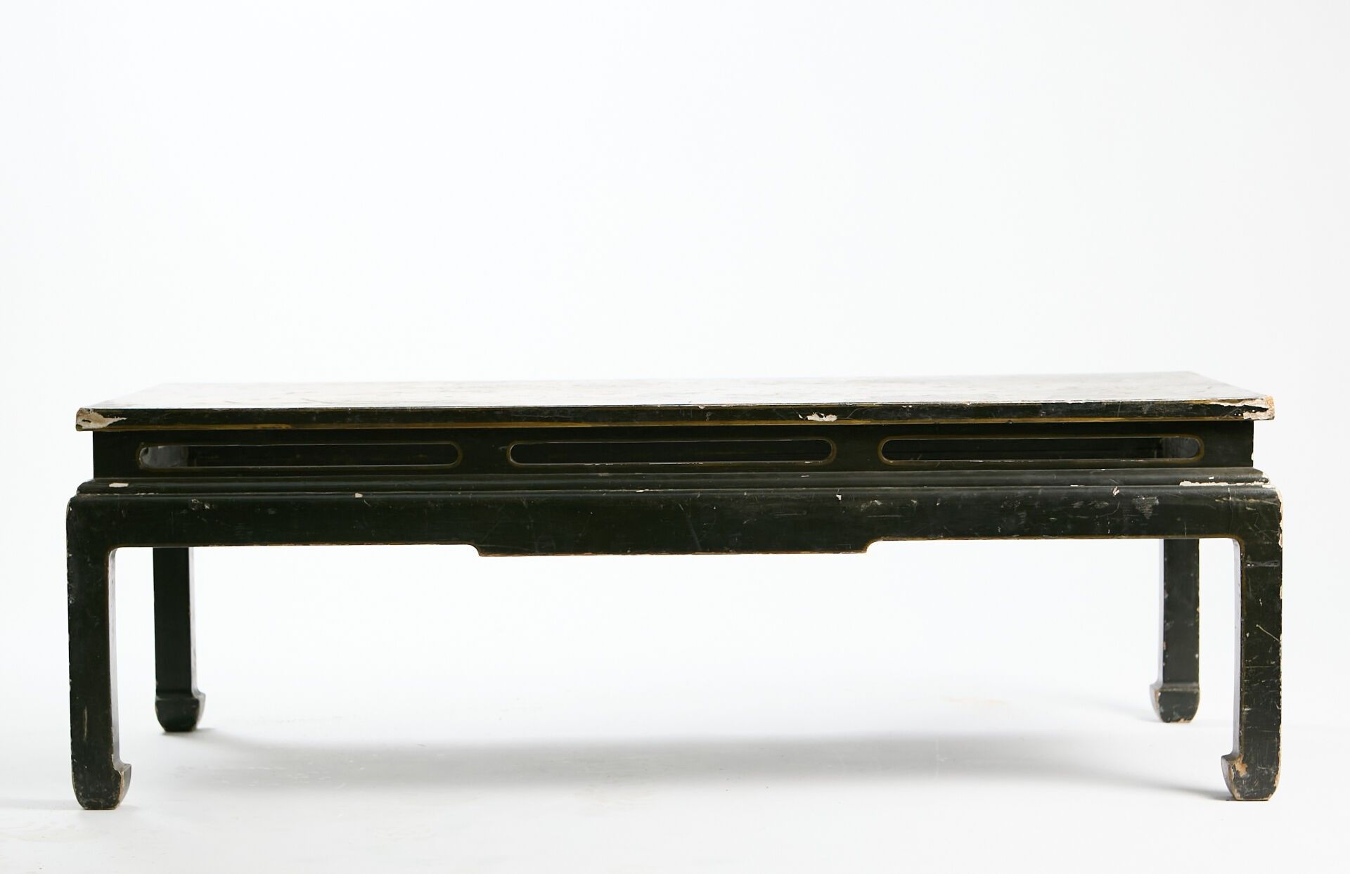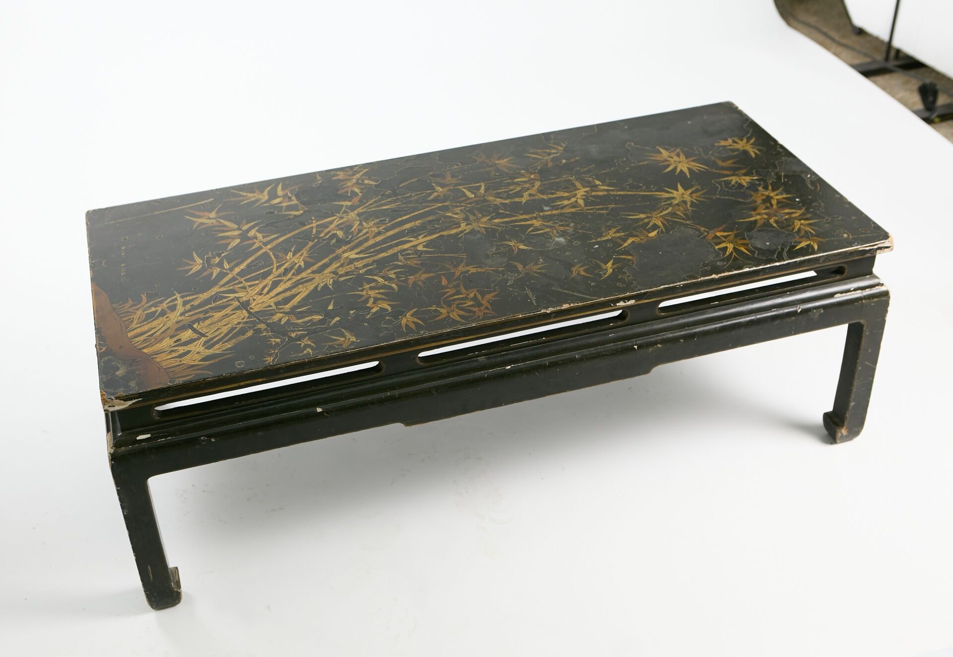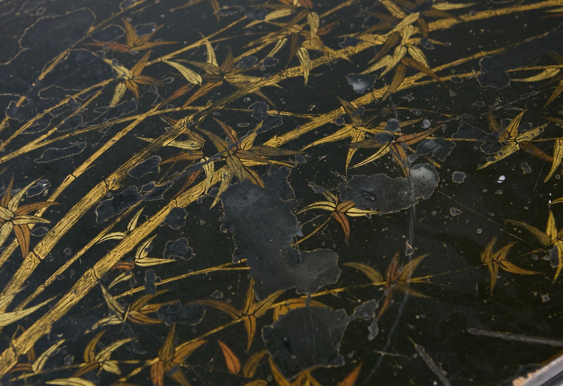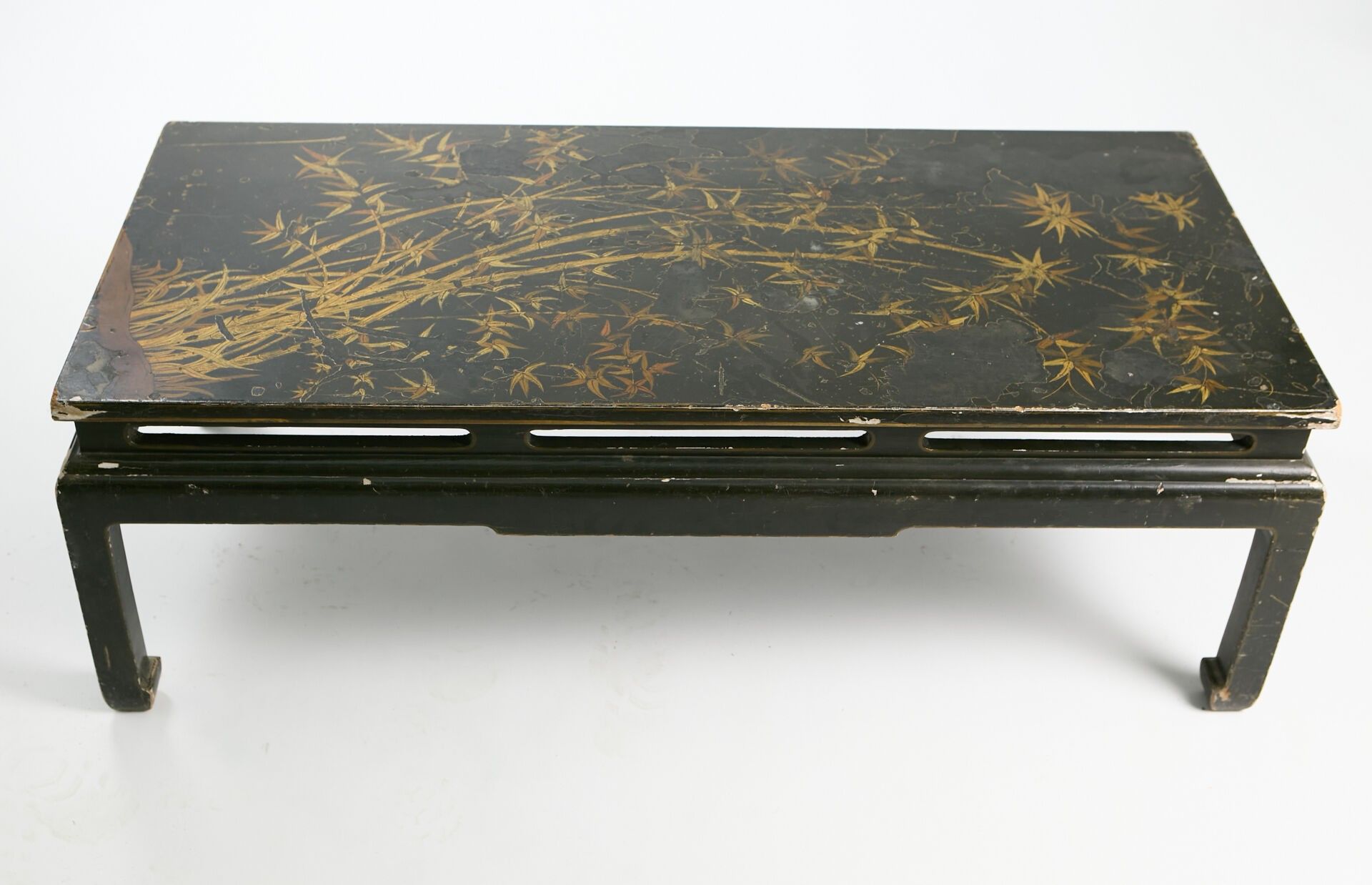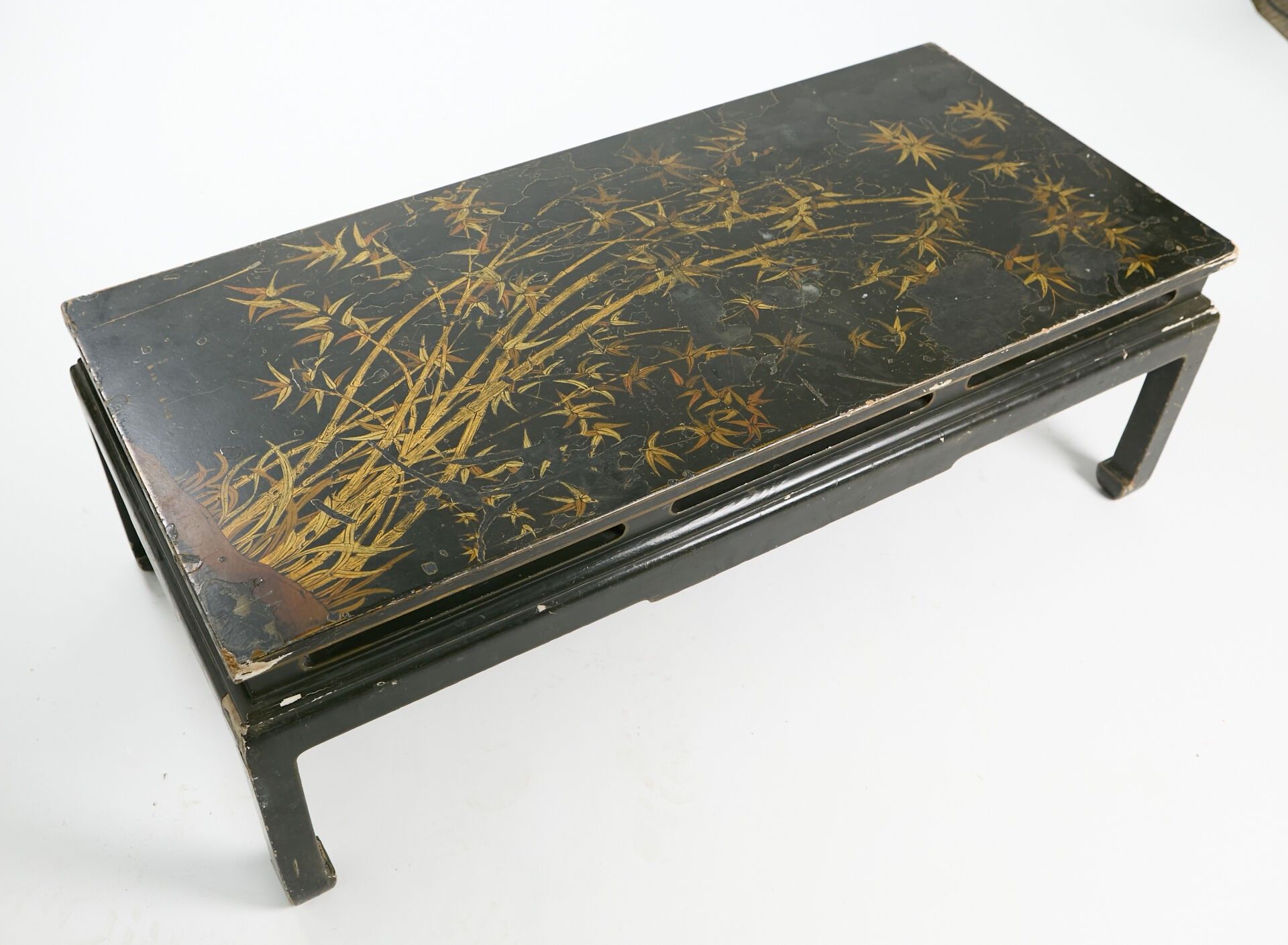 Black lacquer coffee table with beige and gold cameo bamboo decoration