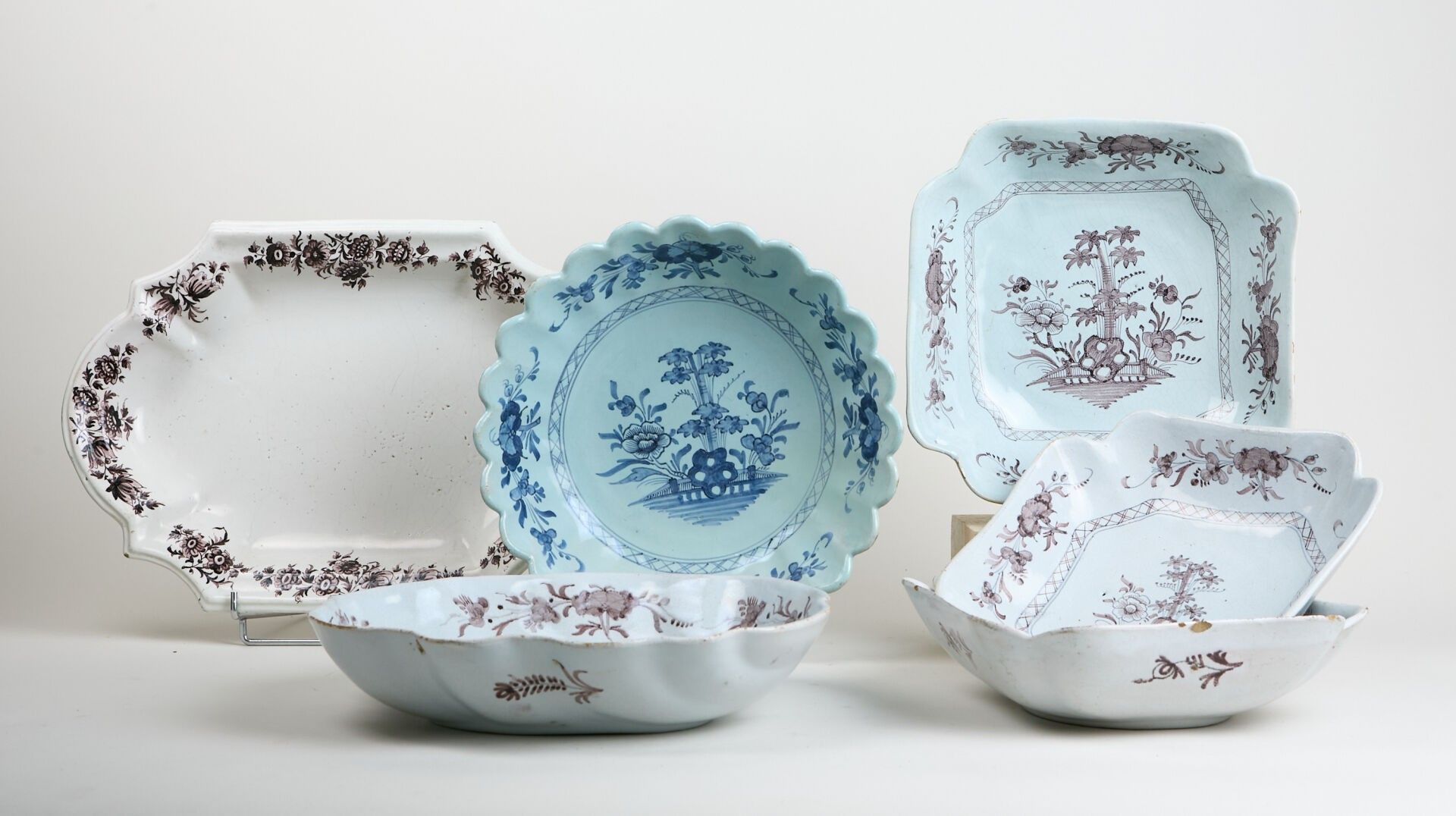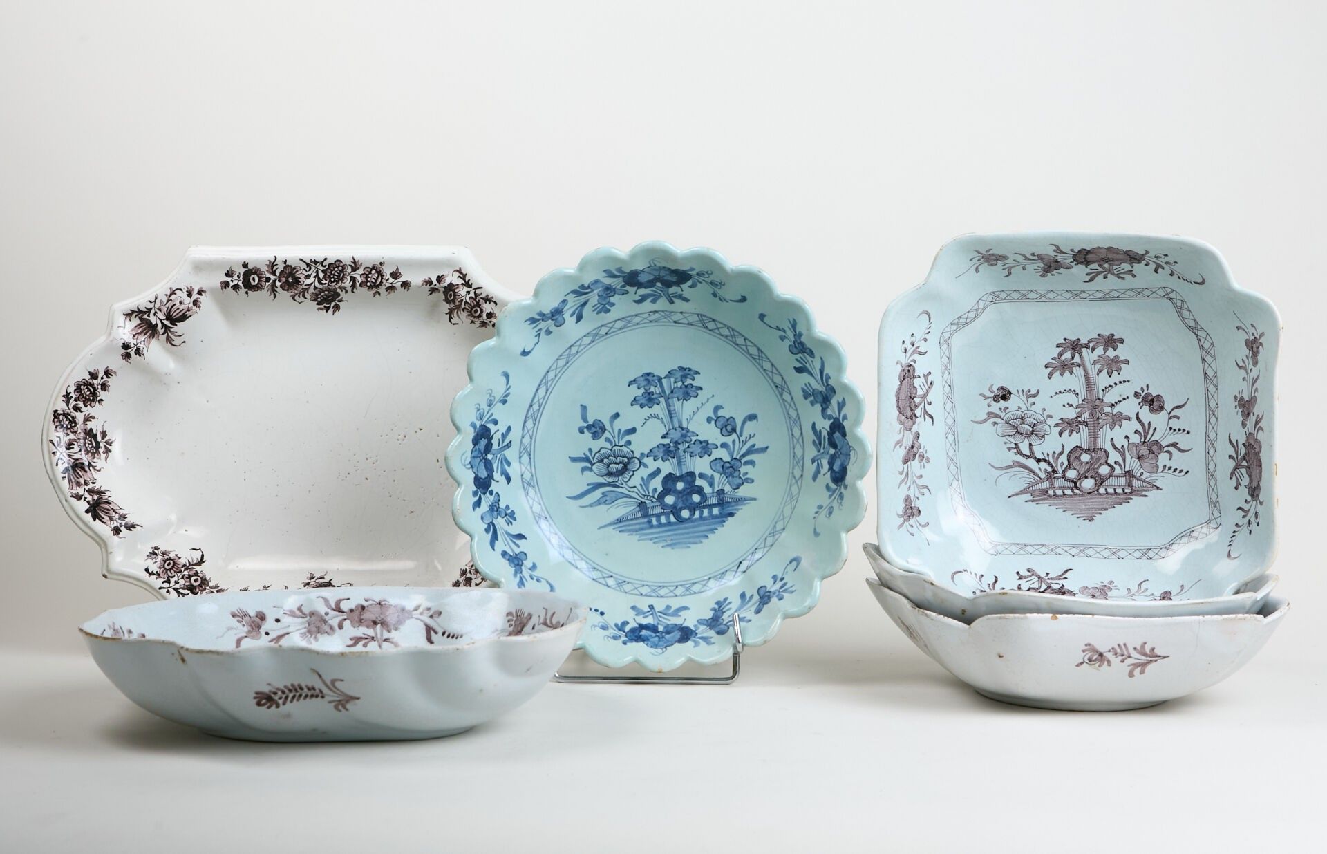 SAINT-AMAND-LES-EAUX Set of earthenware pieces in manganese …