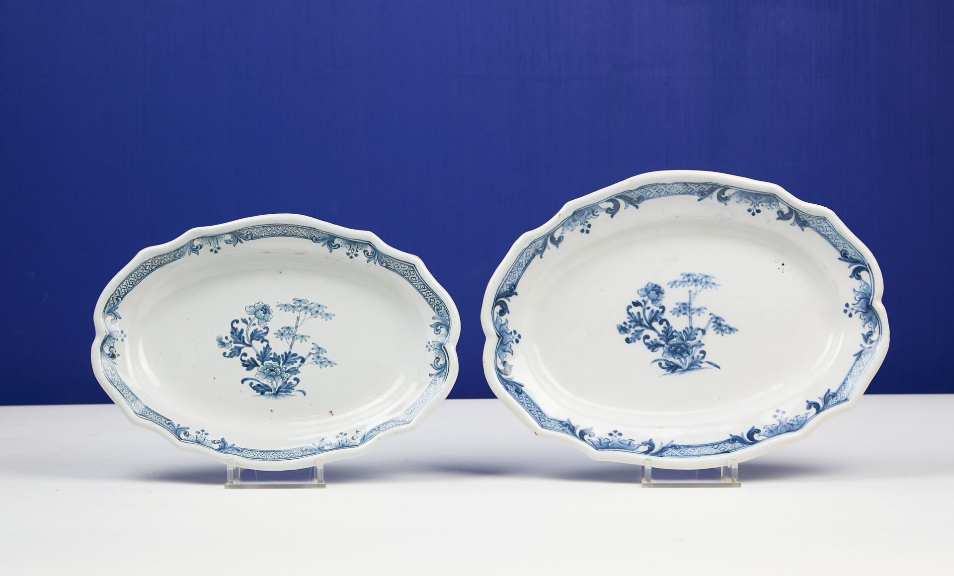 SAINT-AMAND-LES-EAUX Two oval earthenware dishes with blue c…