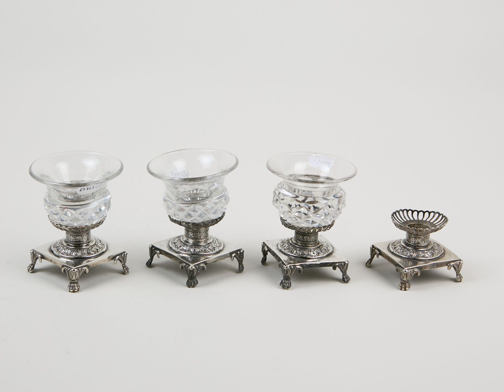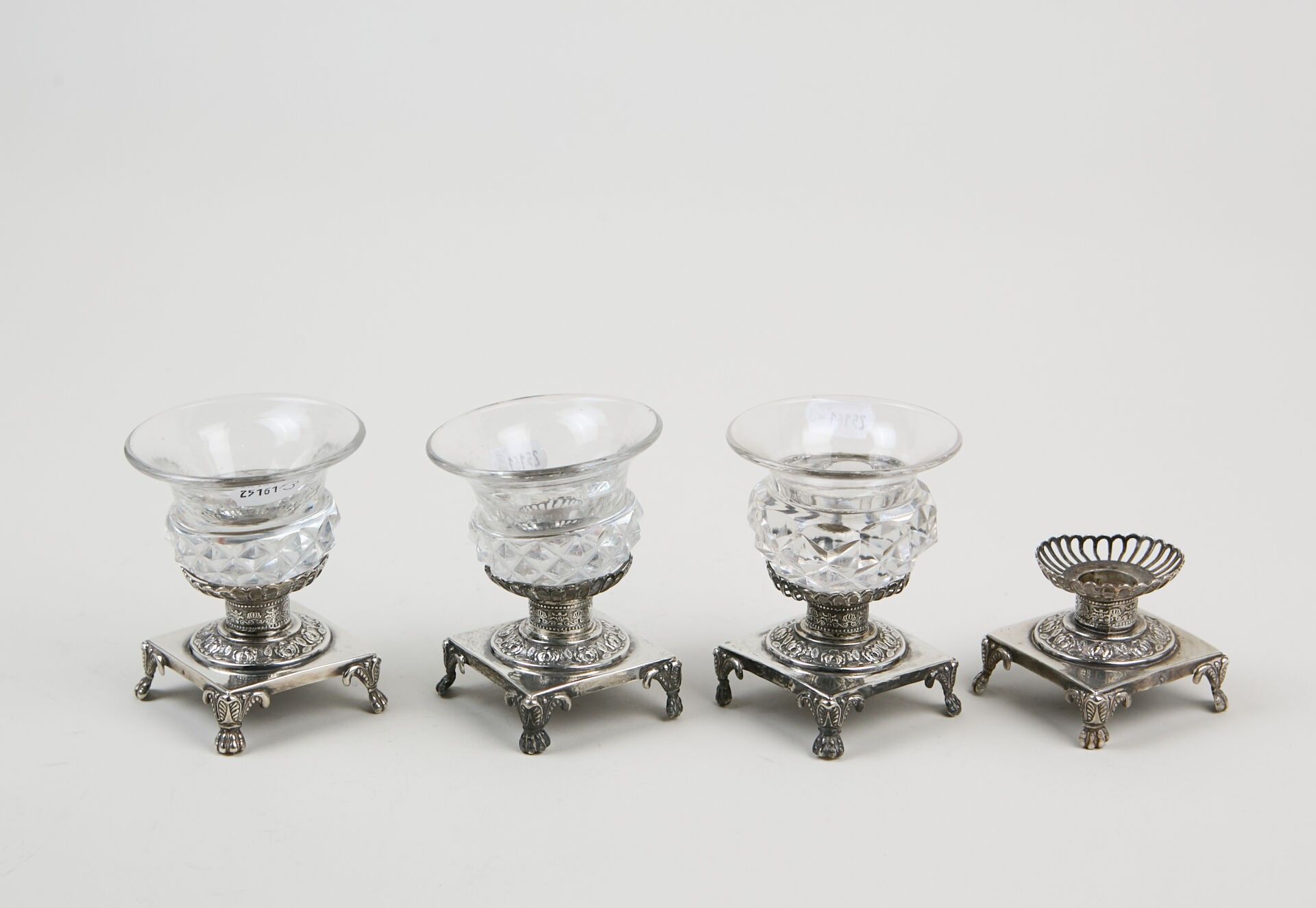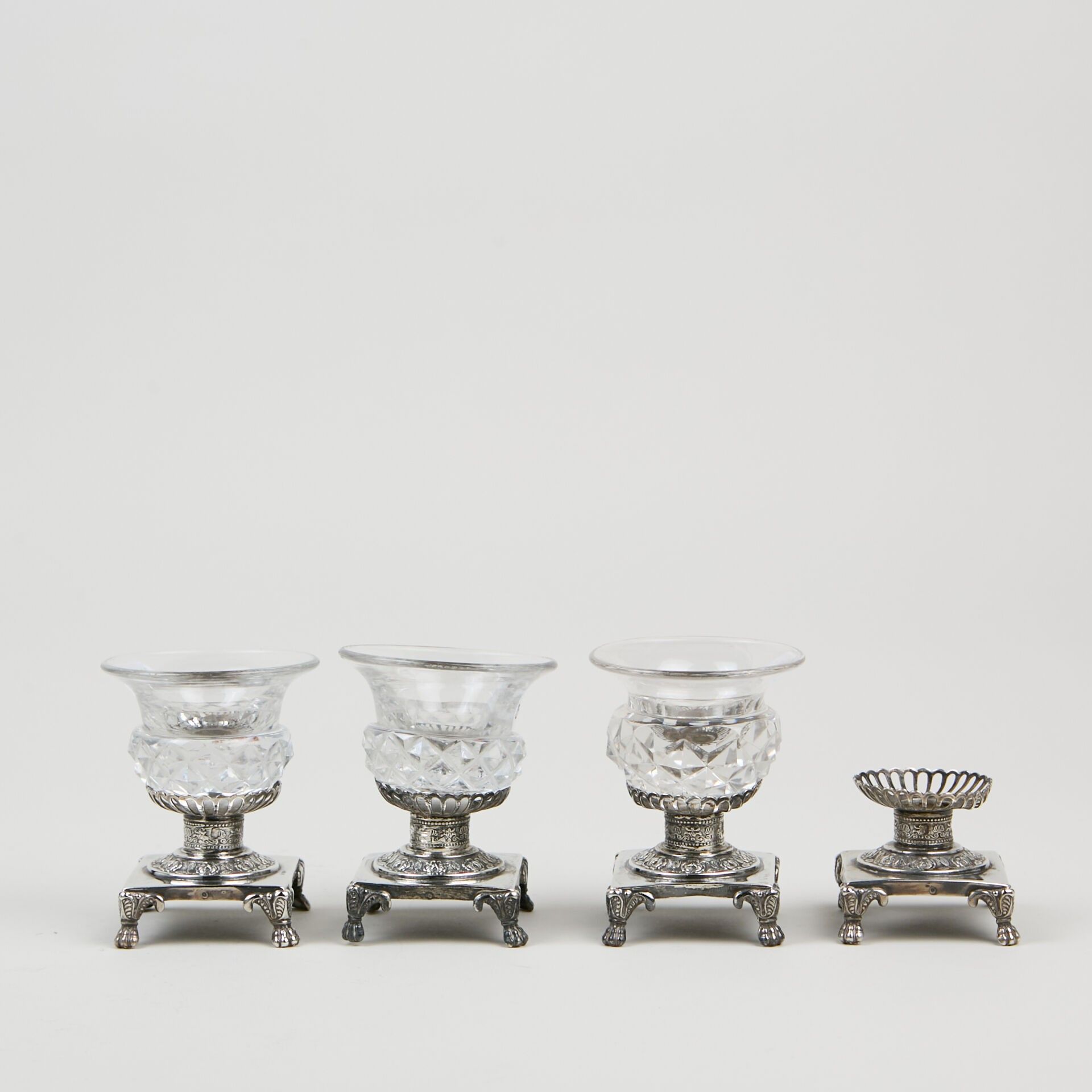 Suite of 4 silver-mounted salad bowls with rose frieze repou…