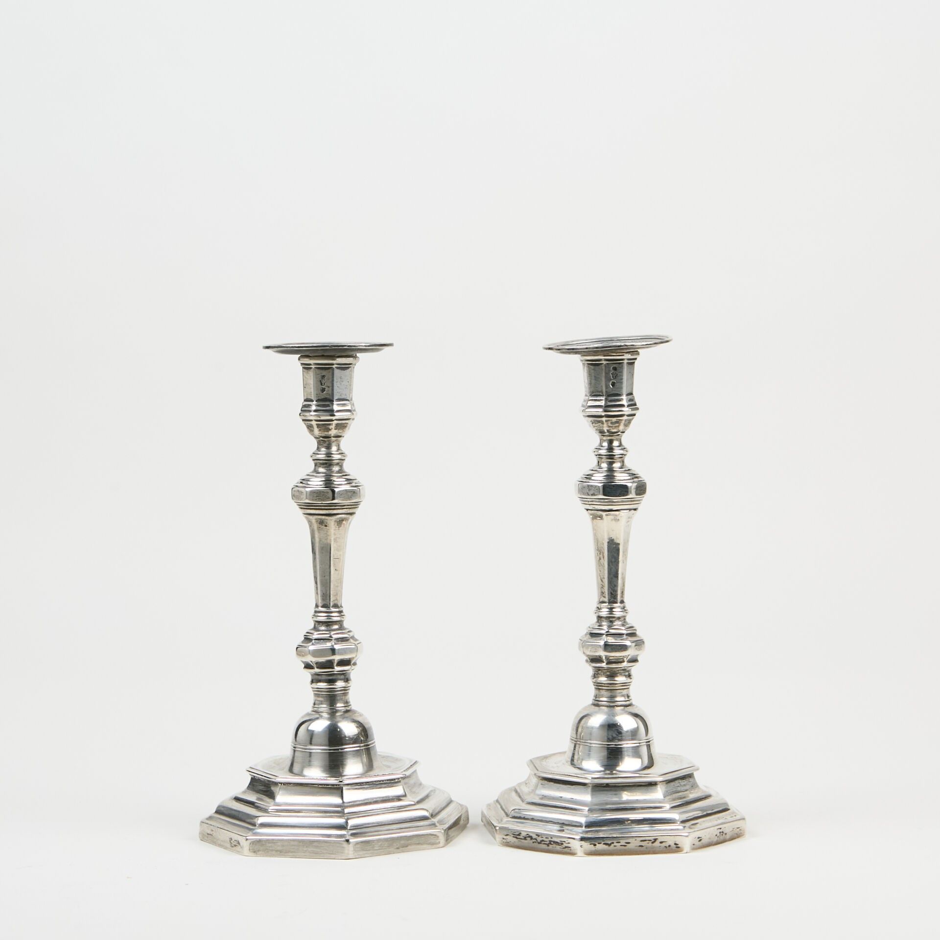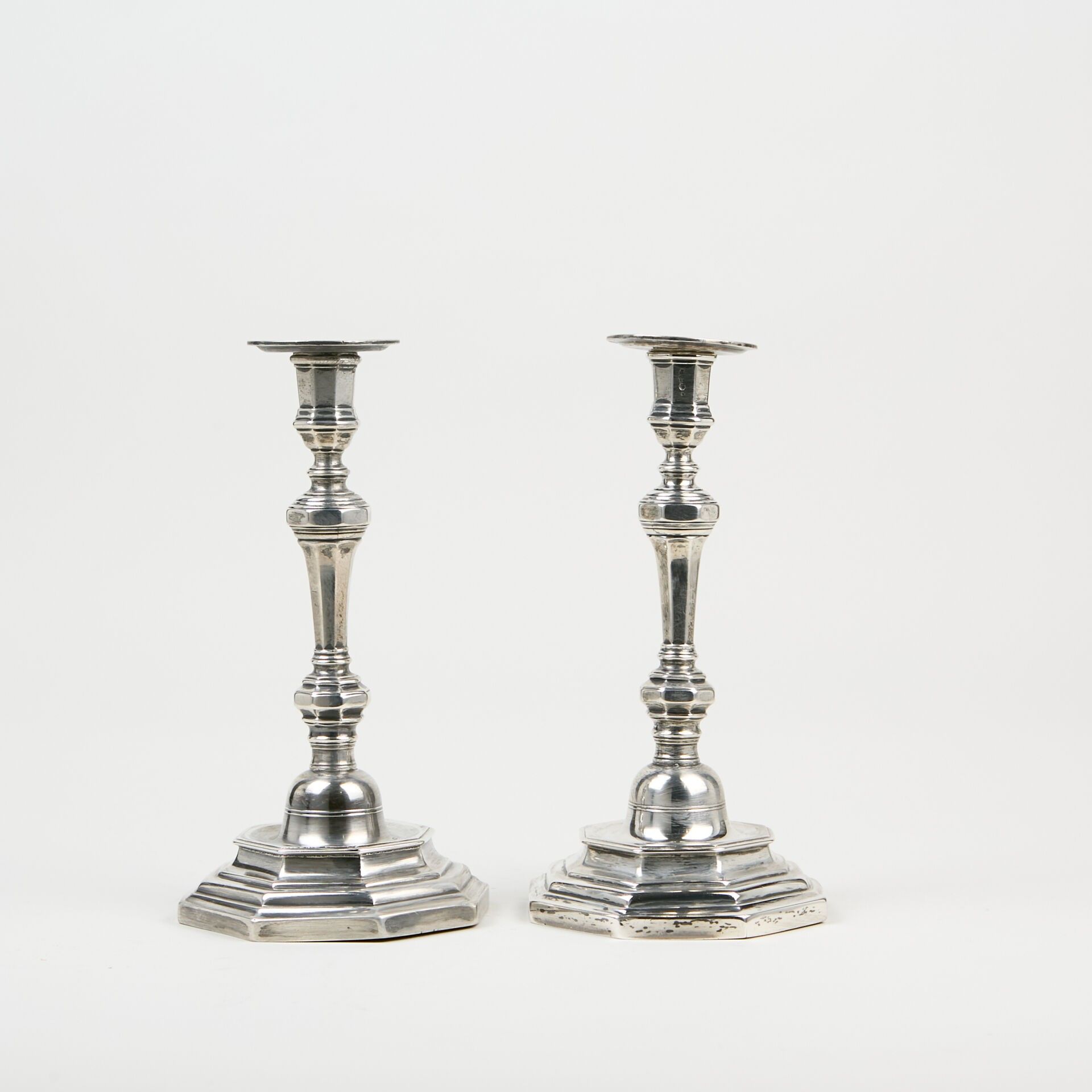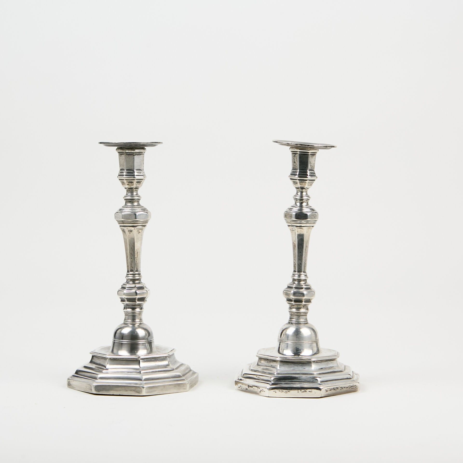 Pair of hexagonal silver torches.