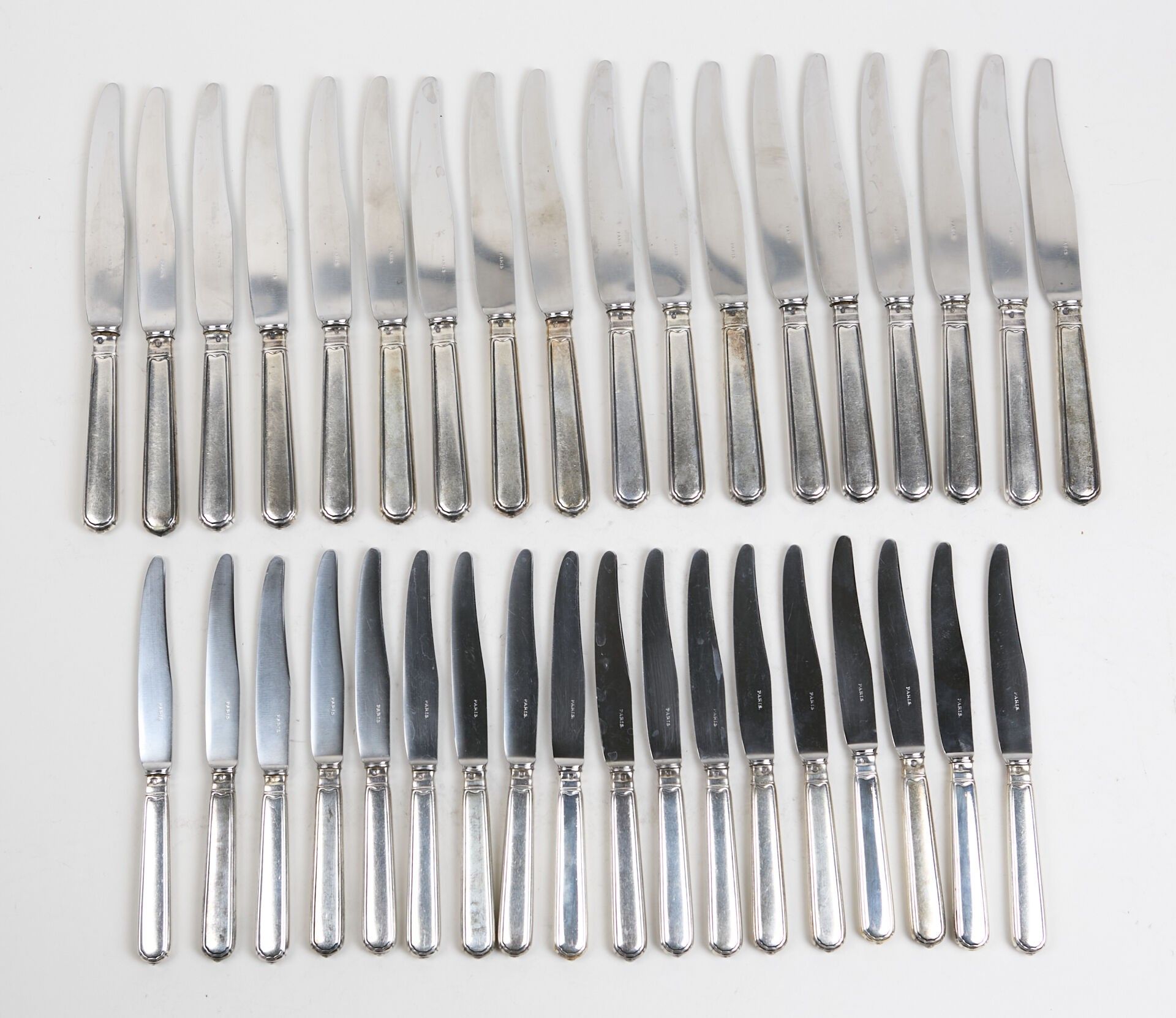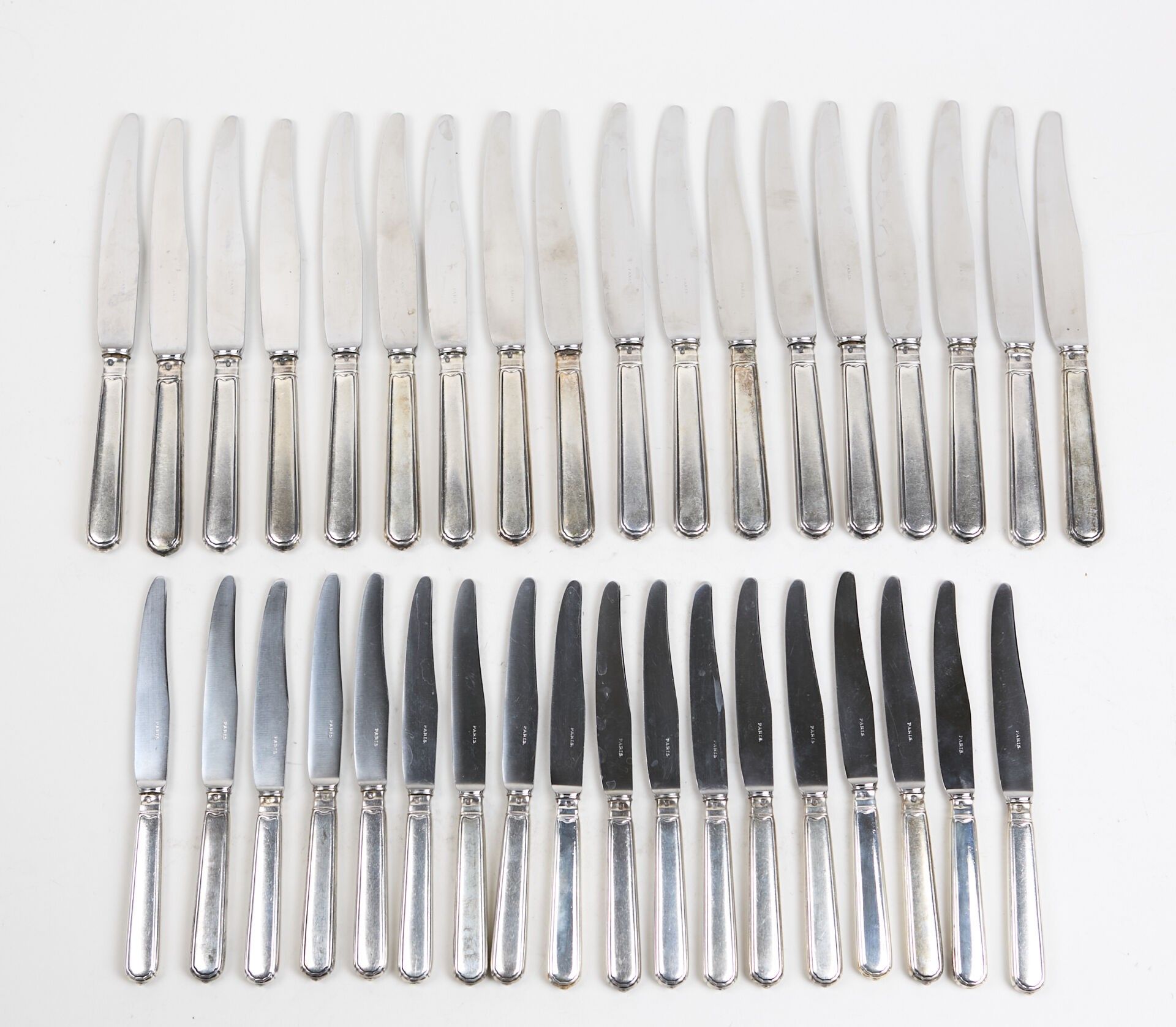 18 large knives and 18 filled silver dessert knives (gross weight: 2300 gr).