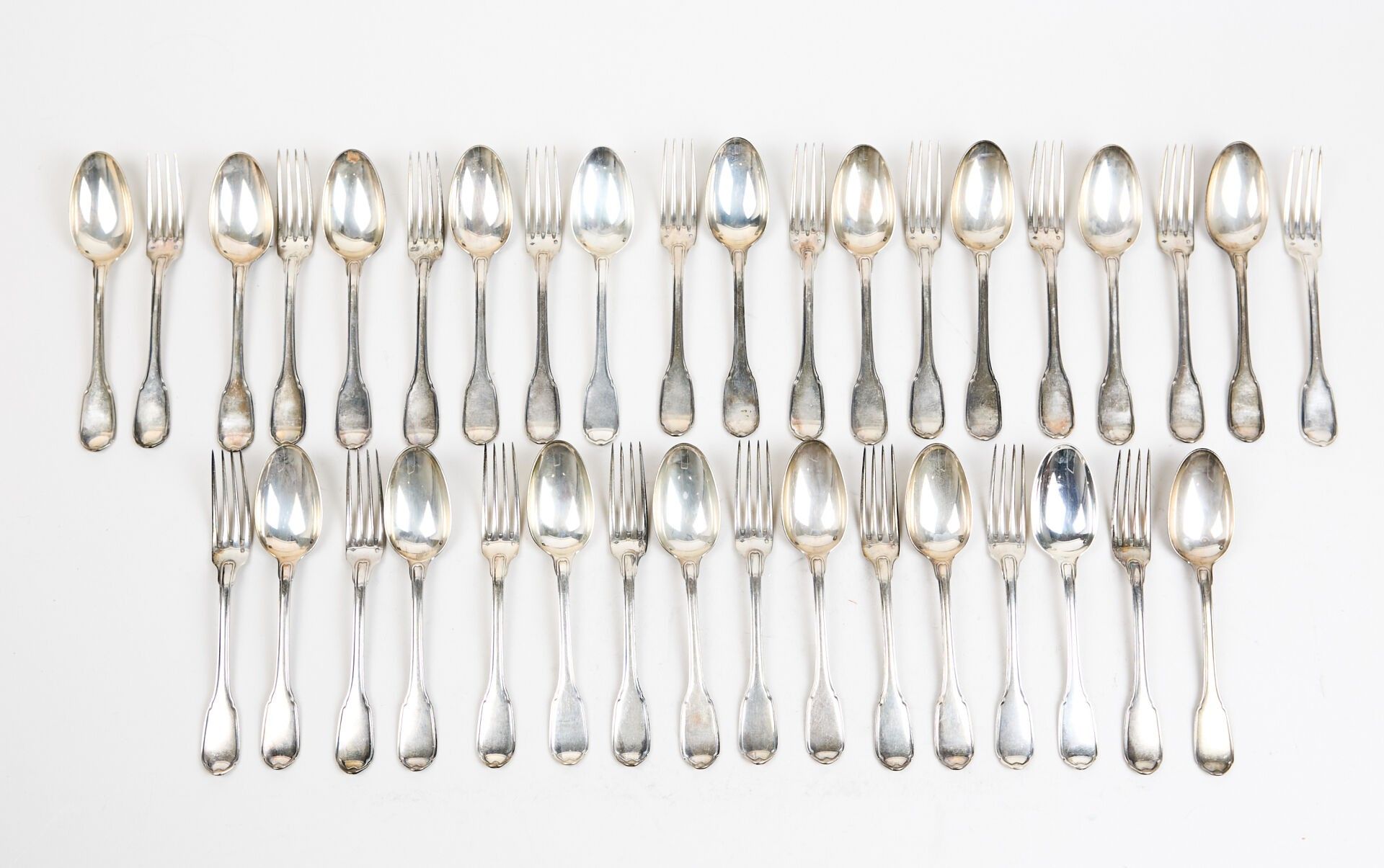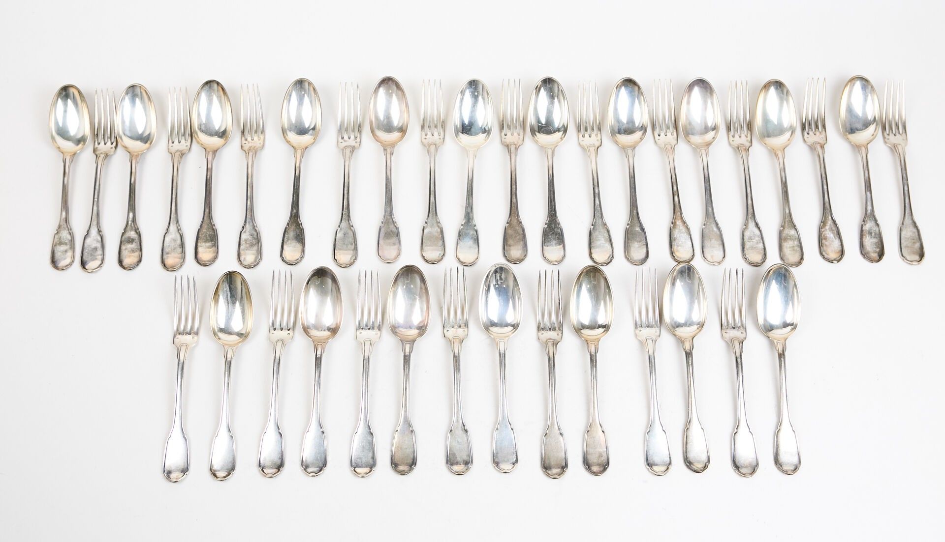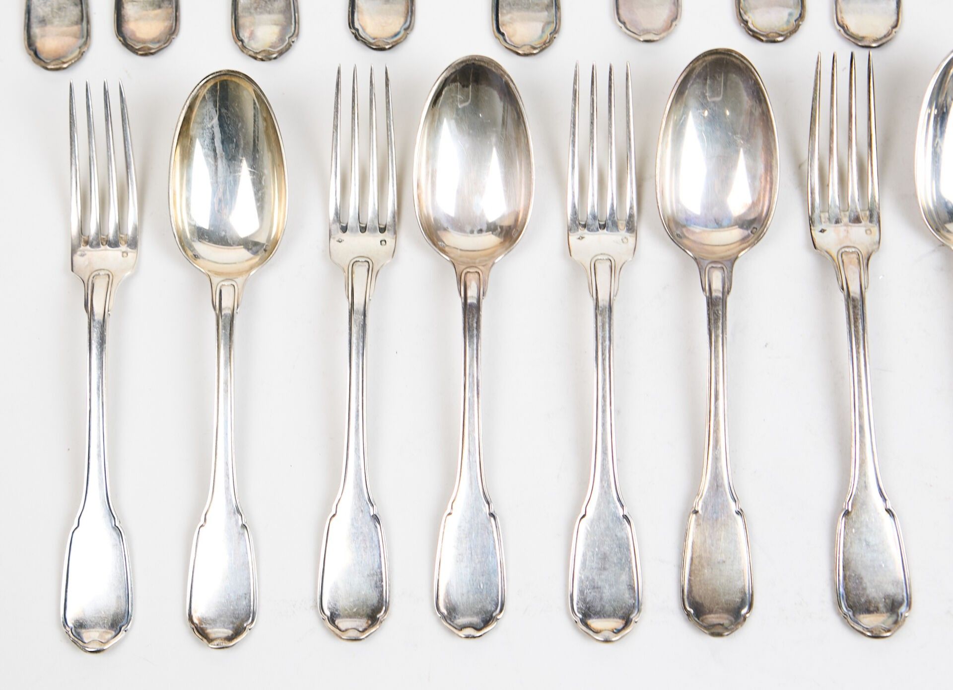 Silver cutlery set comprising :