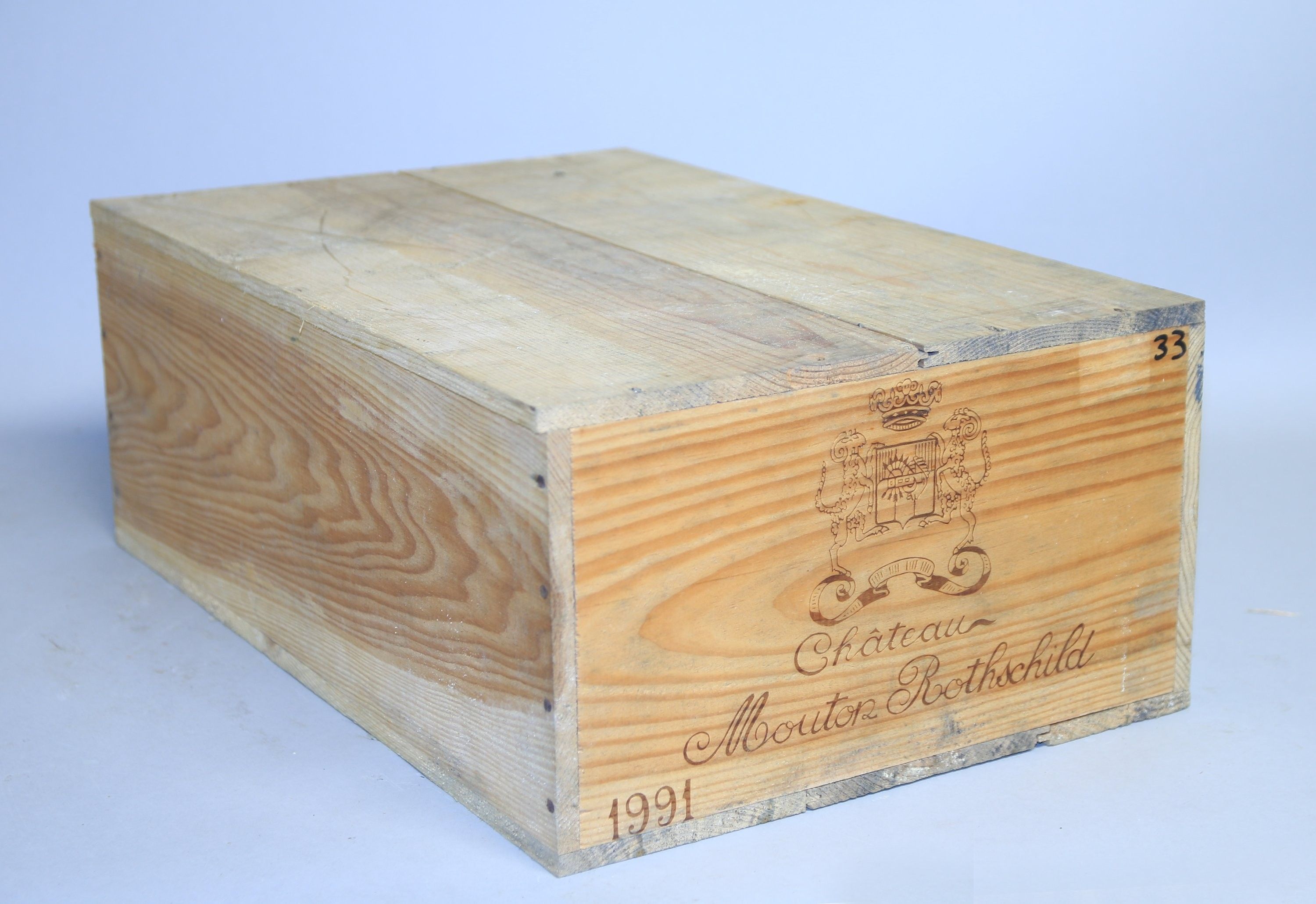 Pauillac, Château Mouton Rothschild, 1er Grand Cru classé, 1991, 12 bottles. Original wooden case (numbered in felt-tip pen).