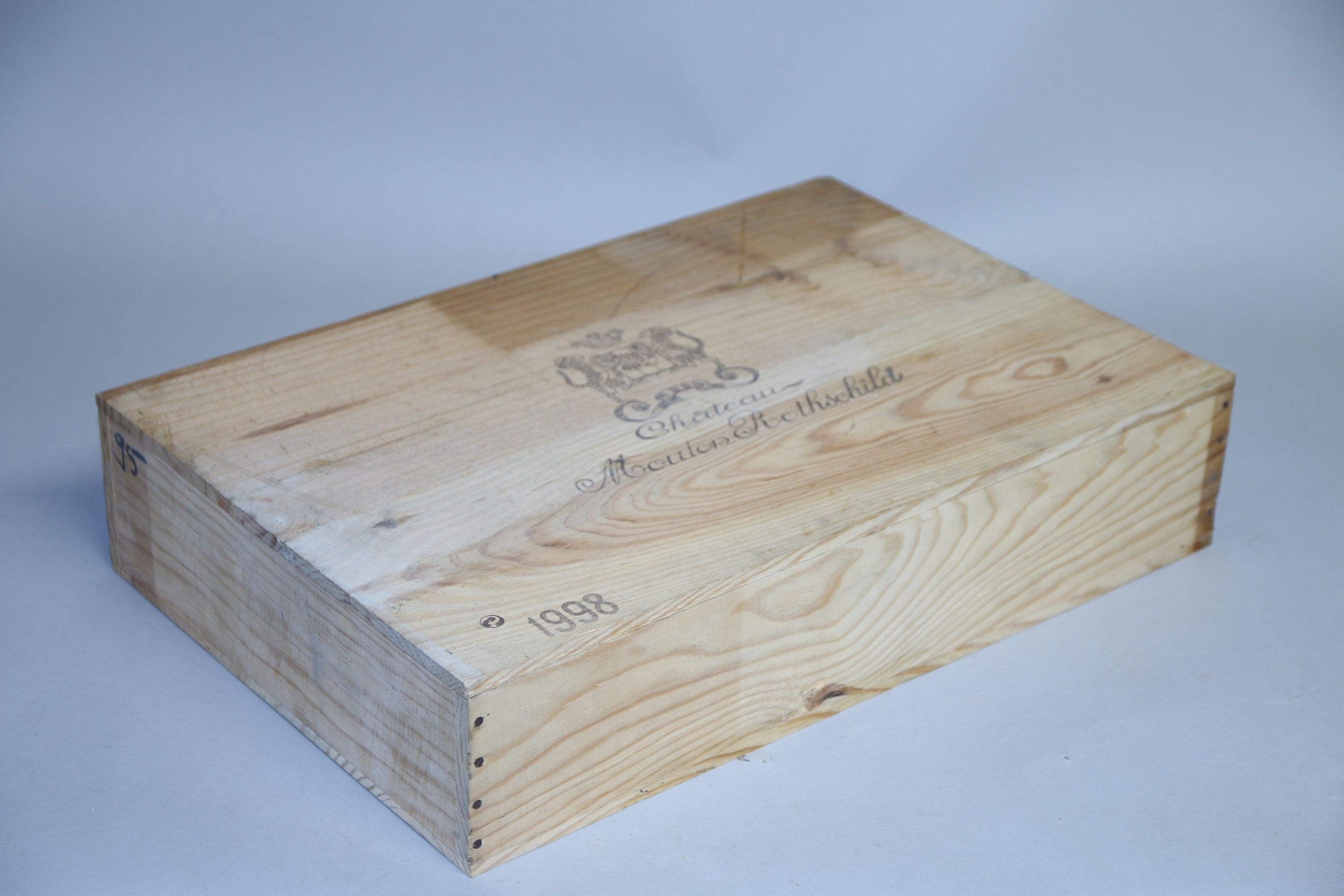 Pauillac, Château Mouton Rothschild, 1er Grand Cru classé, 1998, 6 bottles. Original wooden case (numbered in felt-tip pen).