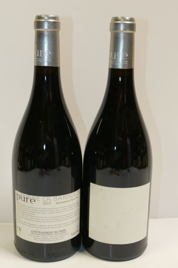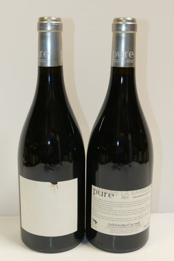 2 Btles Châteauneuf du Pape Pure 2015 Domaine La Barroche labels very slightly dirty, one slightly damaged Expert: Emilie Gorreteau