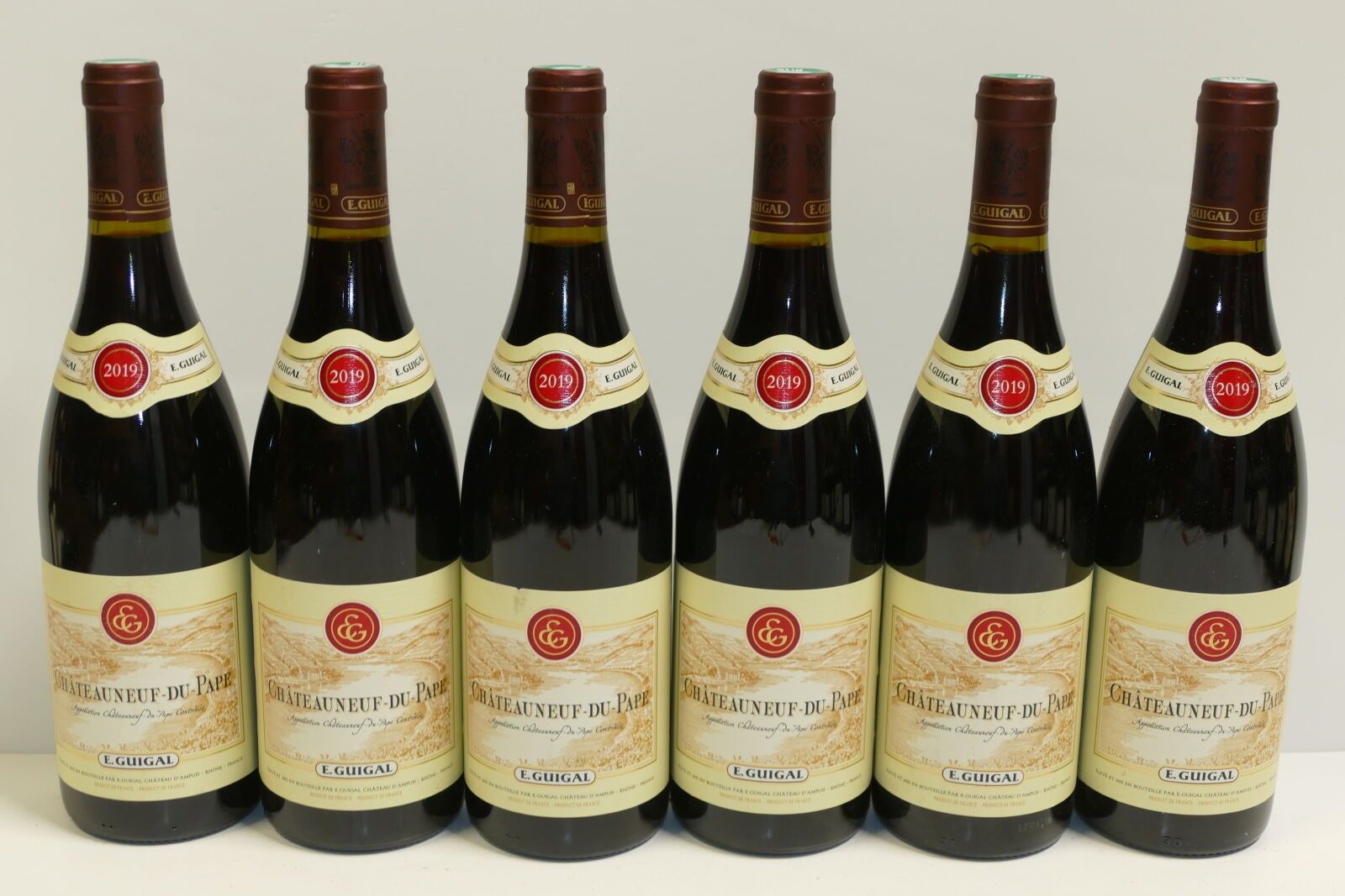 6 Btles Châteauneuf du Pape rouge 2019 Domaine Etienne Guigal including a very slightly dirty and slightly damaged label Expert : Emilie Gorreteau
