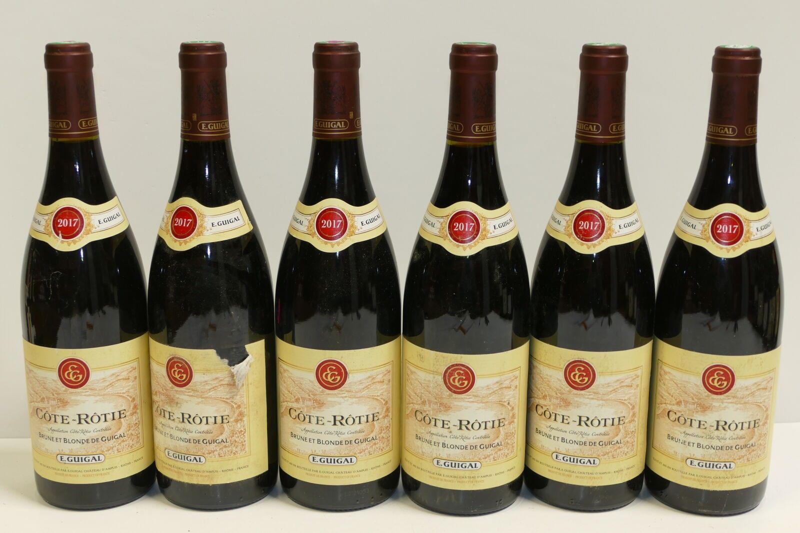 6 Btles Côte Rôtie Brune et Blonde 2017 Domaine Etienne Guigal including traces of red marker on the top of two capsules slightly dirty labels, one damaged Expert: Emilie Gorreteau