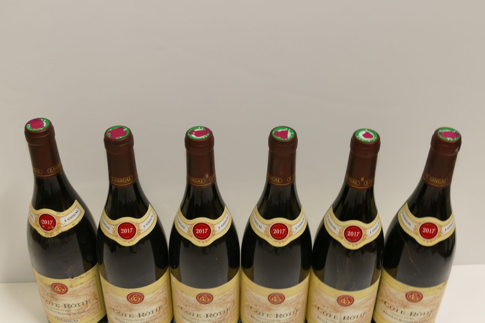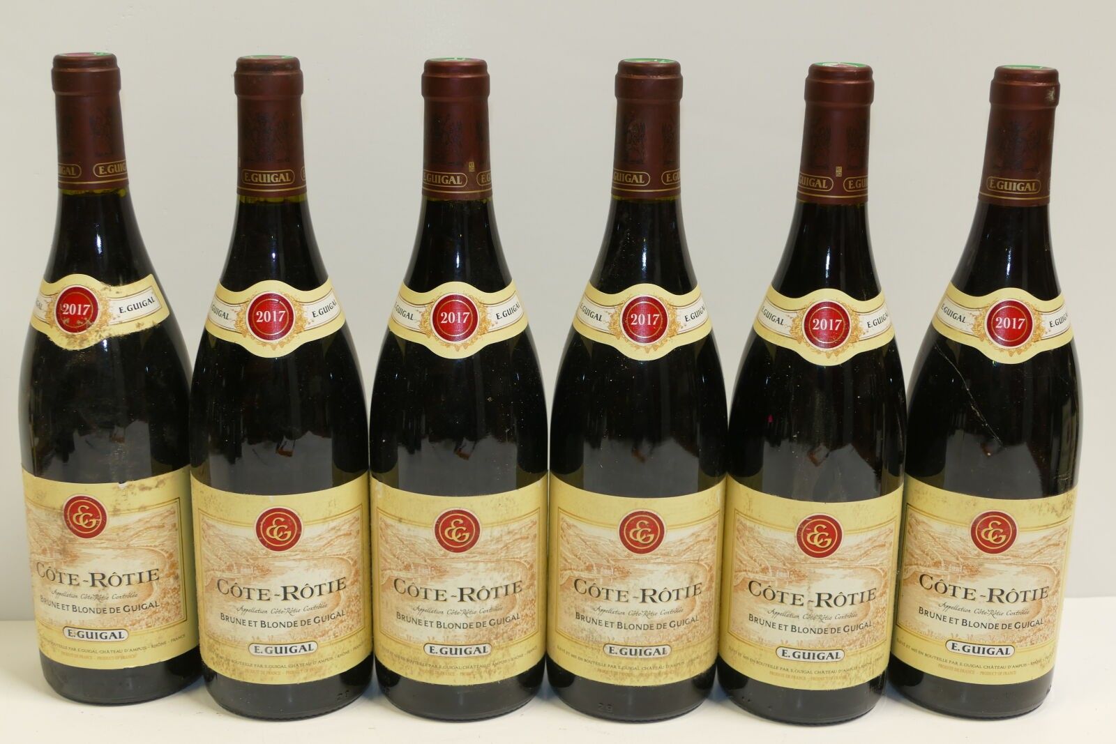 6 Btles Côte Rôtie Brune et Blonde 2017 Domaine Etienne Guigal traces of red marker on the top of the capsules slightly dirty and slightly damaged labels Expert: Emilie Gorreteau