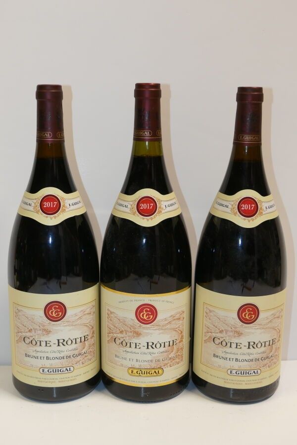 3 Magnums Côte Rôtie Brune et Blonde 2017 Domaine Etienne Guigal traces of red marker on the top of the capsules Expert: Emilie Gorreteau
