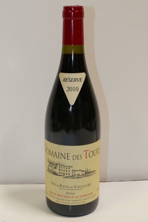 1 Btle Vin de Pays de Vaucluse Merlot 2010 Domaine des Tours label very slightly dirty Expert : Emilie Gorreteau