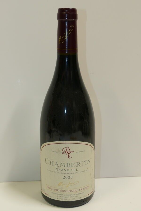 1 Btle Chambertin Grand Cru 2005 Domaine Rossignol Trapet against label and slightly dirty label IC 10/10 PM Expert: Emilie Gorreteau