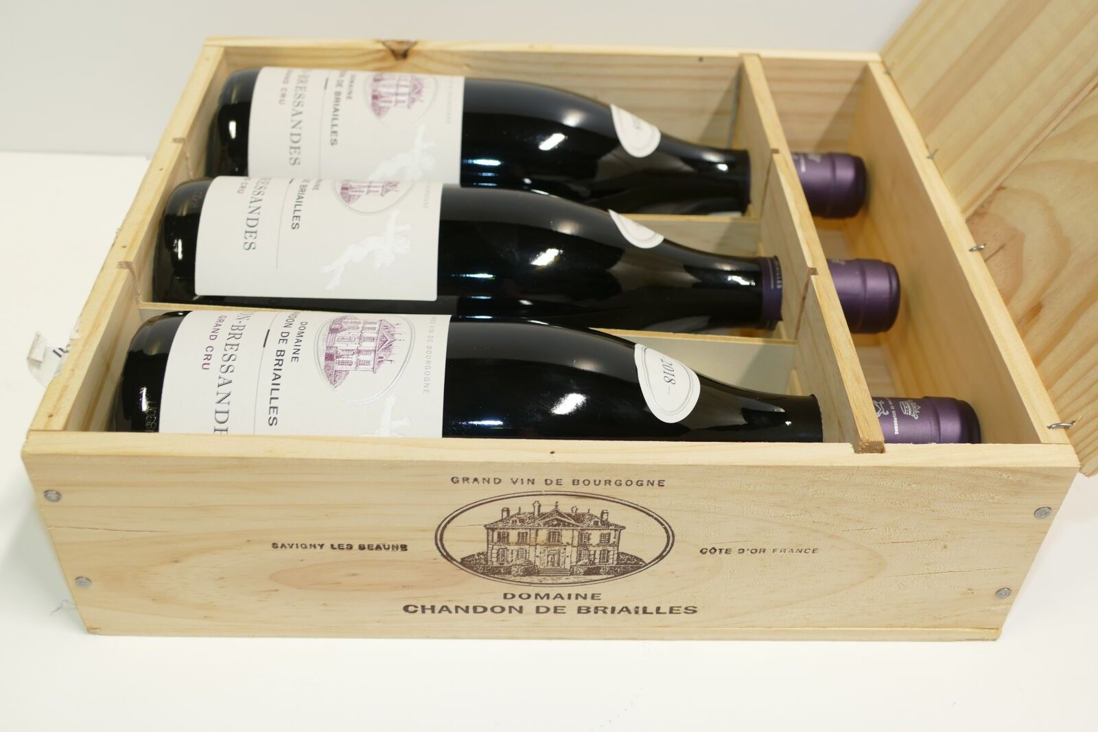 3 Btles Corton Grand Cru Les Bressandes 2018 Domaine Chandon de Briailles in original wooden case Expert: Emilie Gorreteau