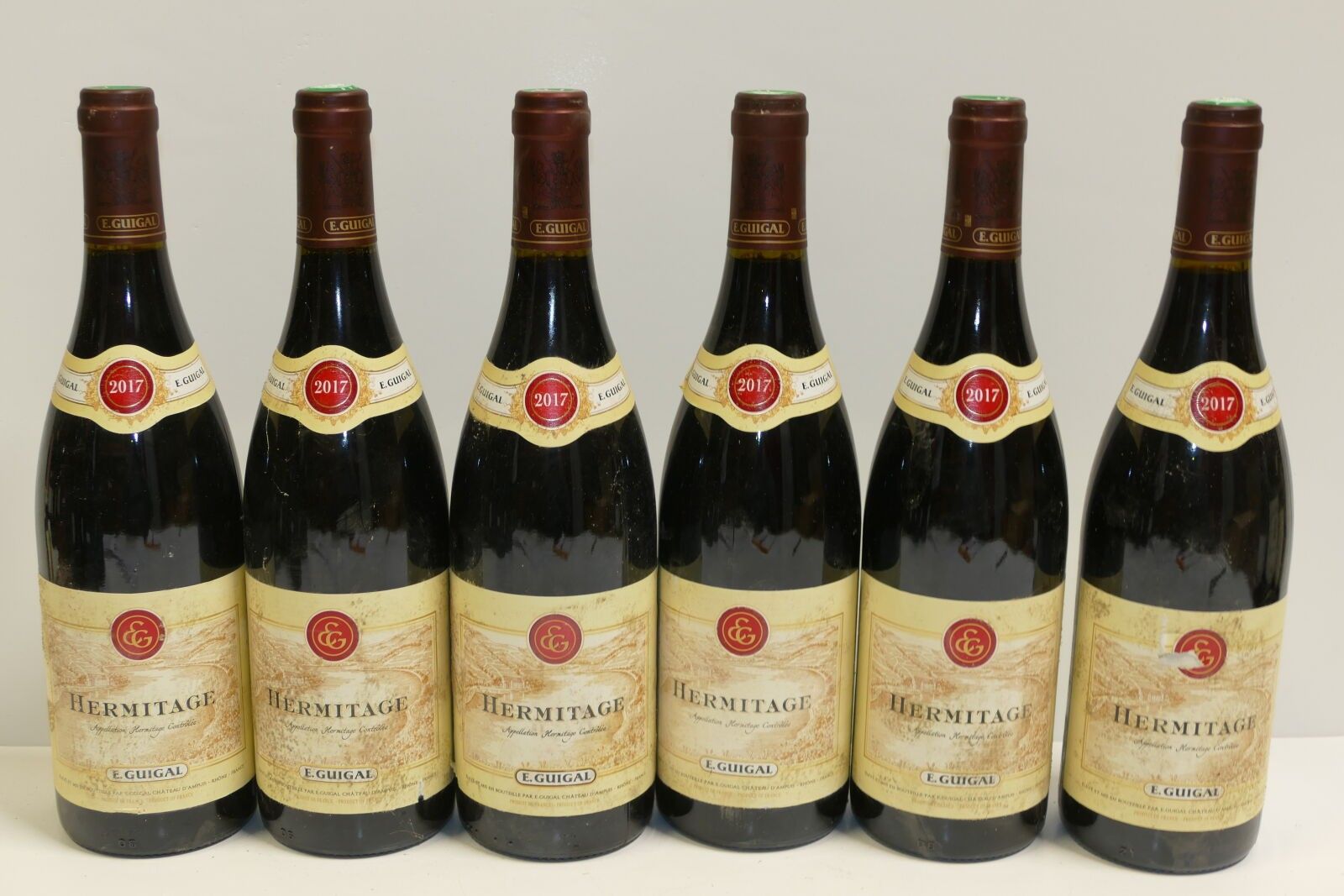 6 Btles Hermitage rouge 2017 Domaine Etienne Guigal including traces of red marker on the top of two capsules slightly dirty labels including two slightly damaged Expert: Emilie Gorreteau