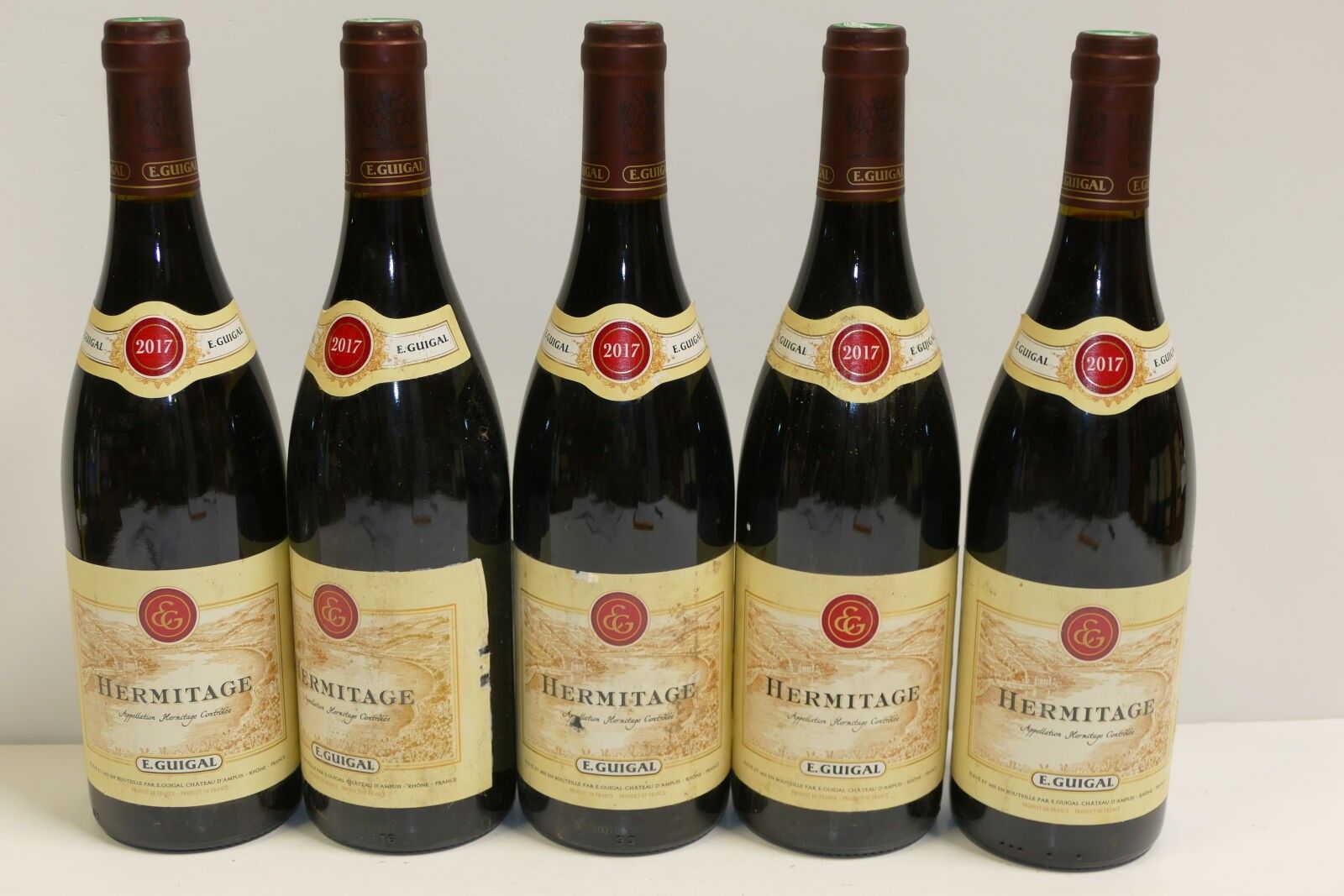 5 Btles Hermitage rouge 2017 Domaine Etienne Guigal Dirty labels, two of which are slightly damaged Expert: Emilie Gorreteau