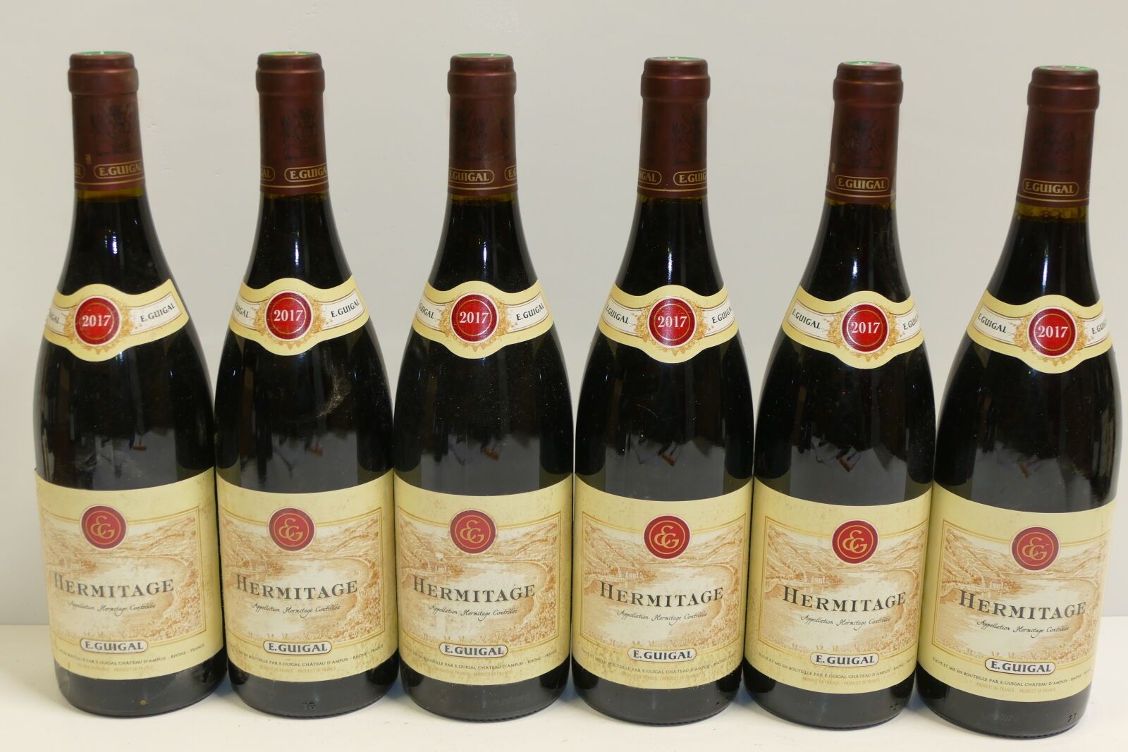 6 Btles Hermitage rouge 2017 Domaine Etienne Guigal traces of red marker on the top of the capsules slightly dirty labels Expert: Emilie Gorreteau